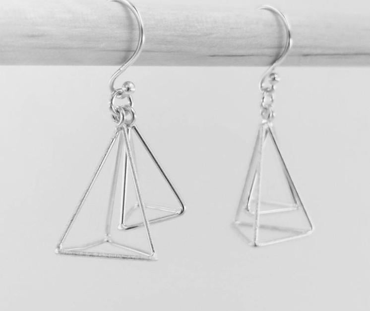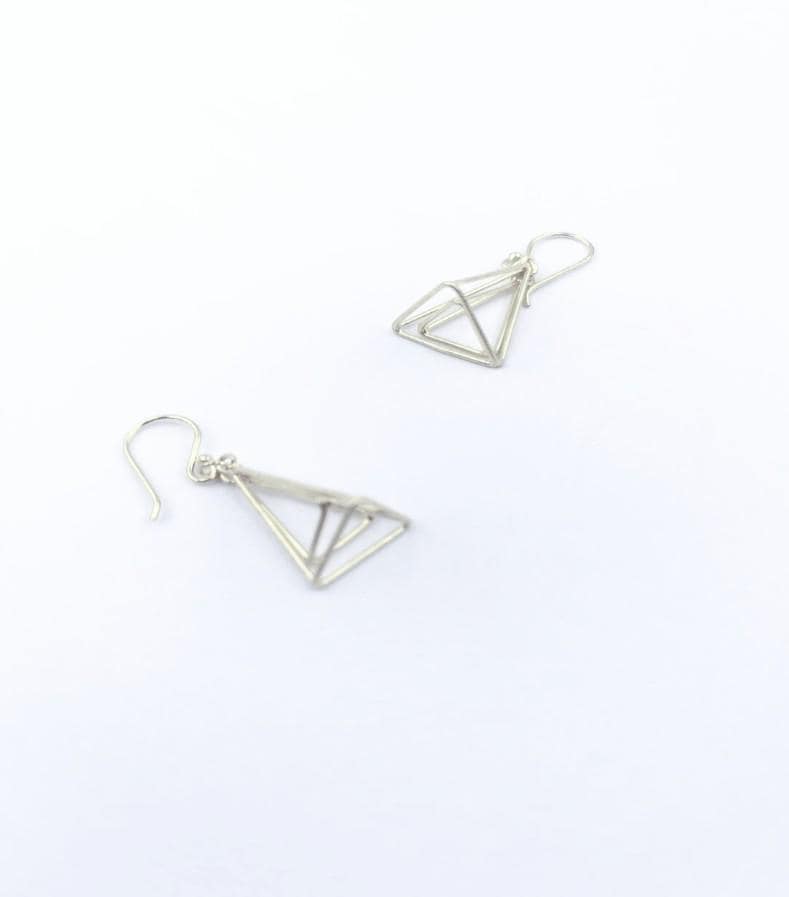These beautiful motion earrings with matte finishing consist of two irregular pyramids which move one within the other while wearing the earrings. They are made of 18k gold plated 925 silver.