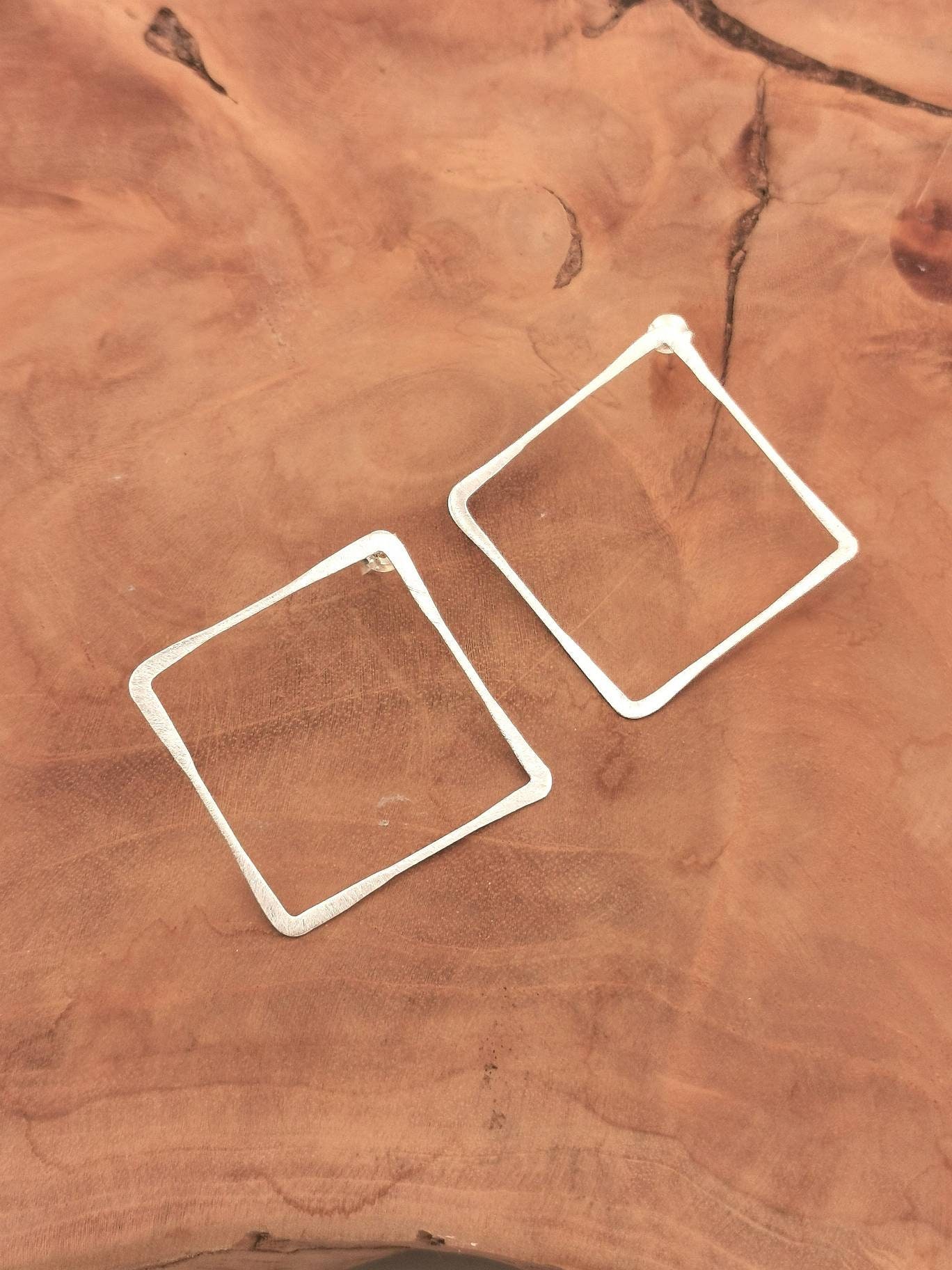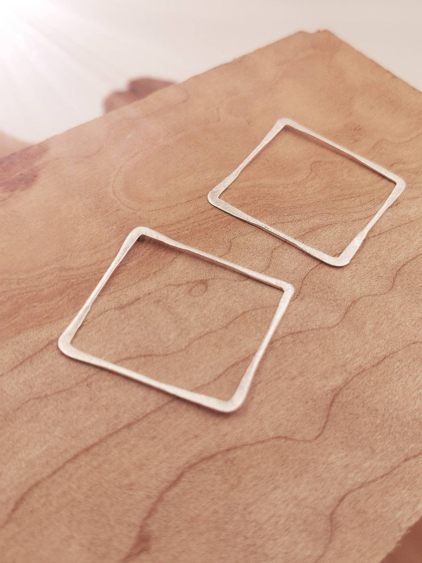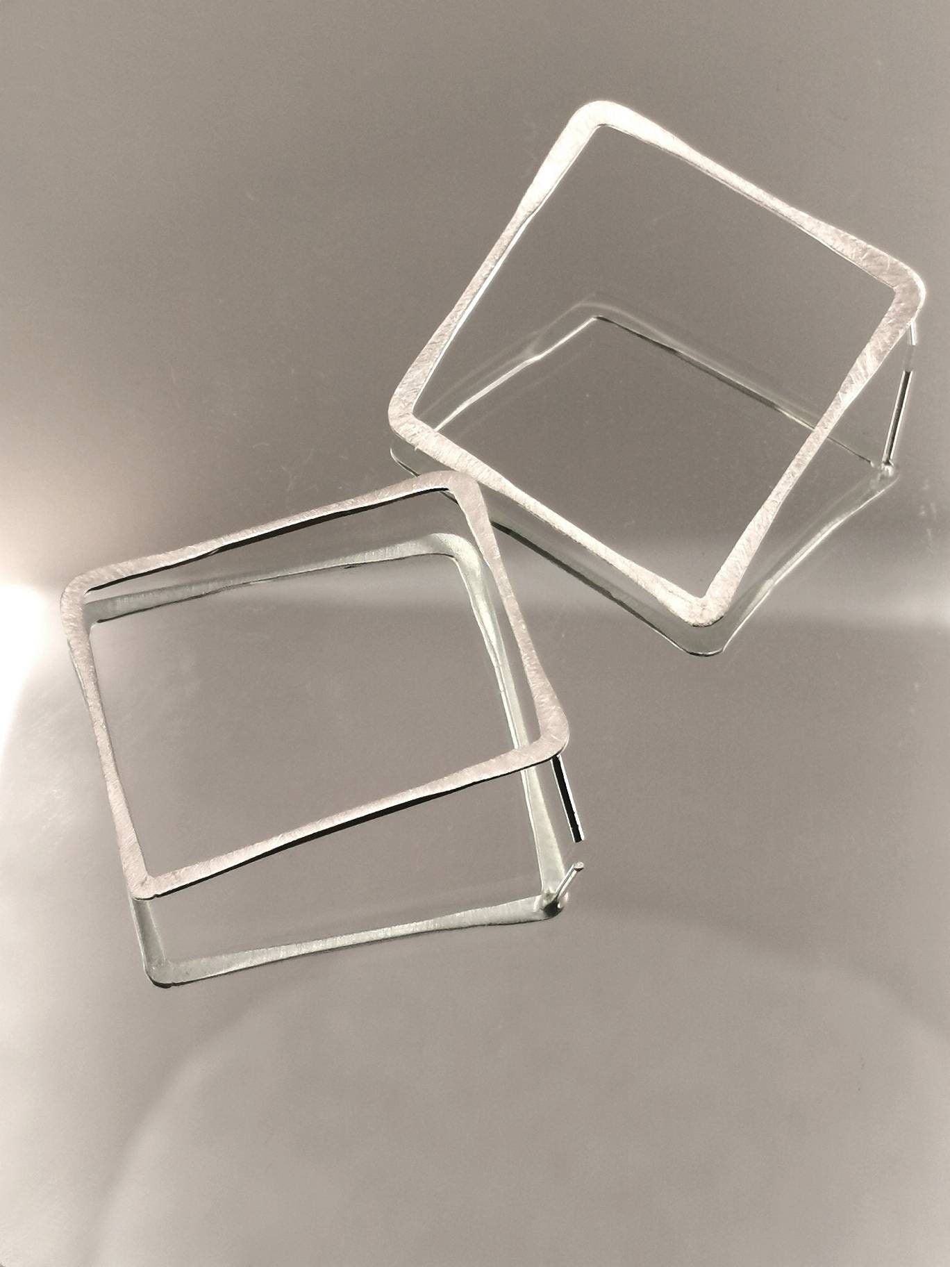 Handmade 925 silver square stud earrings with matte finishing and varying thickness.