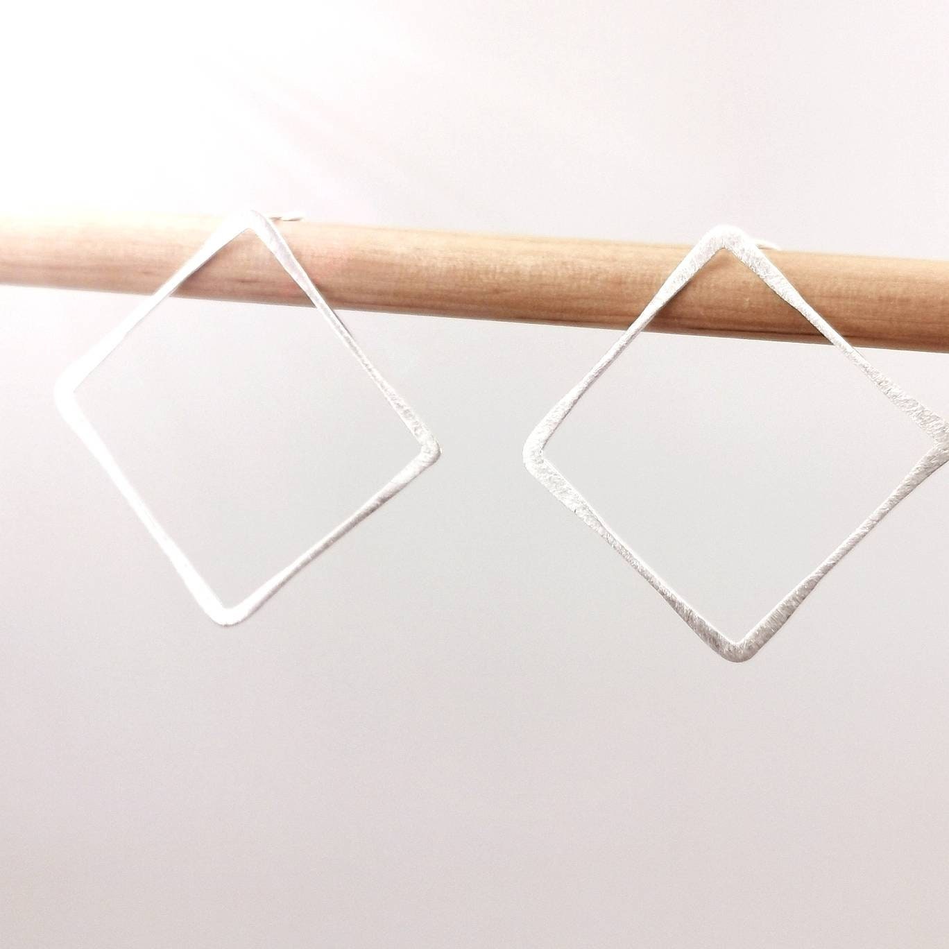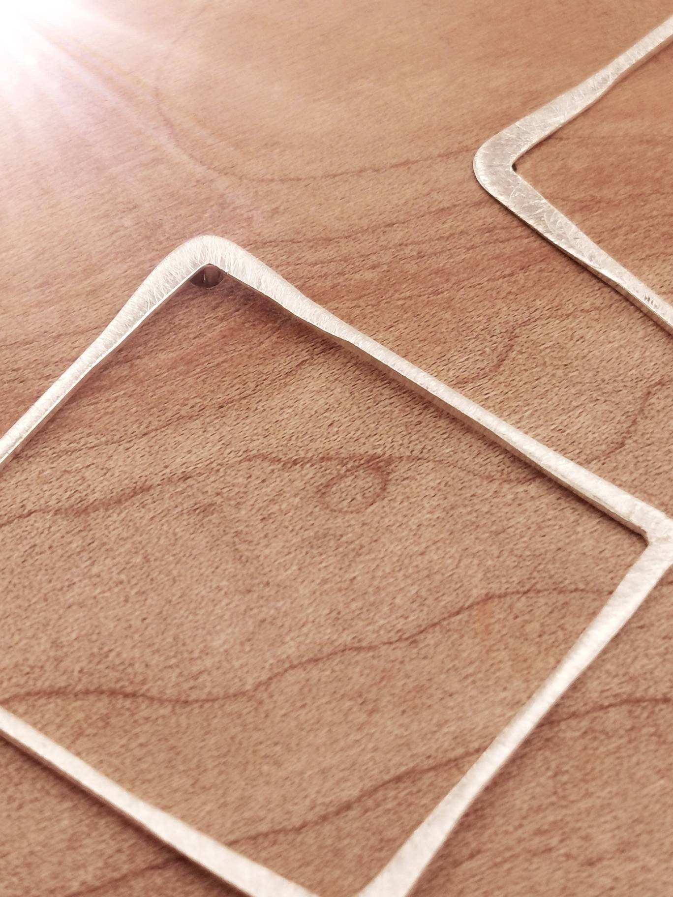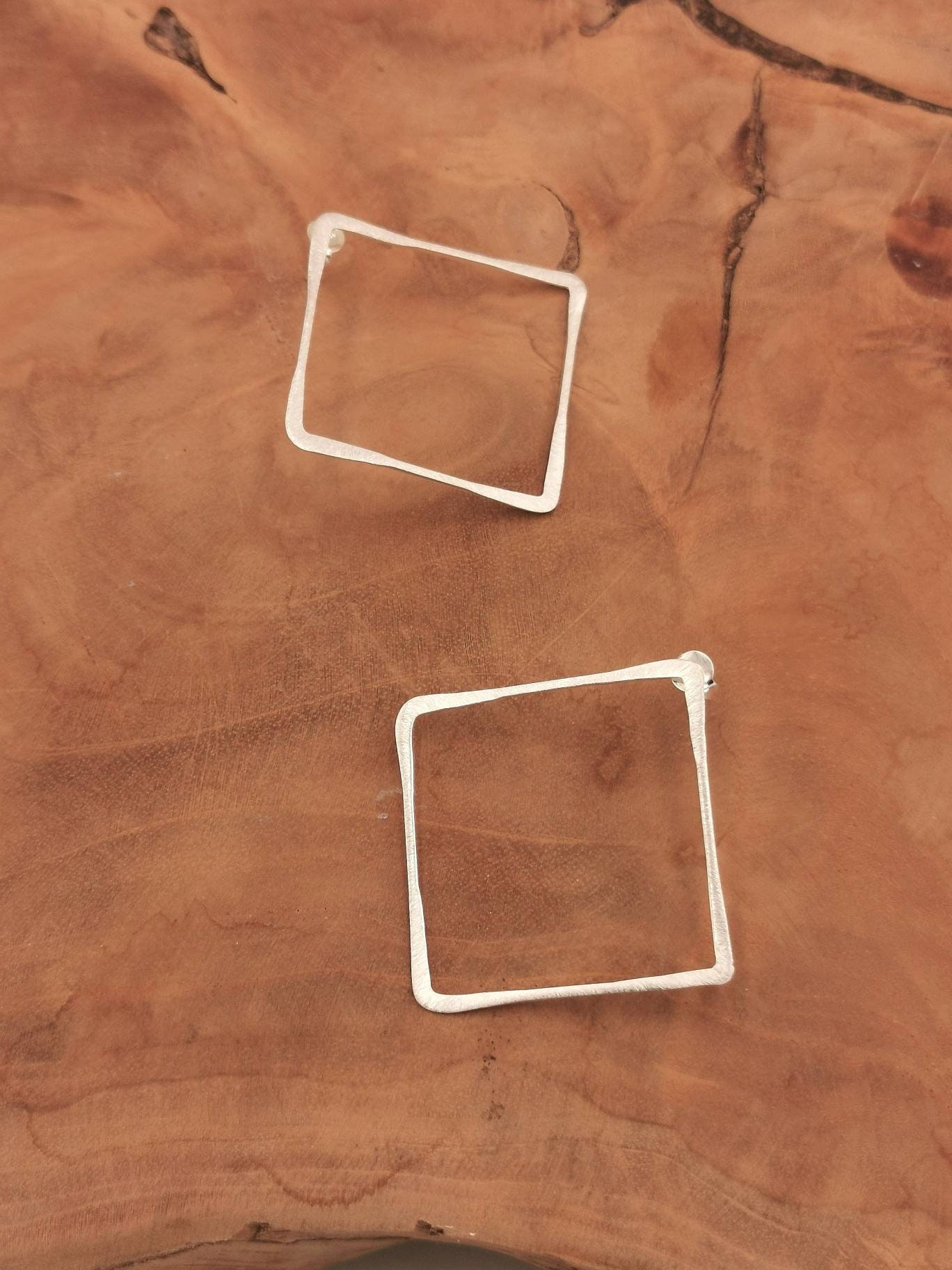 Handmade 925 silver square stud earrings with matte finishing and varying thickness.