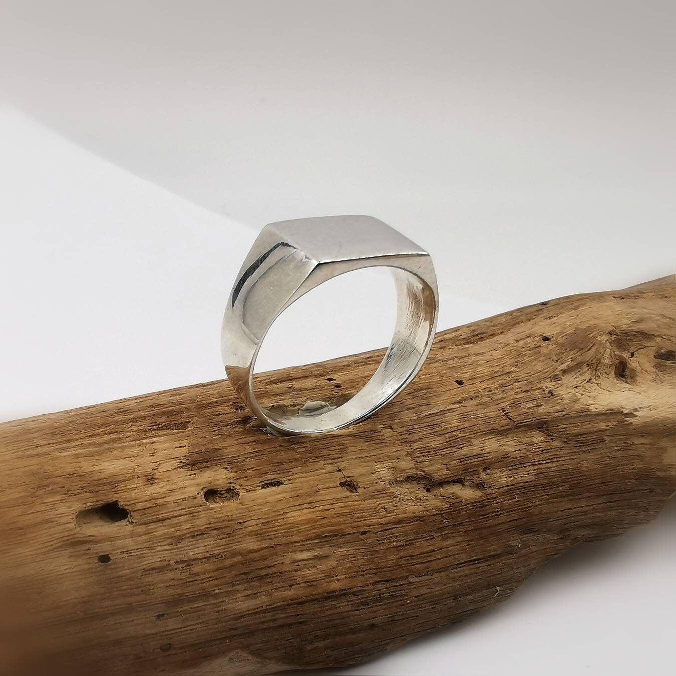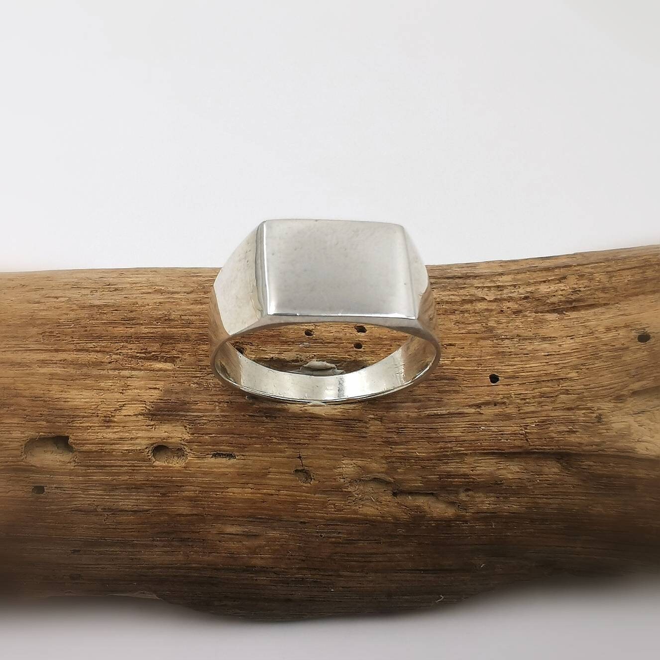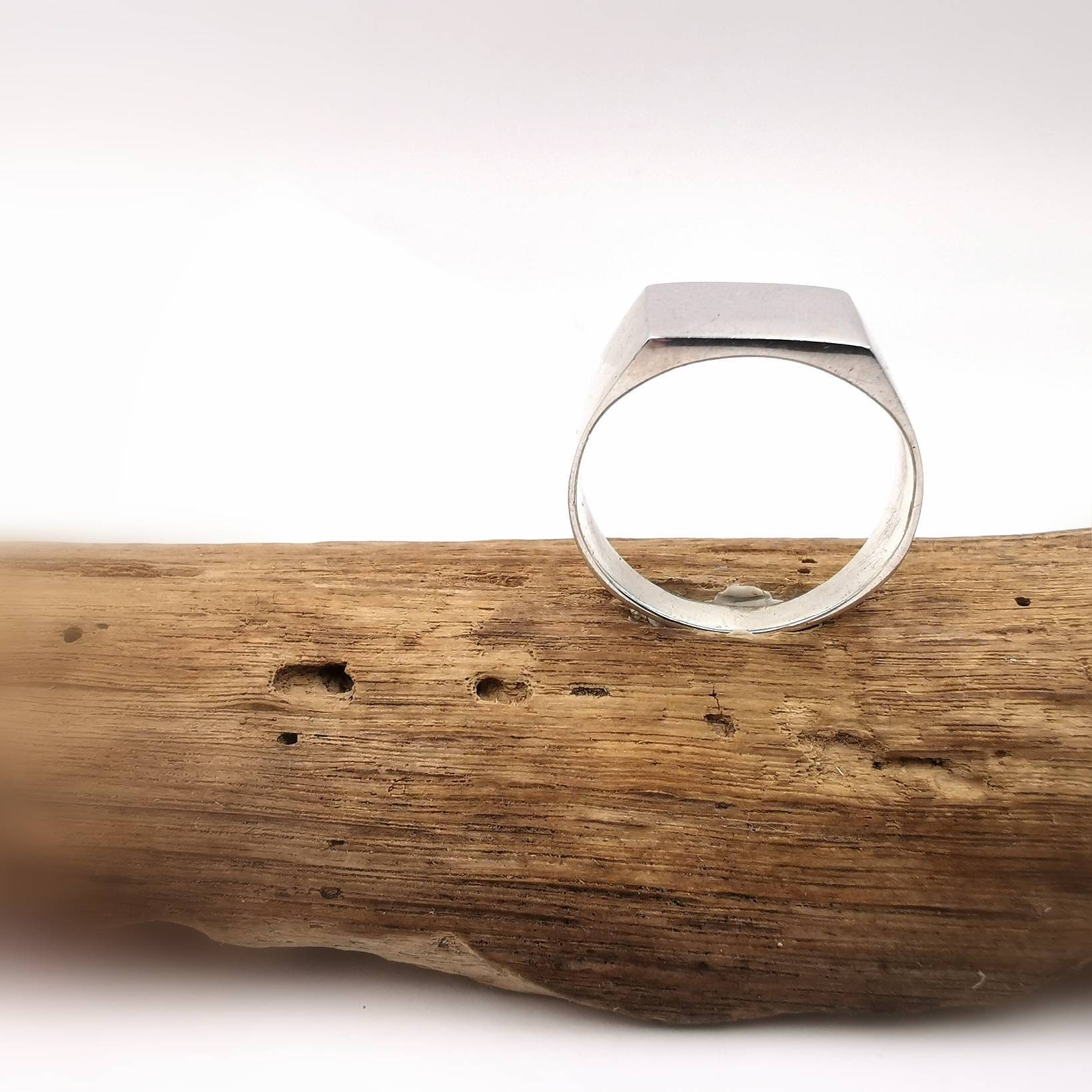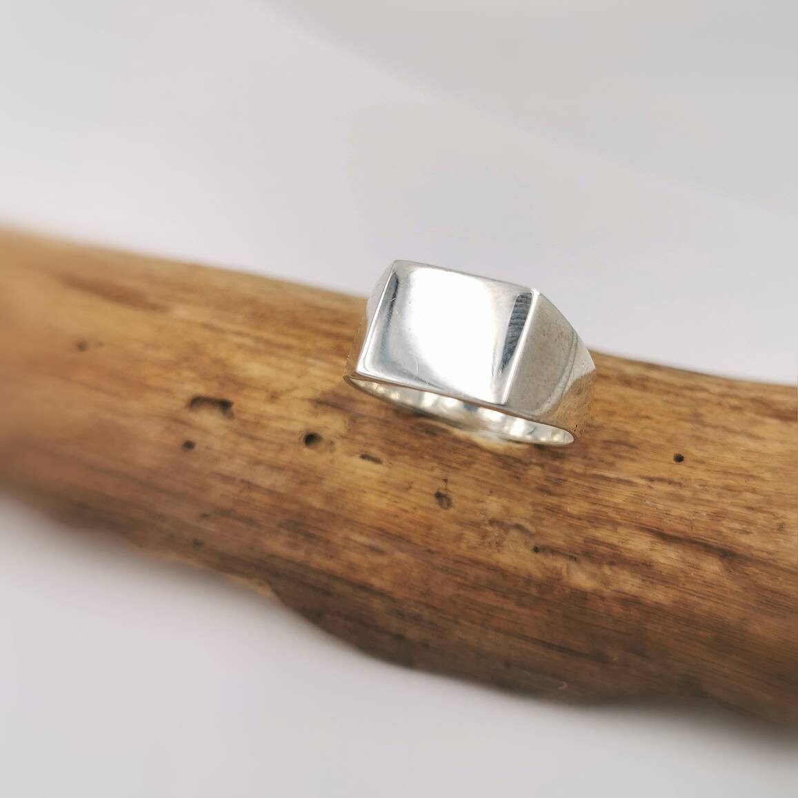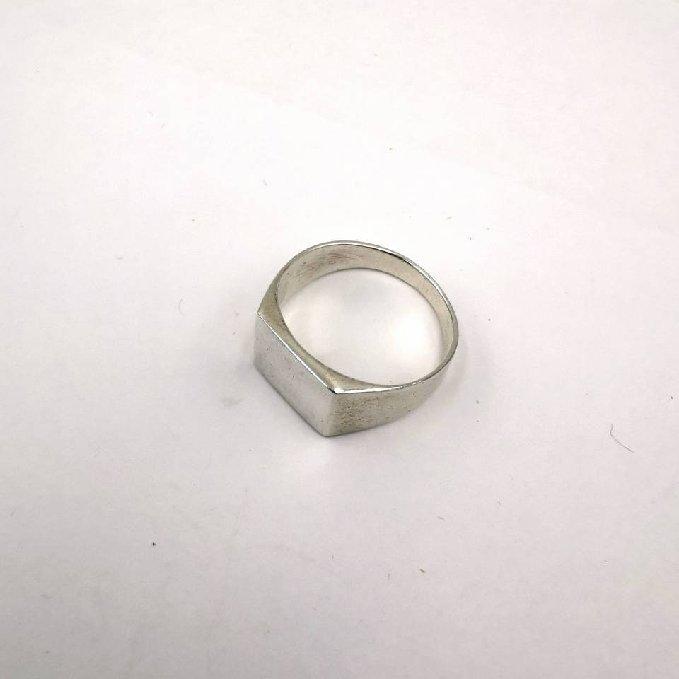 925 silver signet ring with a rectangular shape. Easy to match with other rings or to be used by itself. The ring is not hollow from the back but solid.