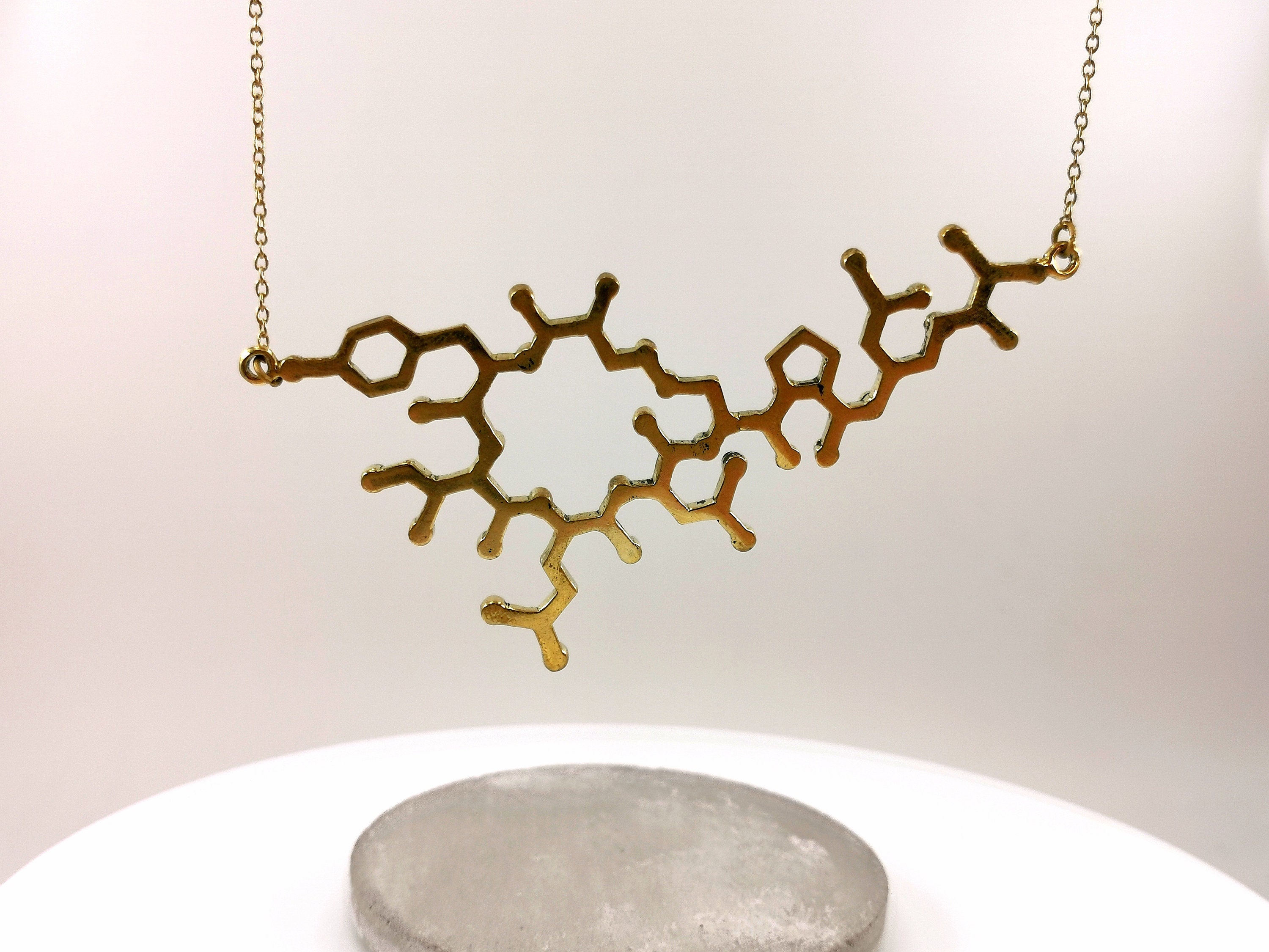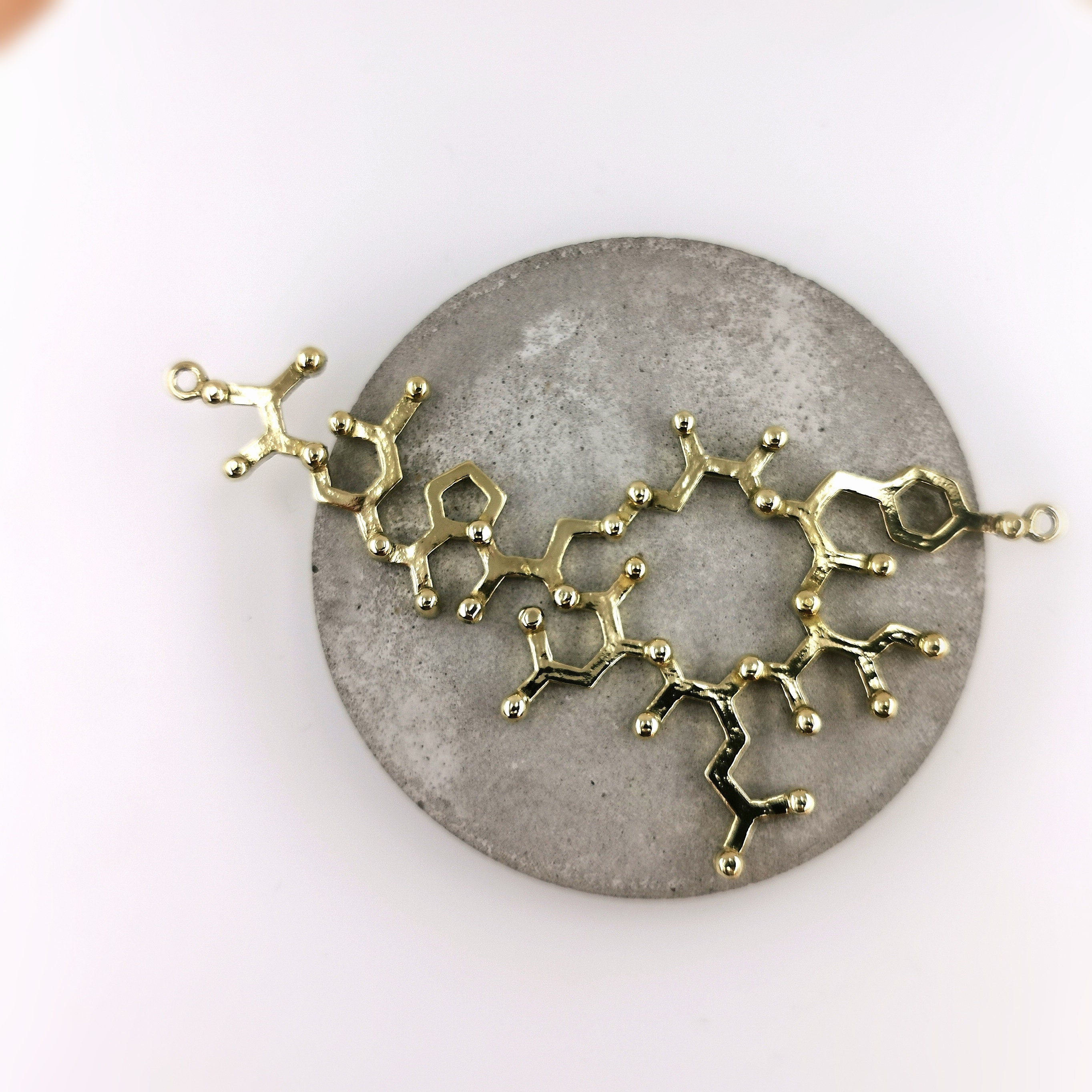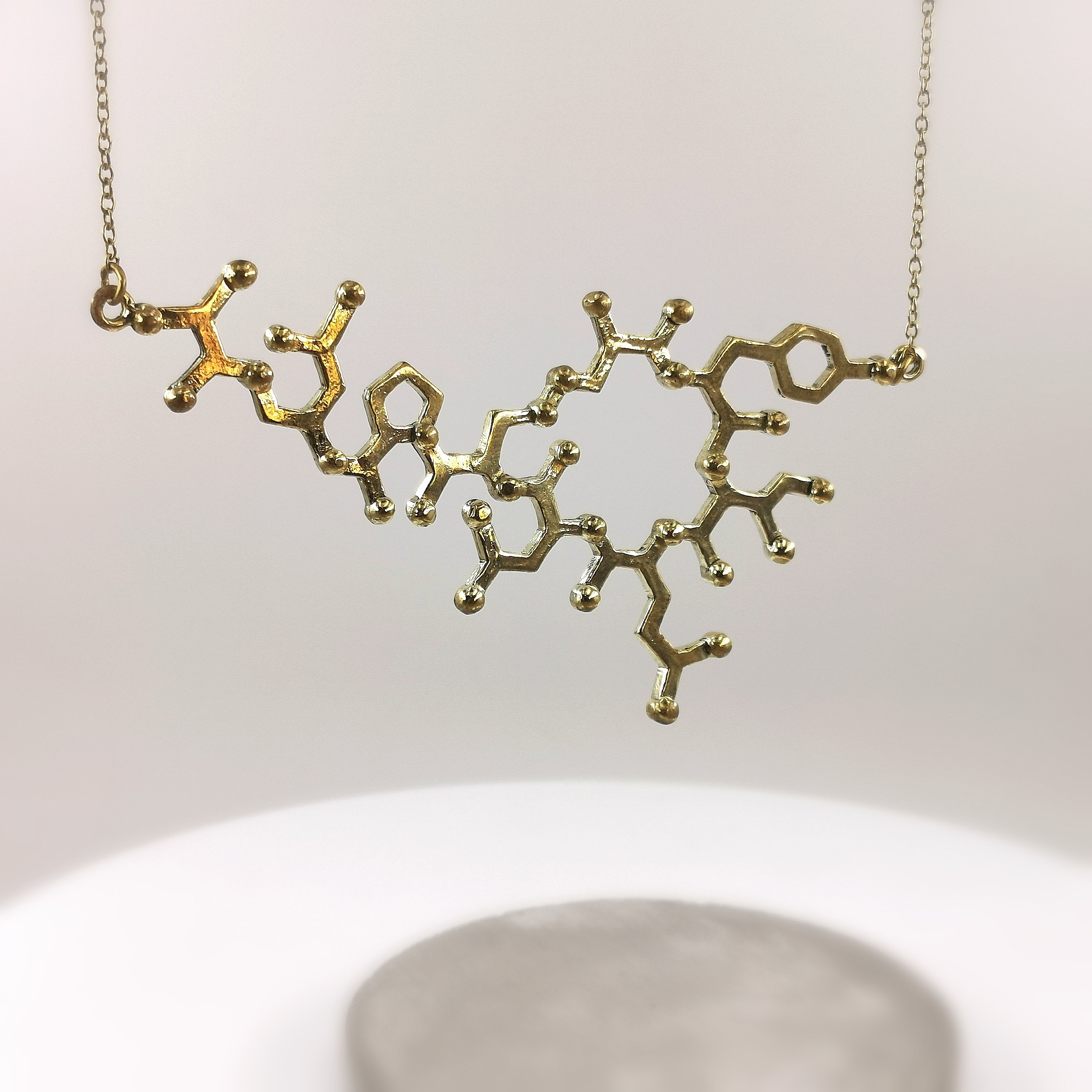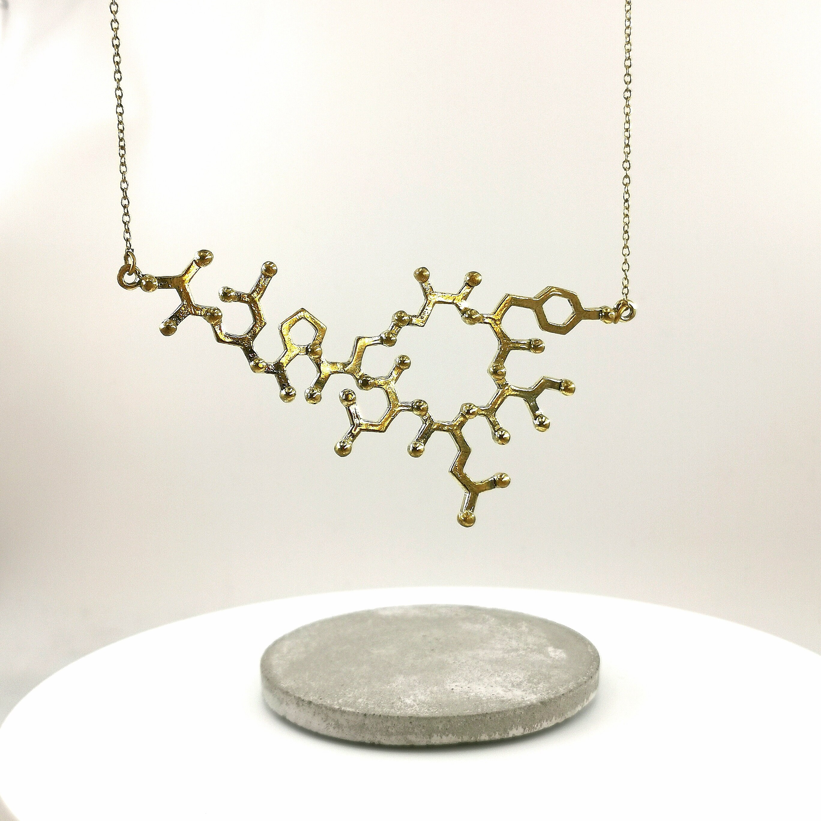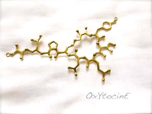 The oxytocin molecule has been cast out of high-quality nickel-free brass, filed and polished until perfection.