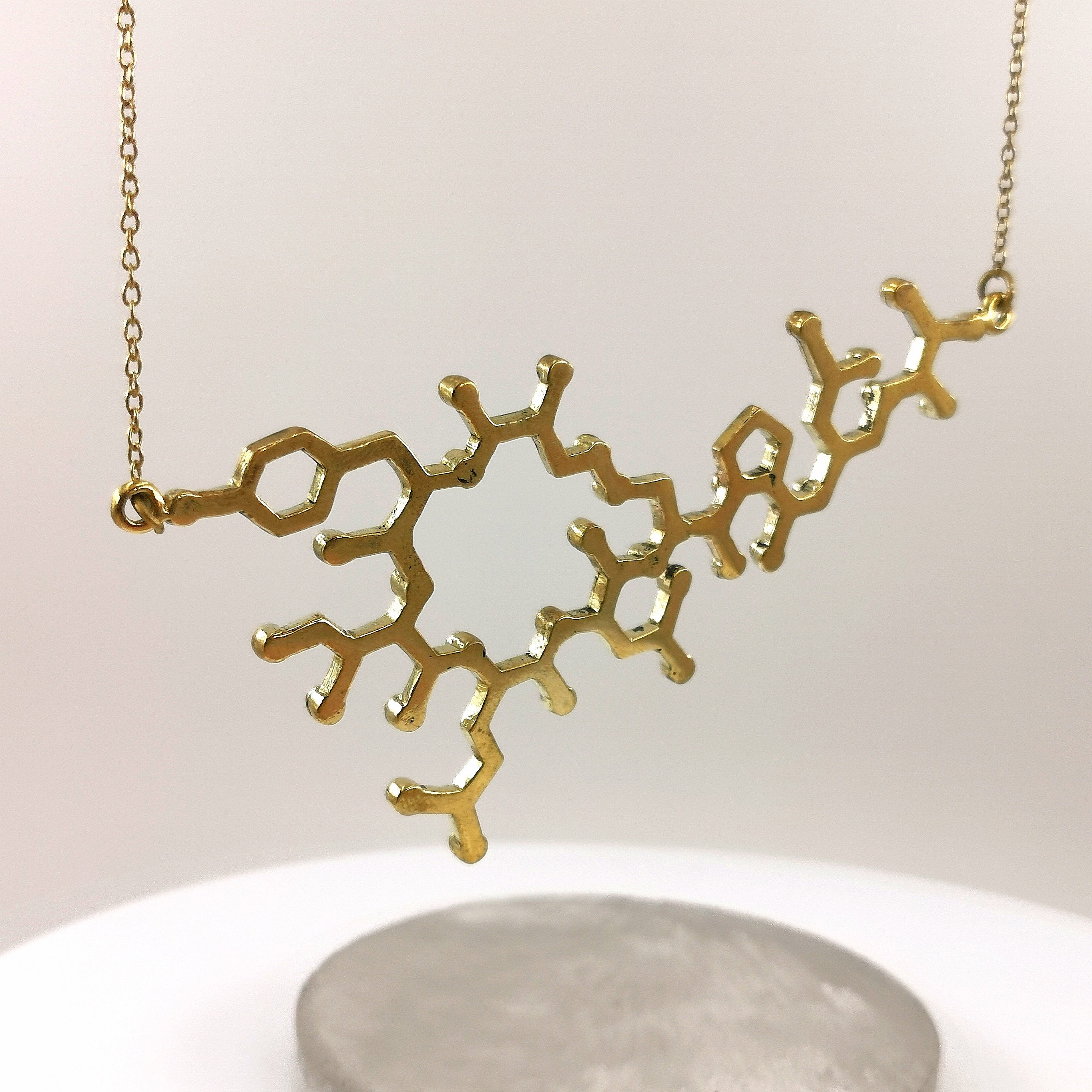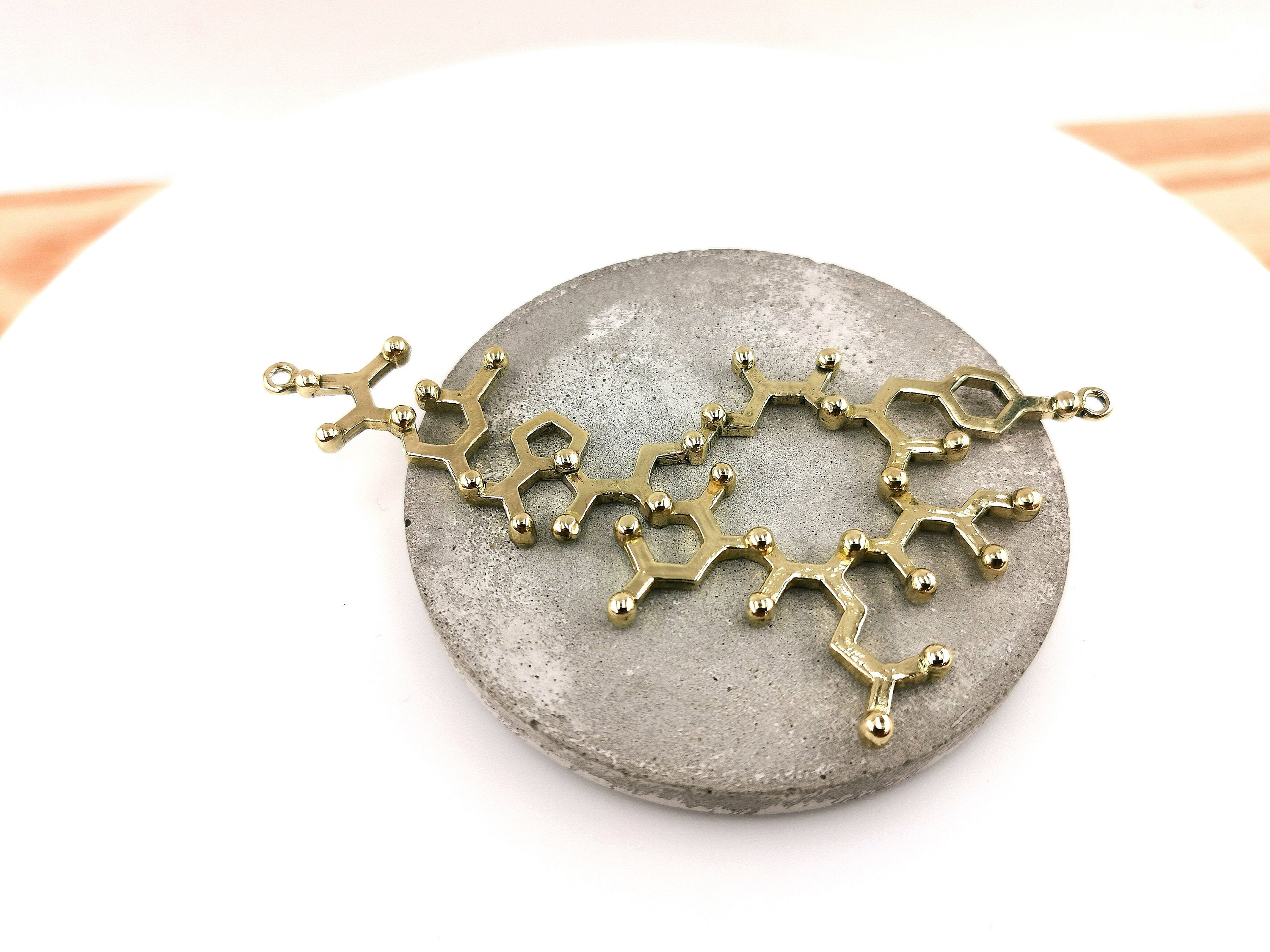 We, CatSamJewelry, believe that wearing the molecular structure of a substance gives you a little bit of the effect of this substance in your daily life. Whether that is only superstition or natural is hard to tell and in the end, depends on you. Independent from that molecular structures are a great way of expressing an affinity for something more sophisticatedly.