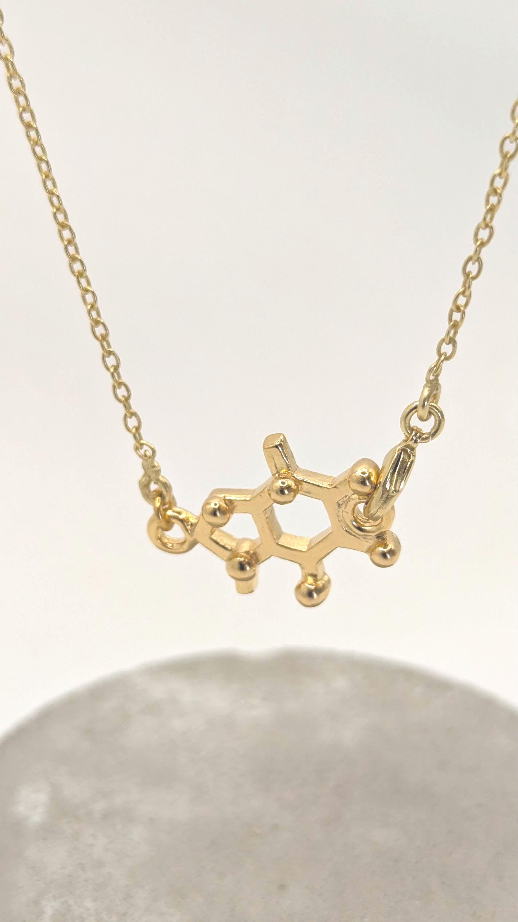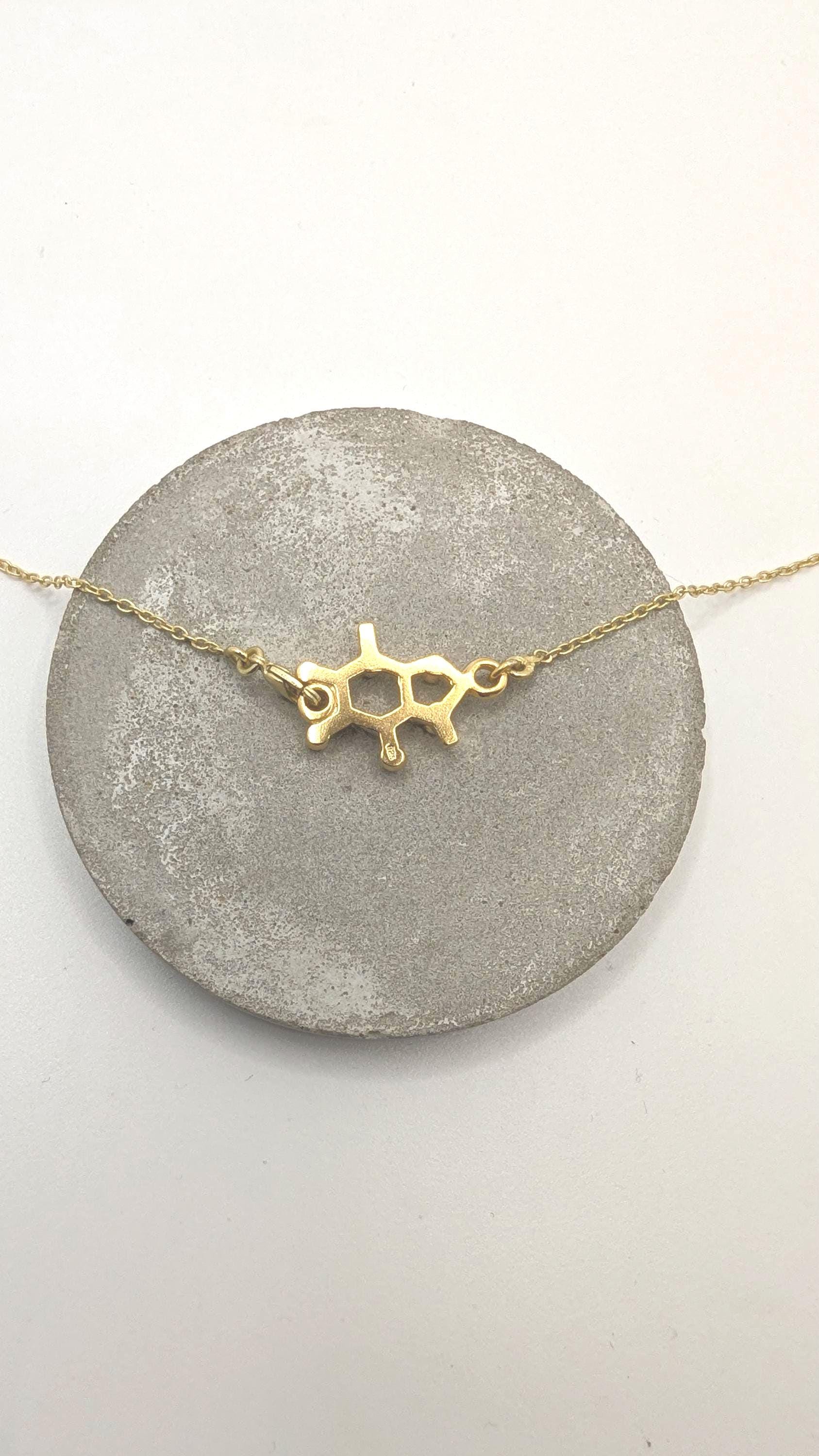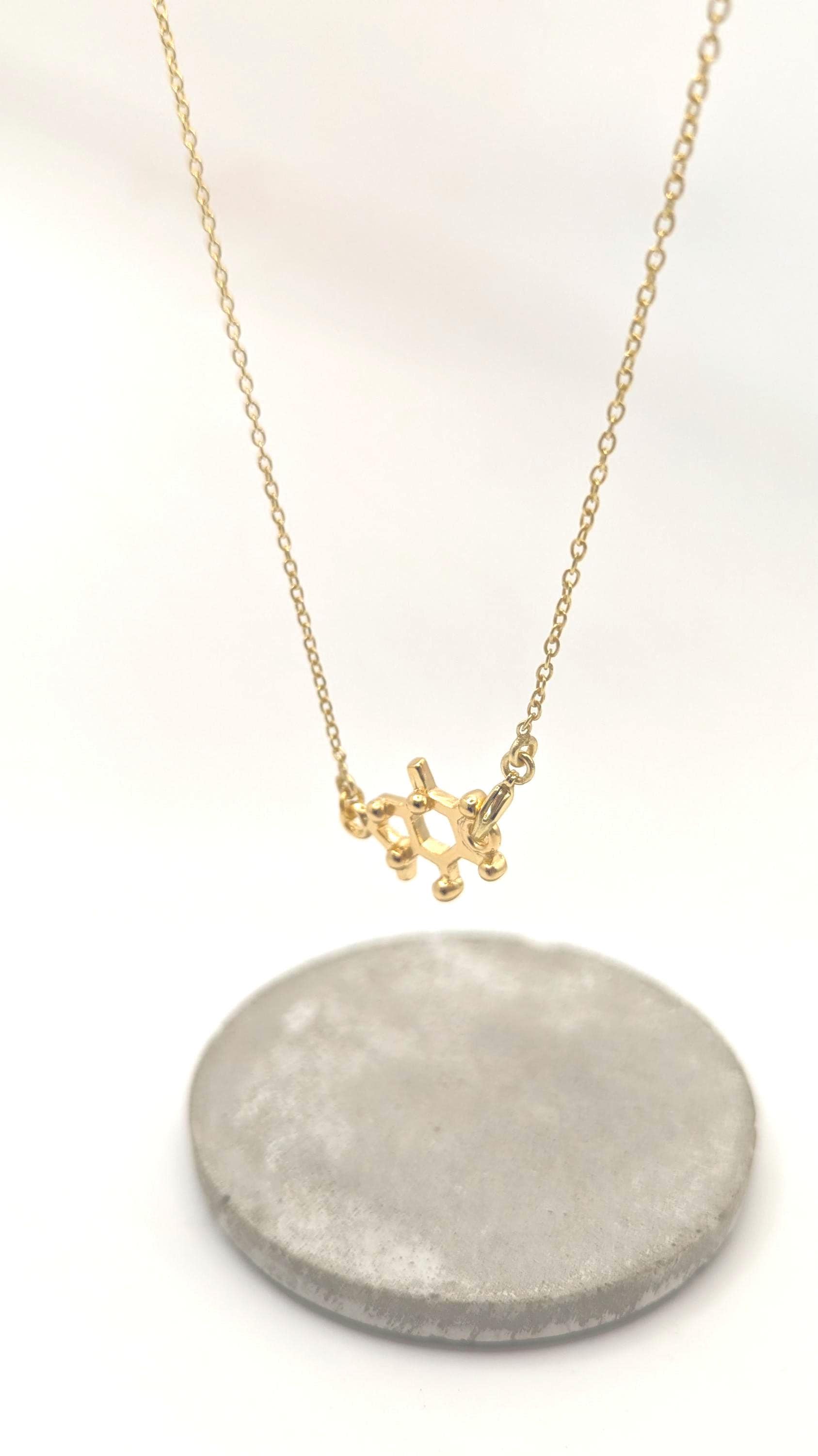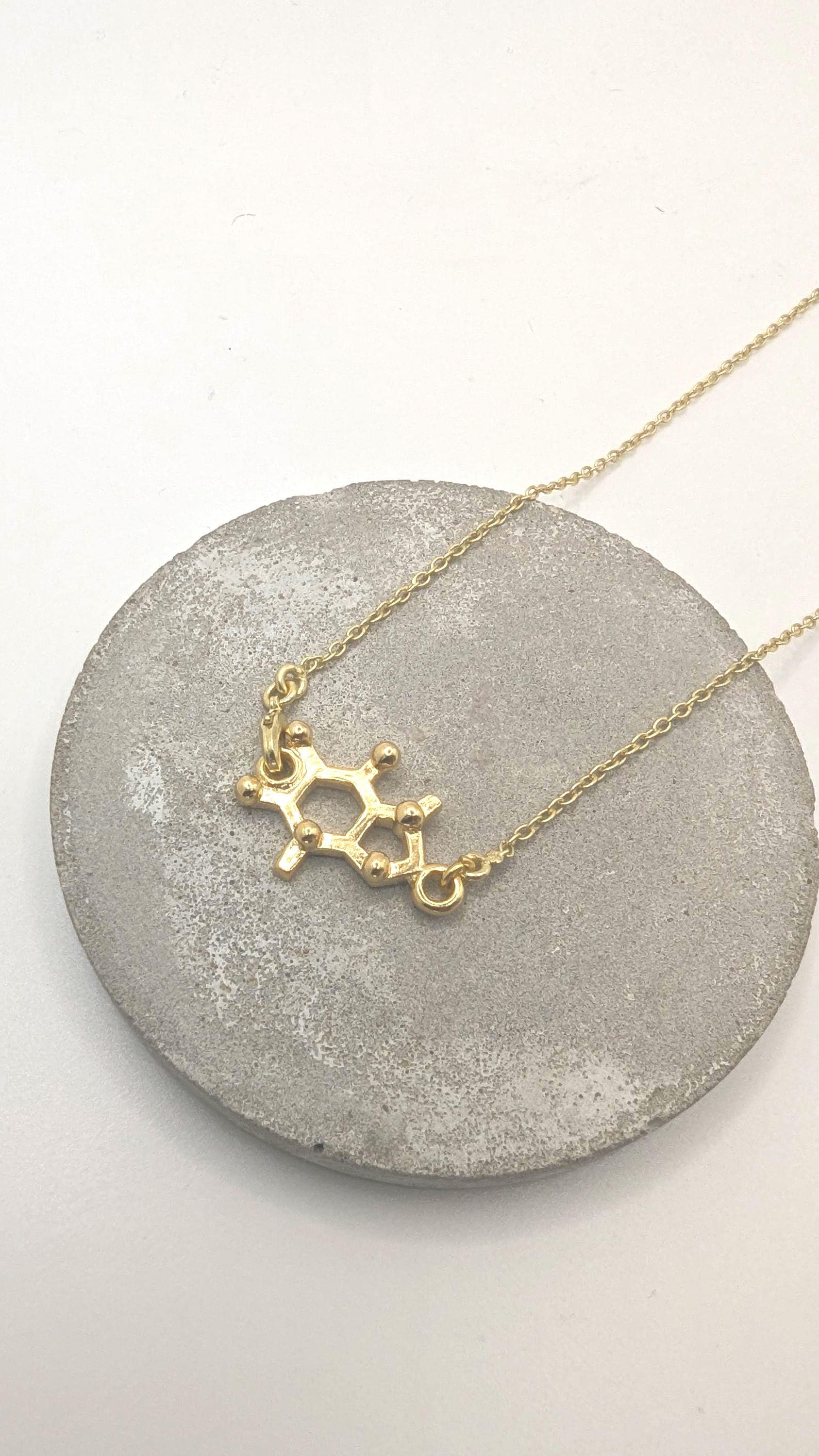 We, CatSamJewelry, believe that wearing the molecular structure of a substance gives you a little bit of the effect of this substance in your daily life. If that is only superstition or real is hard to tell, and by the end it depends on you. Independent of that, molecular structures is a great way of expressing an affinity for something in a more sophisticated way.