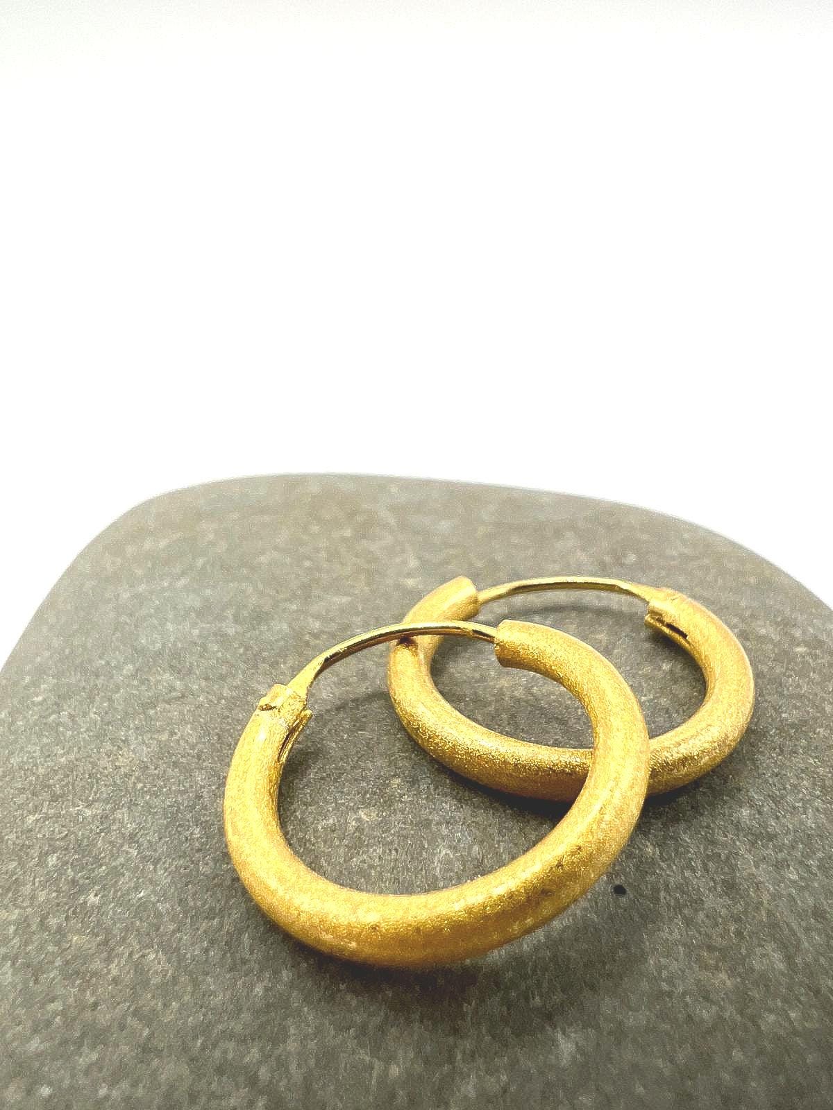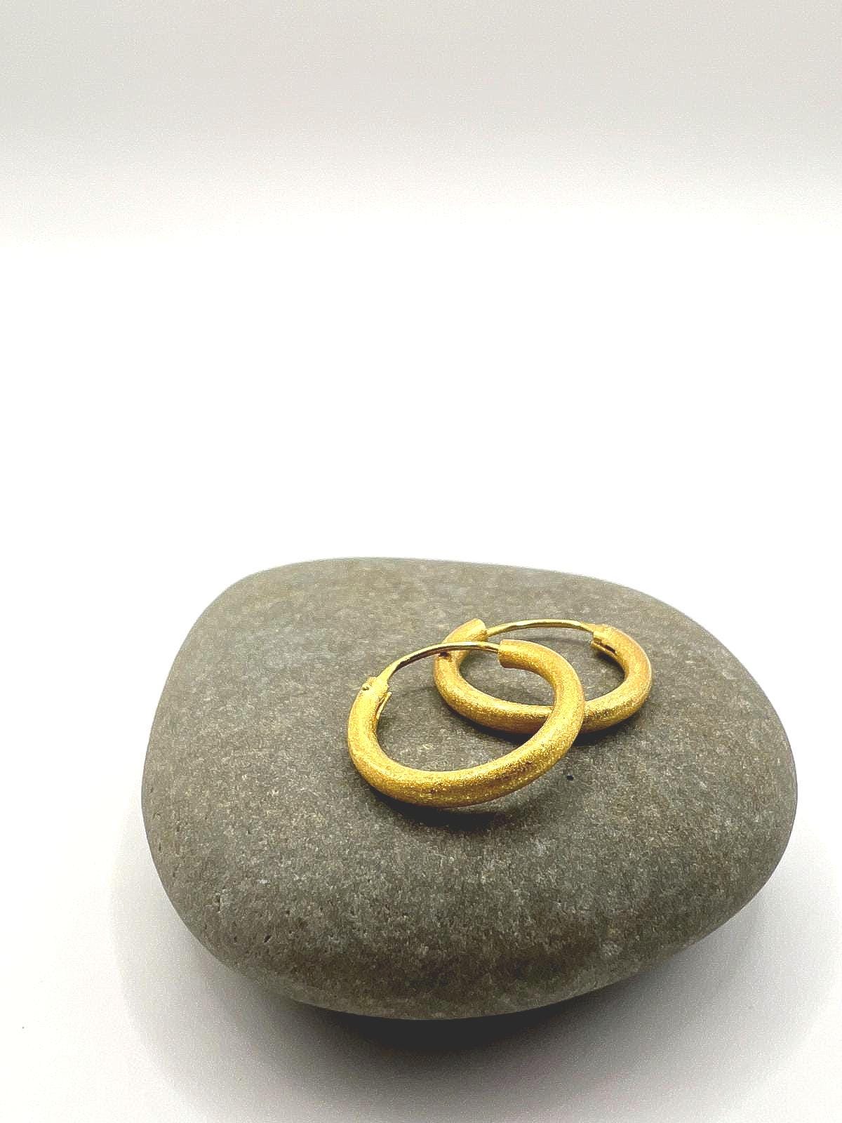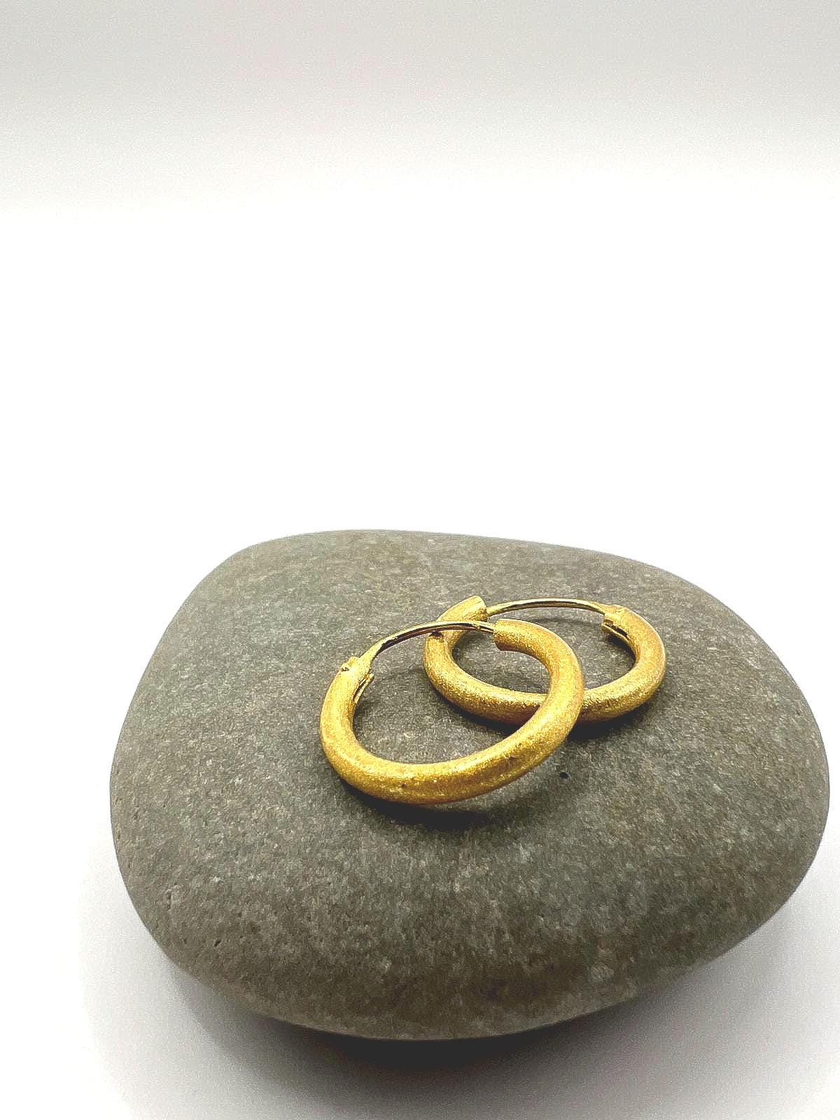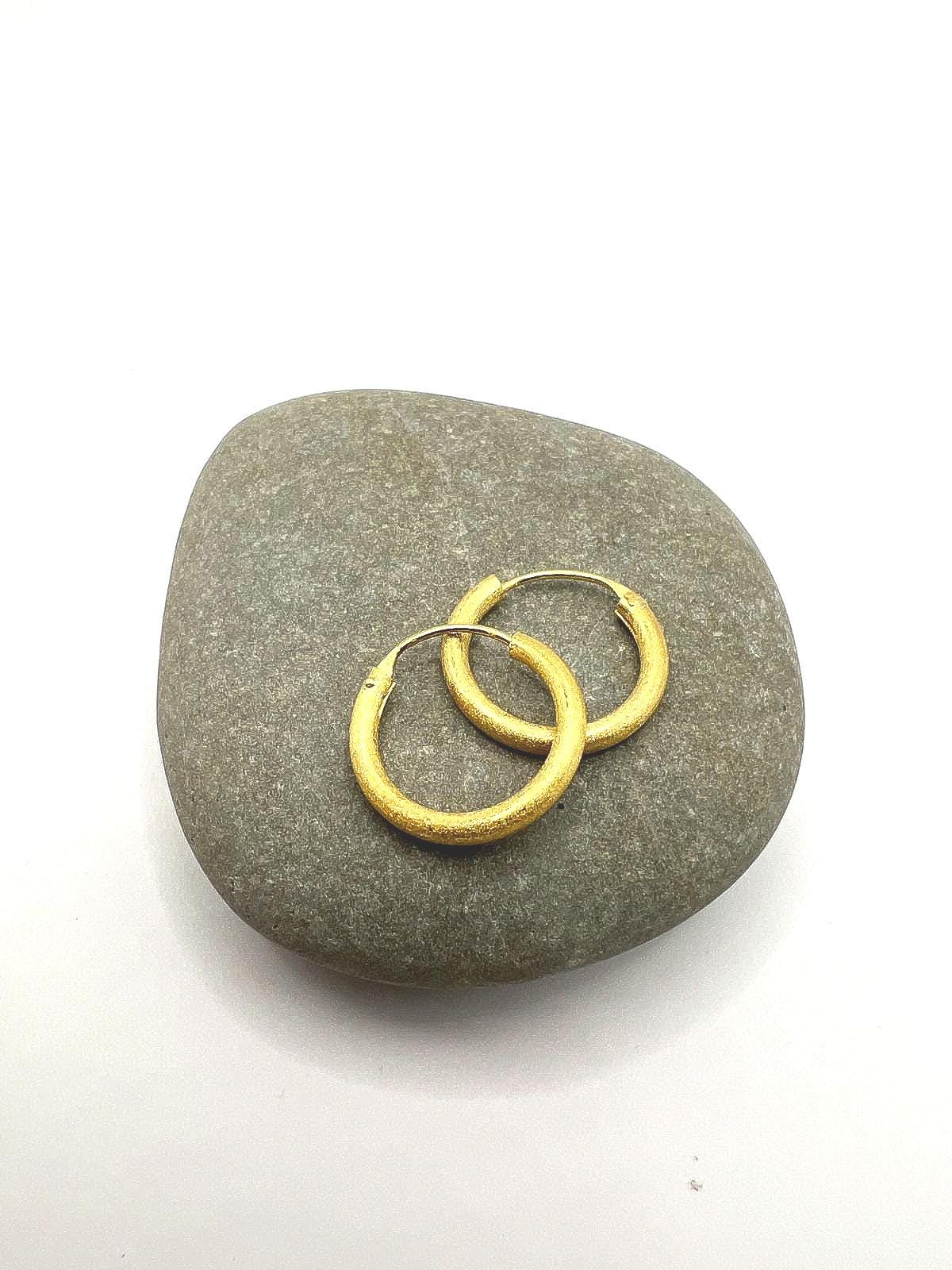 Classic matte finish hoop earrings made of 18k gold-plated 925 silver. Perfect present for any age and gender.