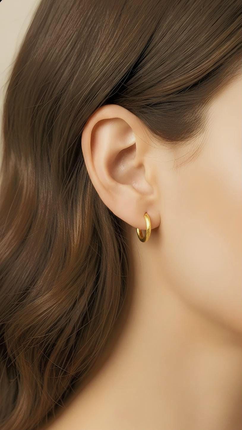 These timeless hoop earrings feature a minimalist design with a sophisticated matte finish. The brushed texture catches the light beautifully while maintaining an understated elegance. Perfect for everyday wear or special occasions, these versatile hoops complement any style from casual to formal. The classic circular shape represents unity, wholeness, and infinite possibilities.