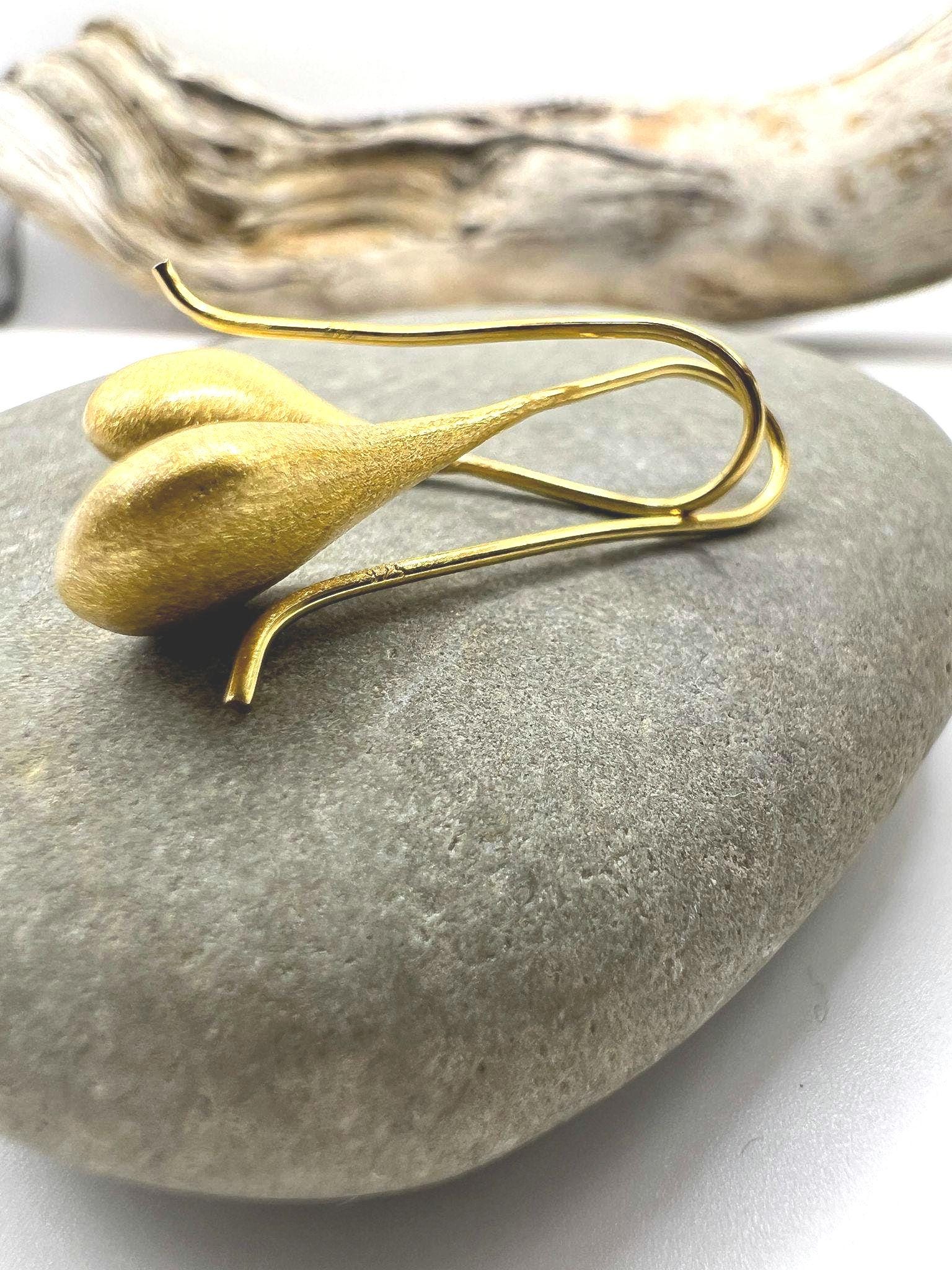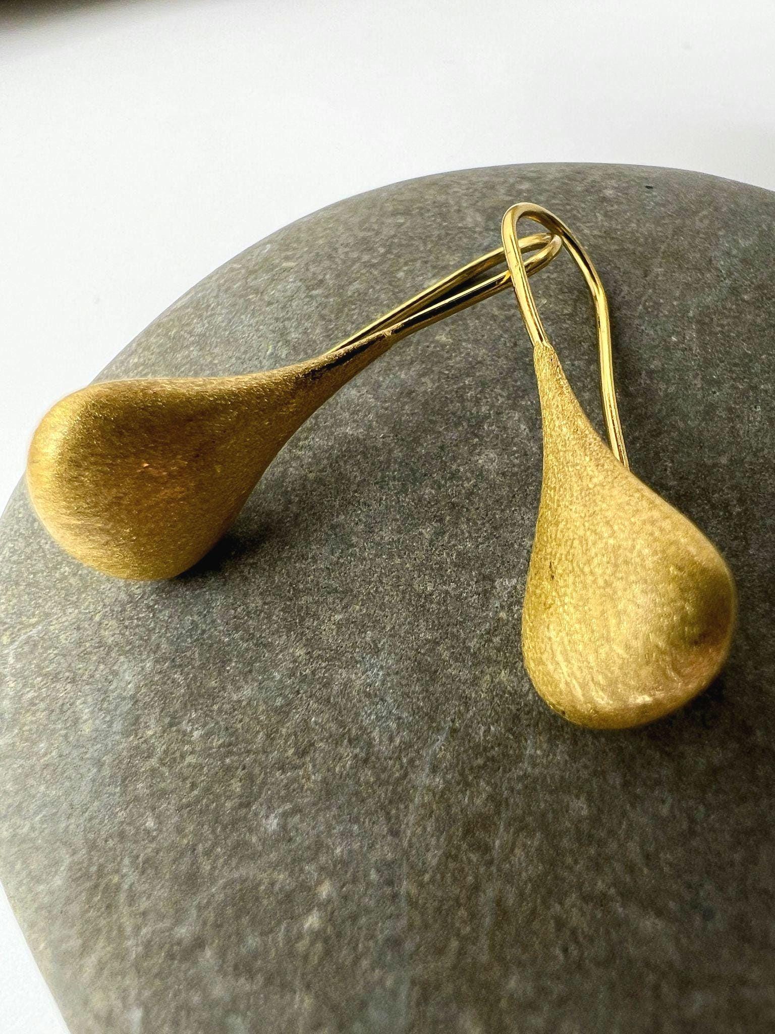 Elegant organic teardrop earrings made of 18k gold plated 925 silver with matte finish. Perfect present for any age and gender.