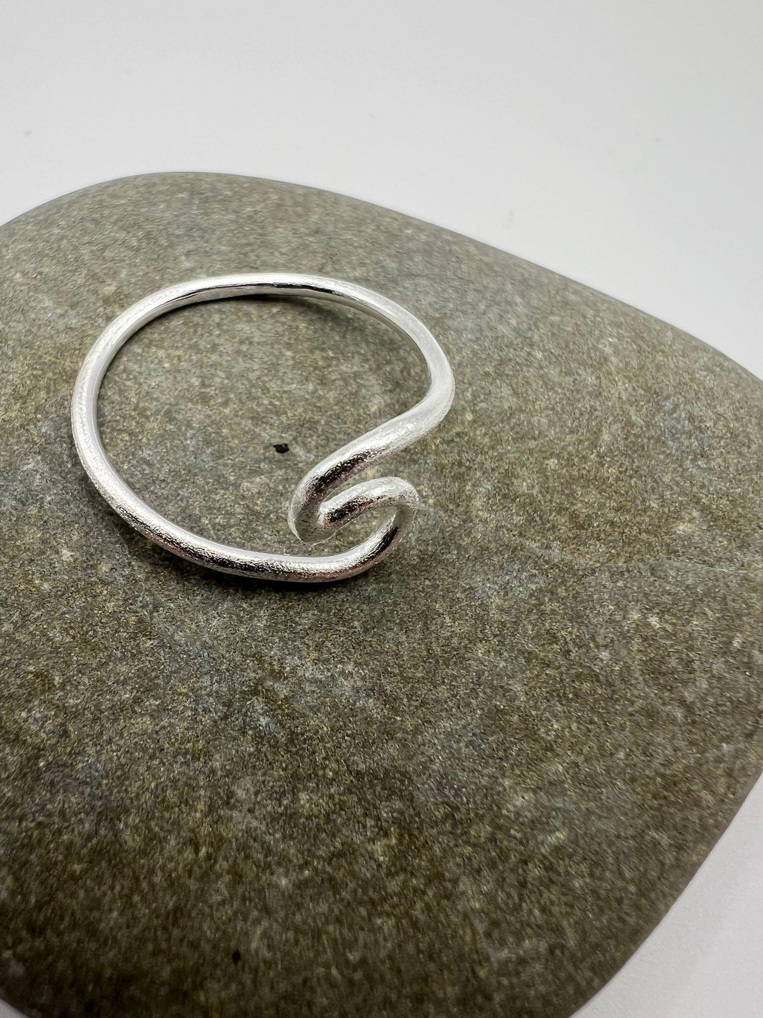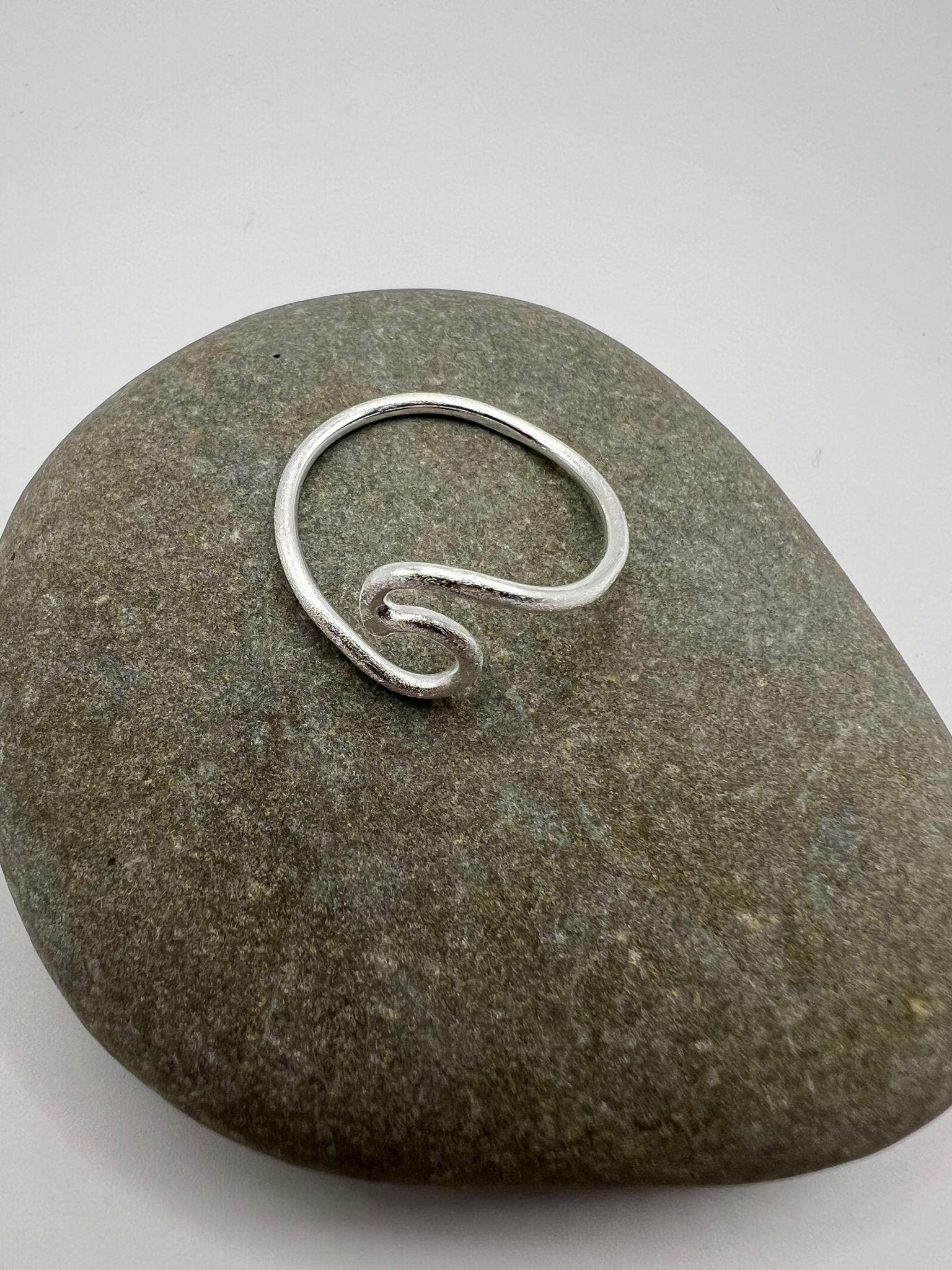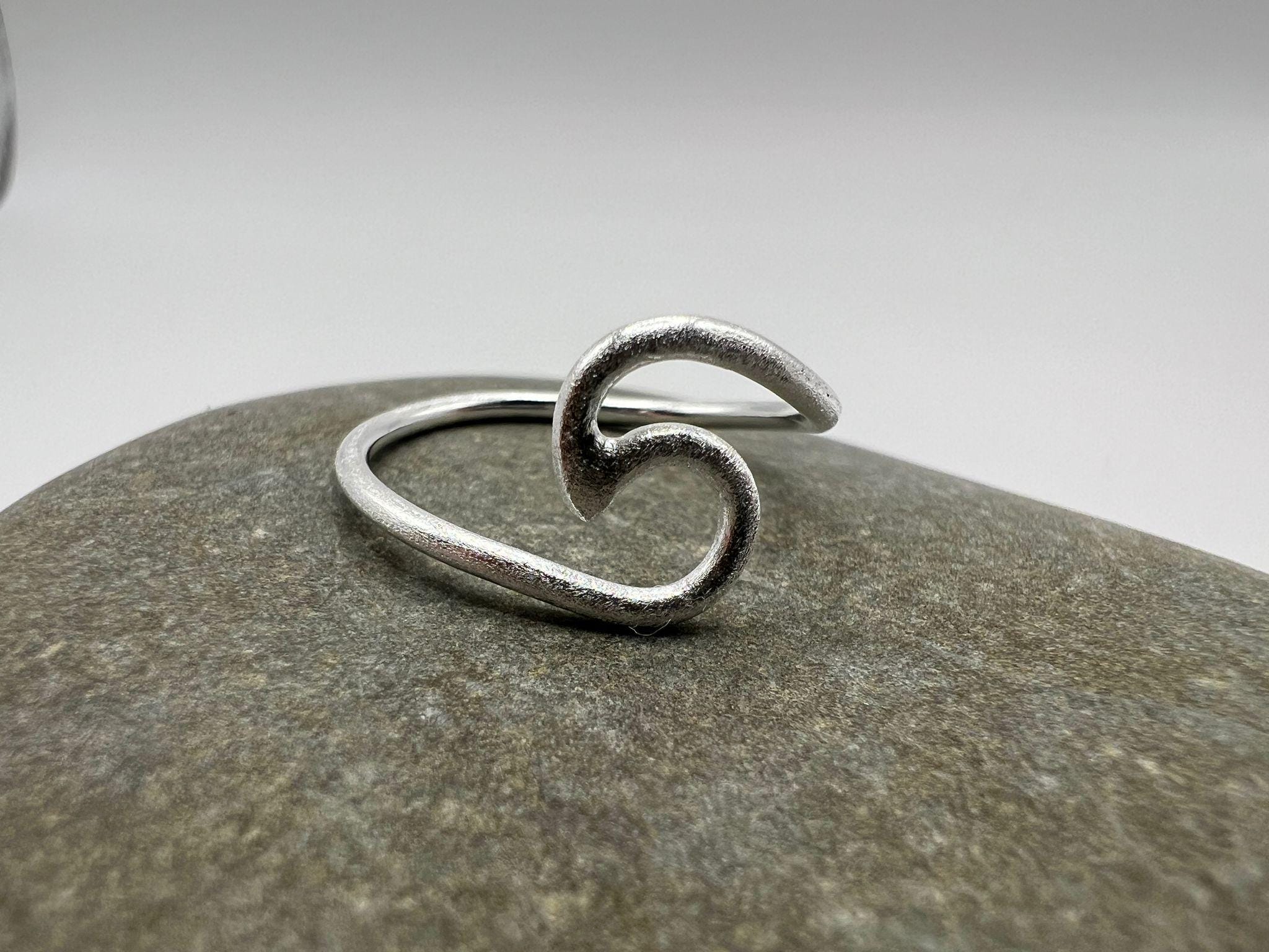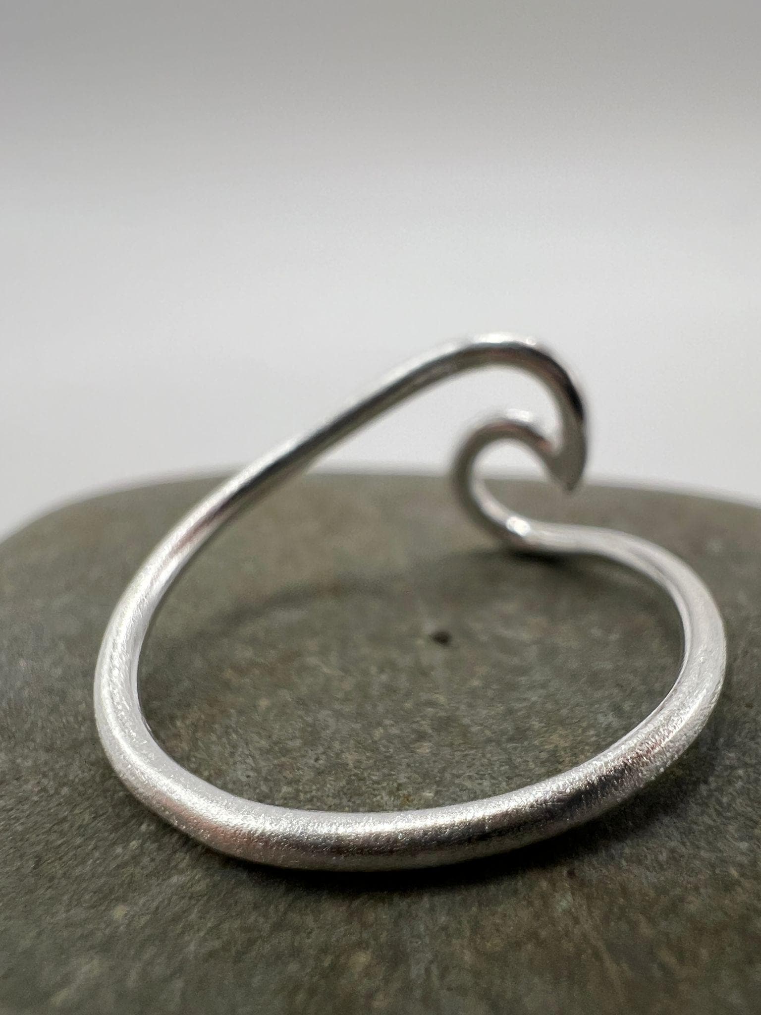 Delicate wave ring handcrafted from 925 sterling silver with a beautiful matte finish. This elegant ring features a graceful spiral wave curl that wraps around a slim, comfortable band. The flowing organic form captures the essence of ocean waves in their eternal dance, creating a wearable piece of the sea's timeless beauty.