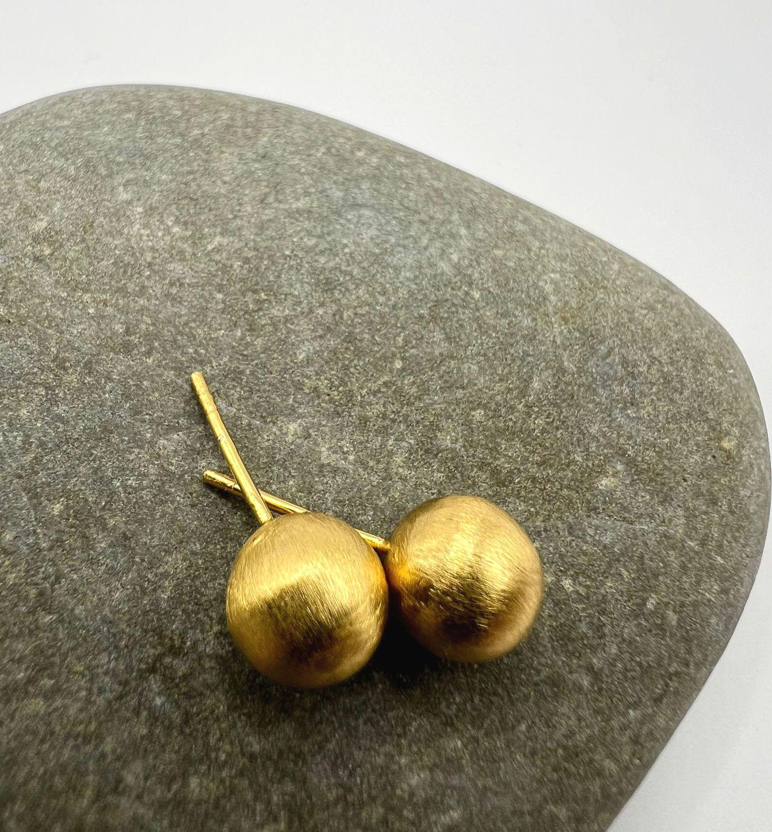 These versatile earrings are true wardrobe essentials that work beautifully for anyone seeking quality, minimalist jewelry with the warmth of gold. The matte finish gives them a modern, sophisticated edge that won't show scratches like polished gold, while the classic ball shape ensures they'll never go out of style.