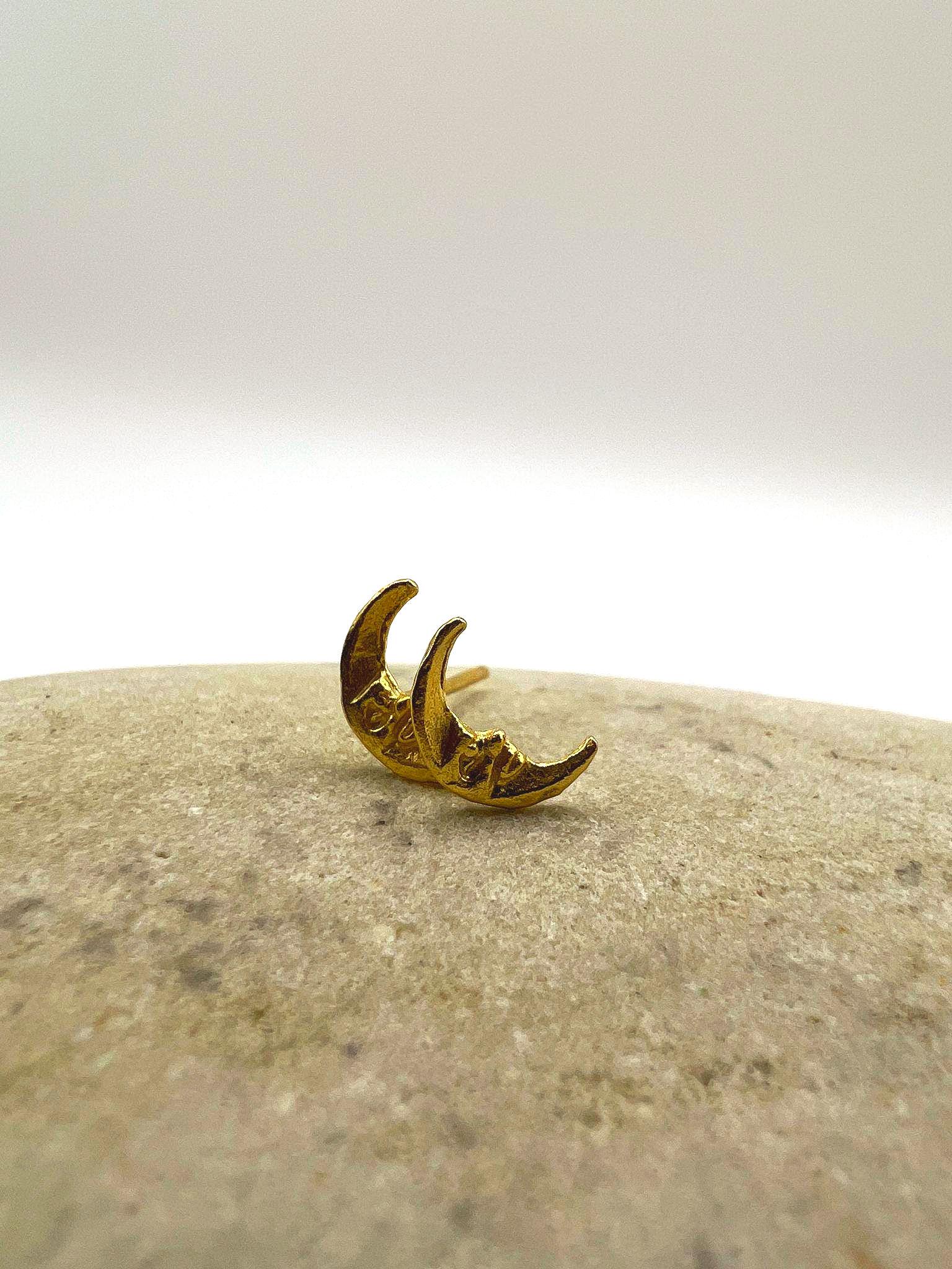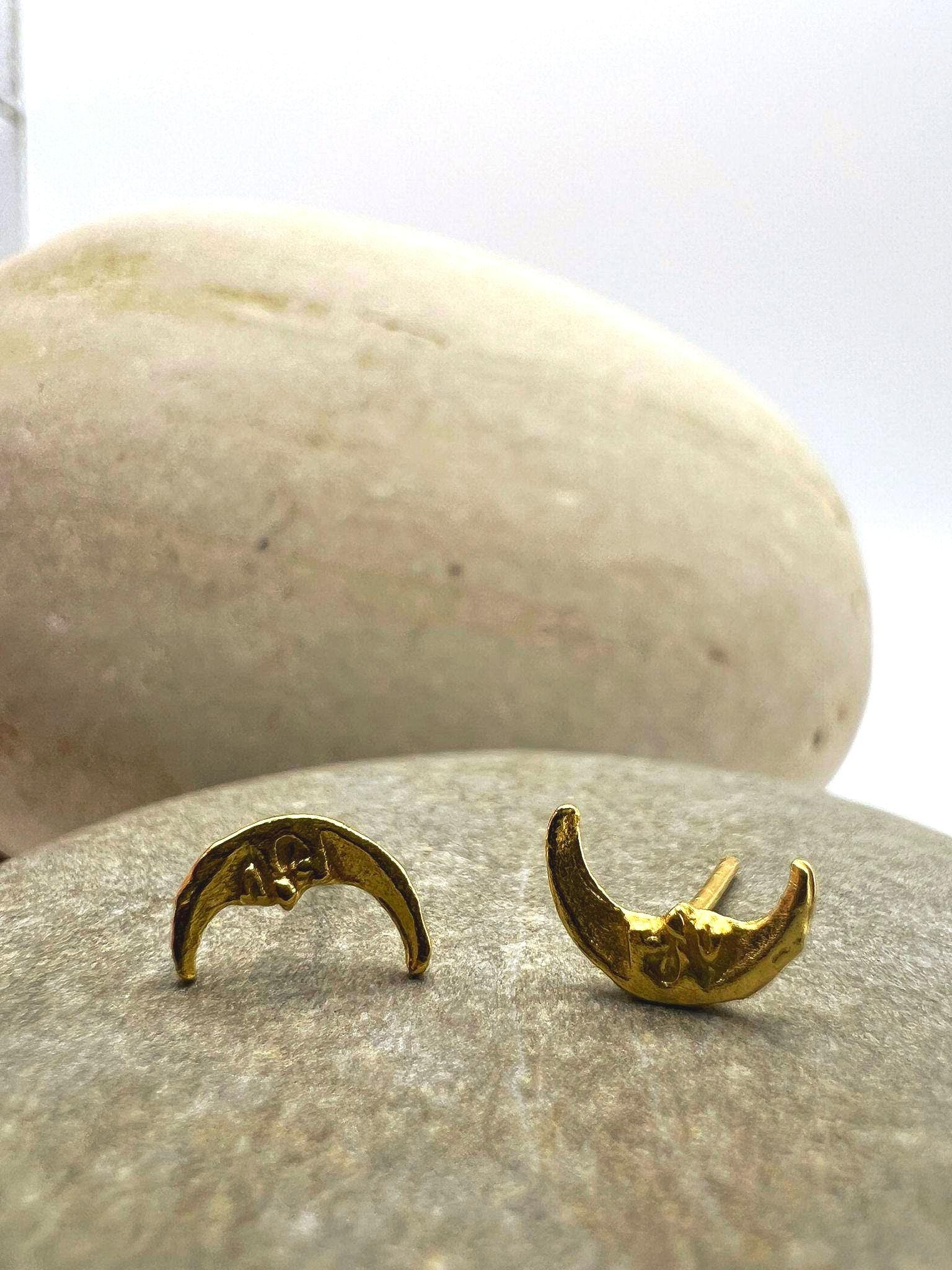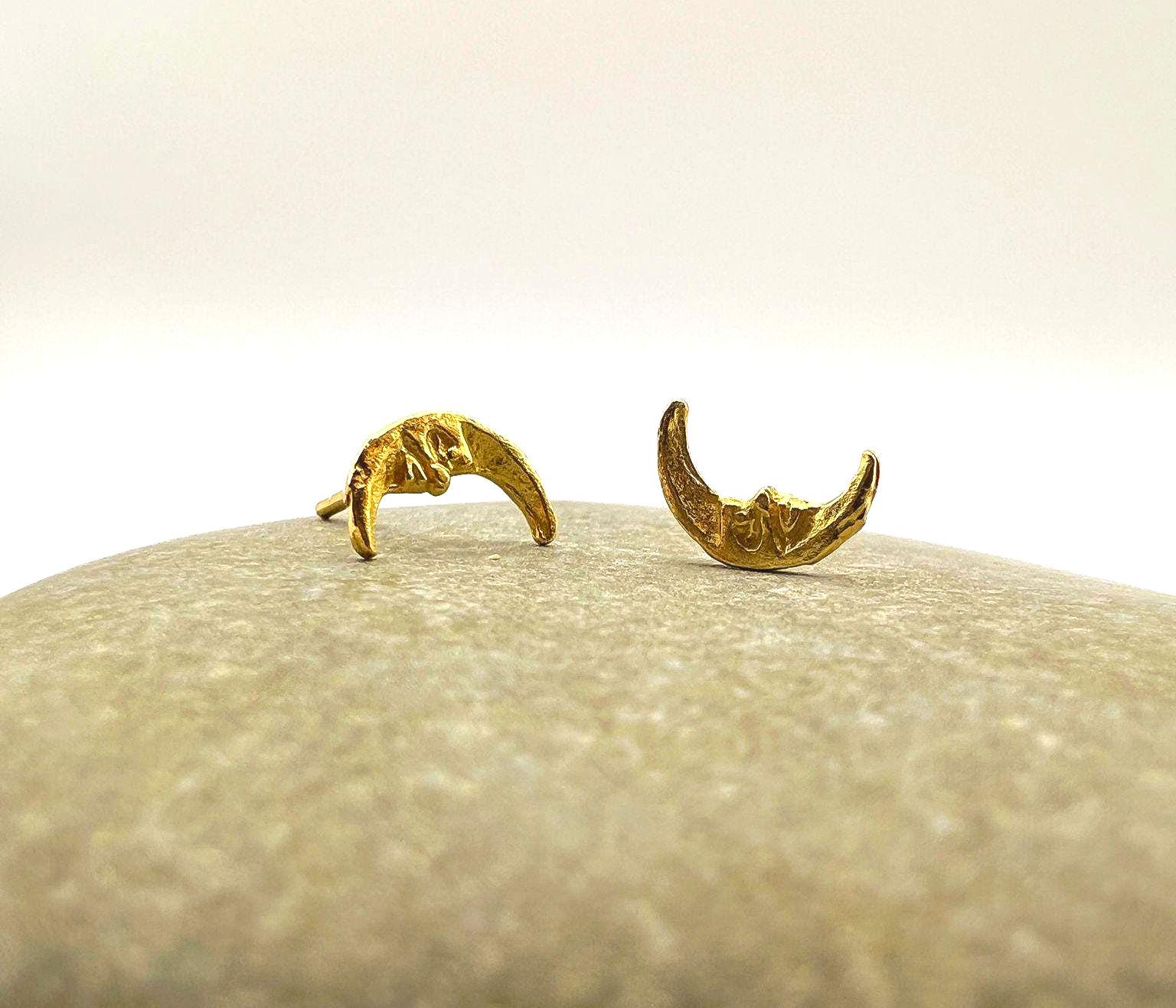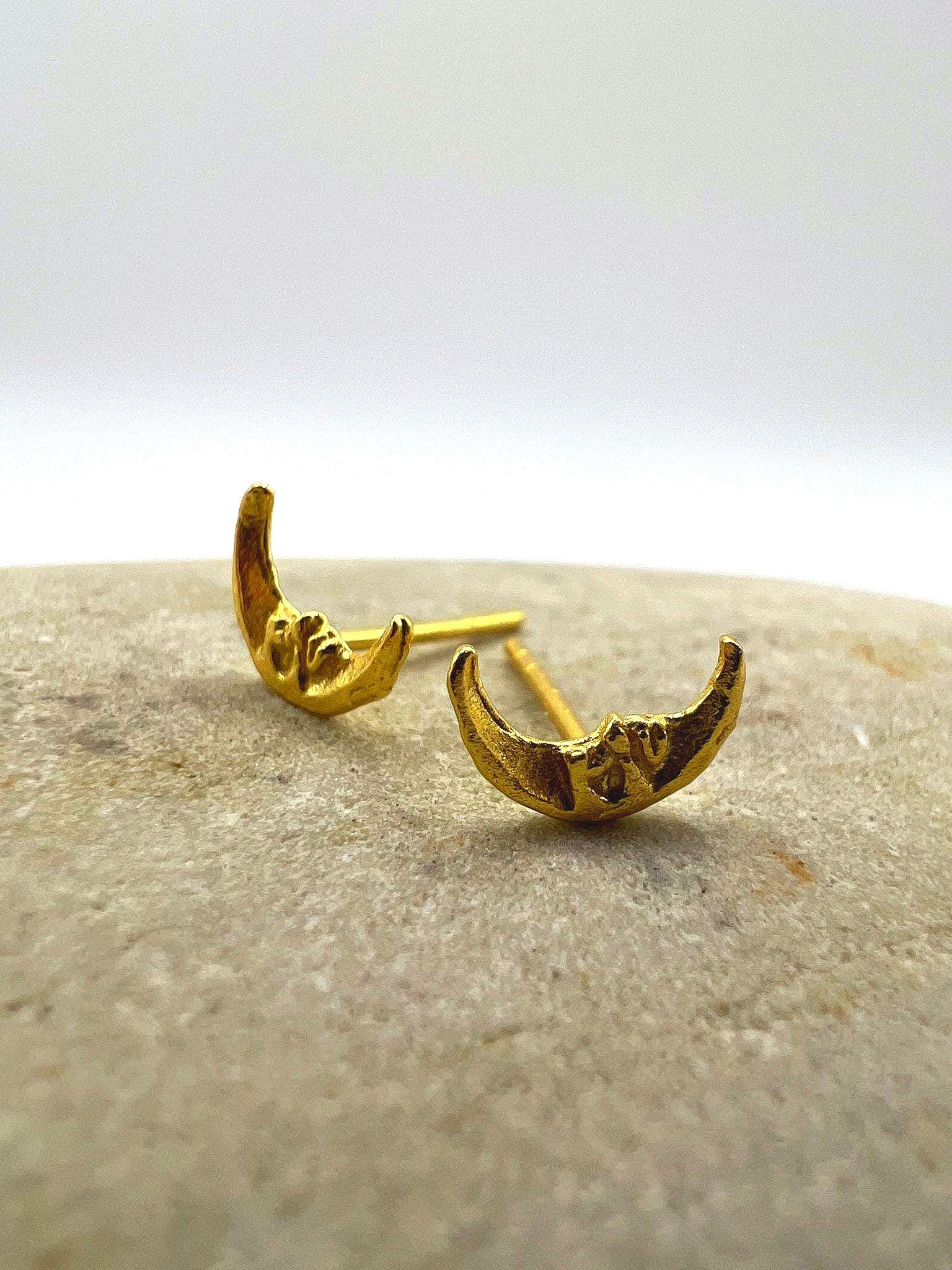 These delicate crescent-shaped studs feature an organic, hand-sculpted texture that gives each piece a warm, artisanal character.