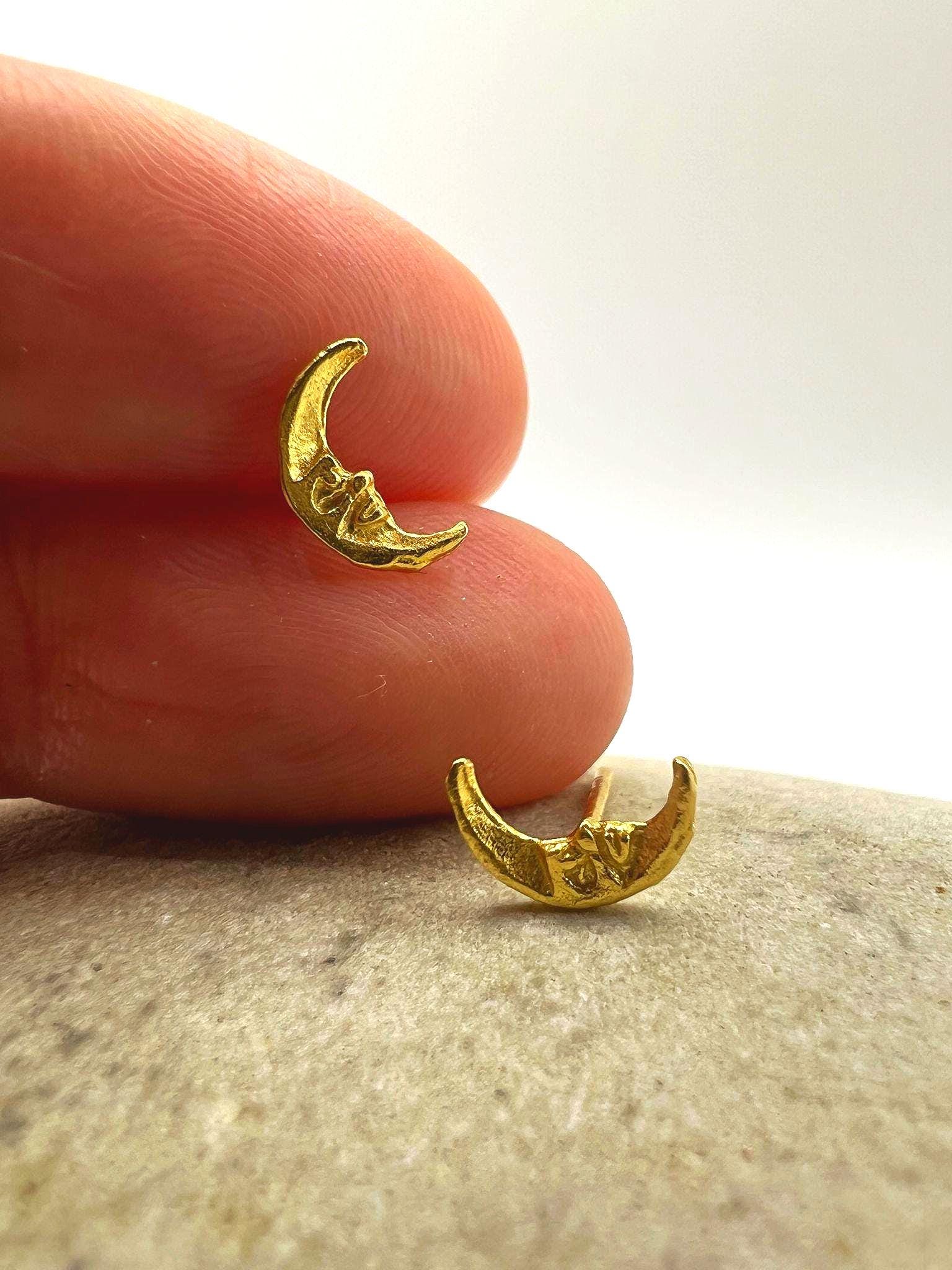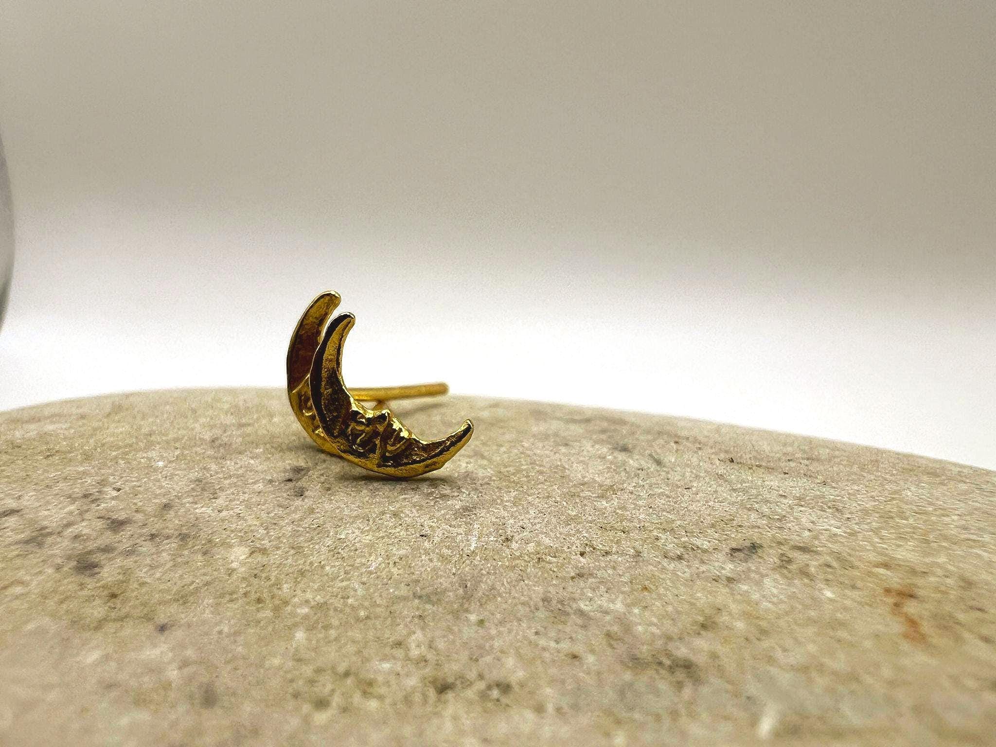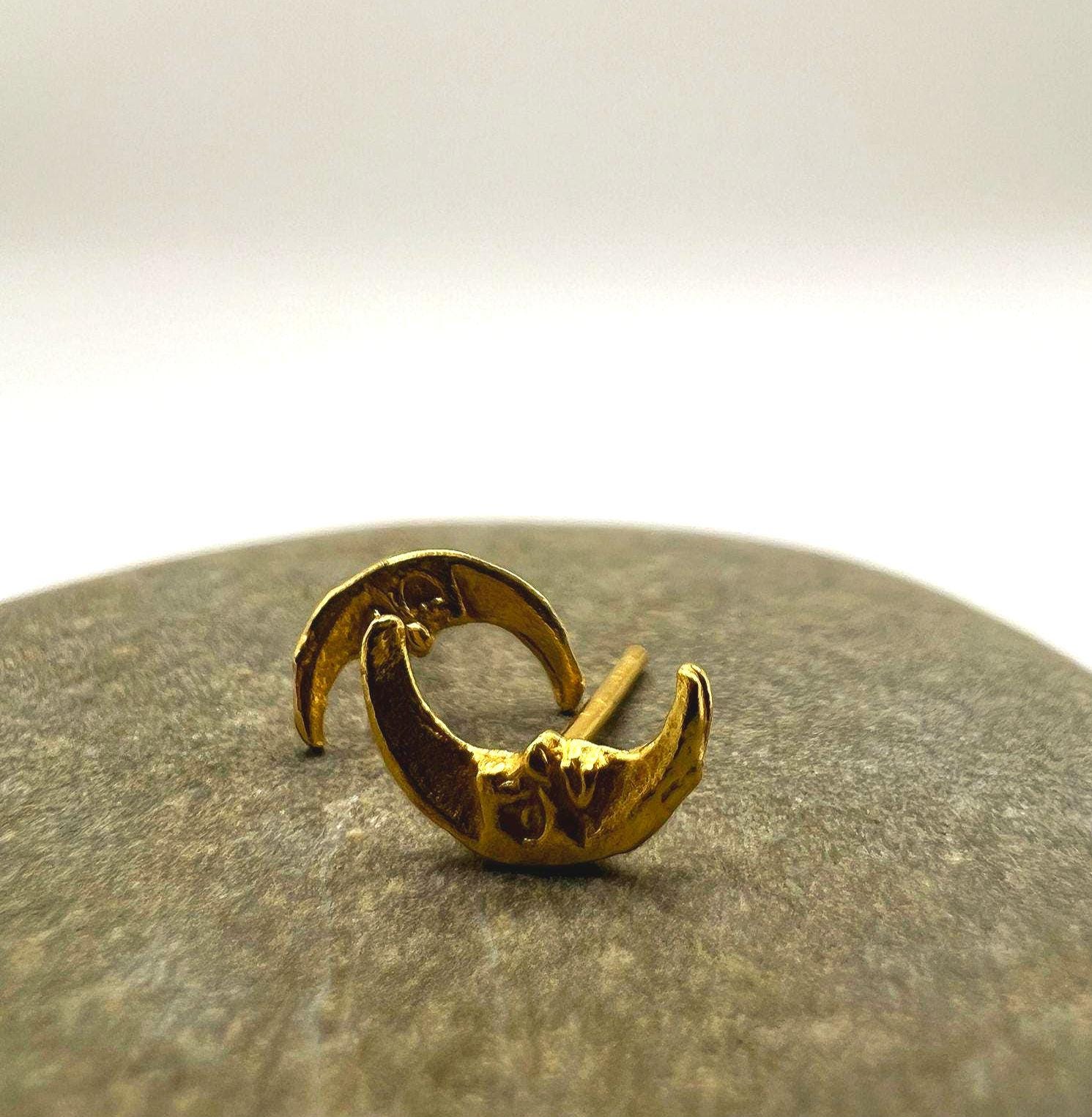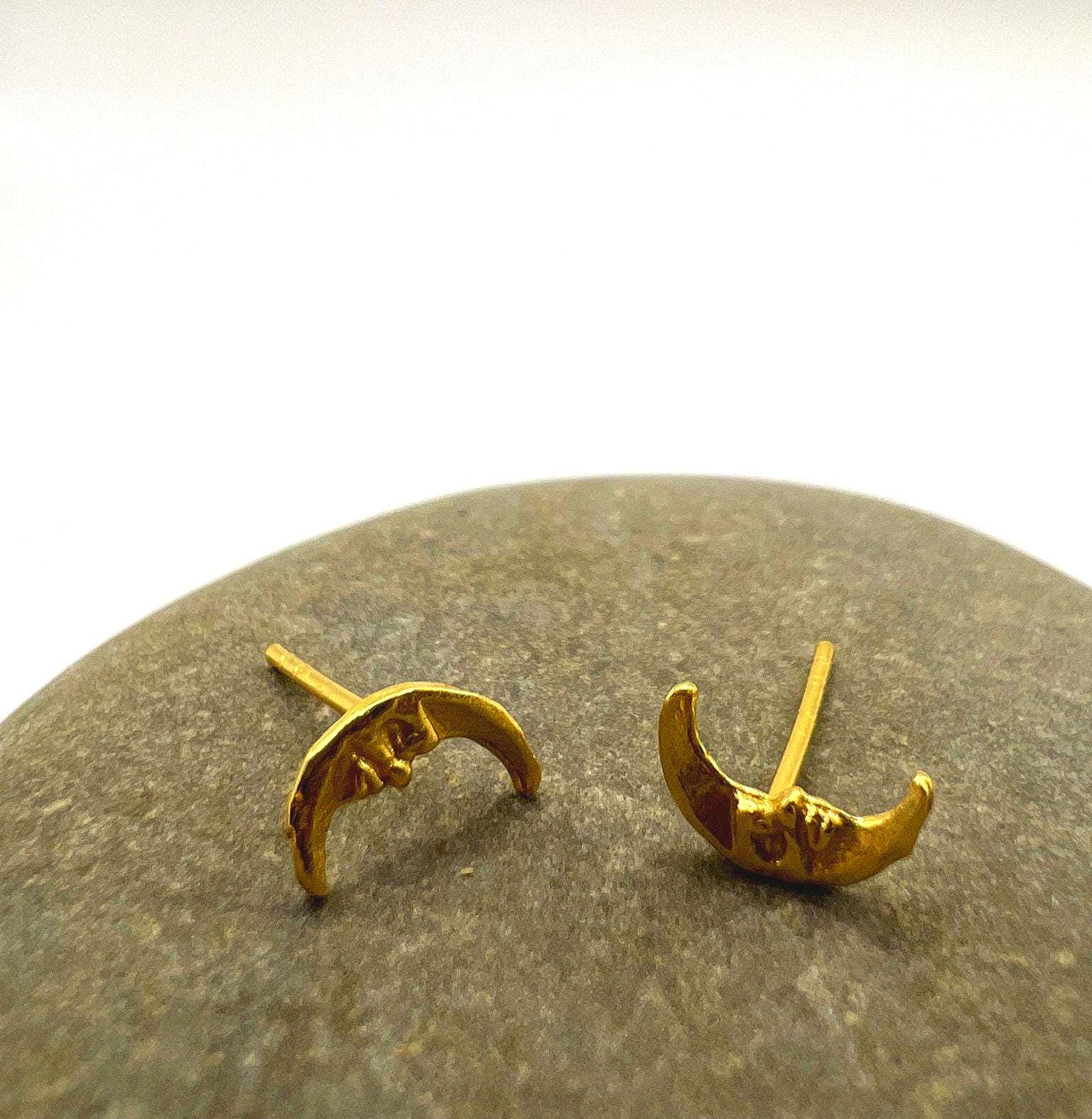 These delicate crescent-shaped studs feature an organic, hand-sculpted texture that gives each piece a warm, artisanal character.