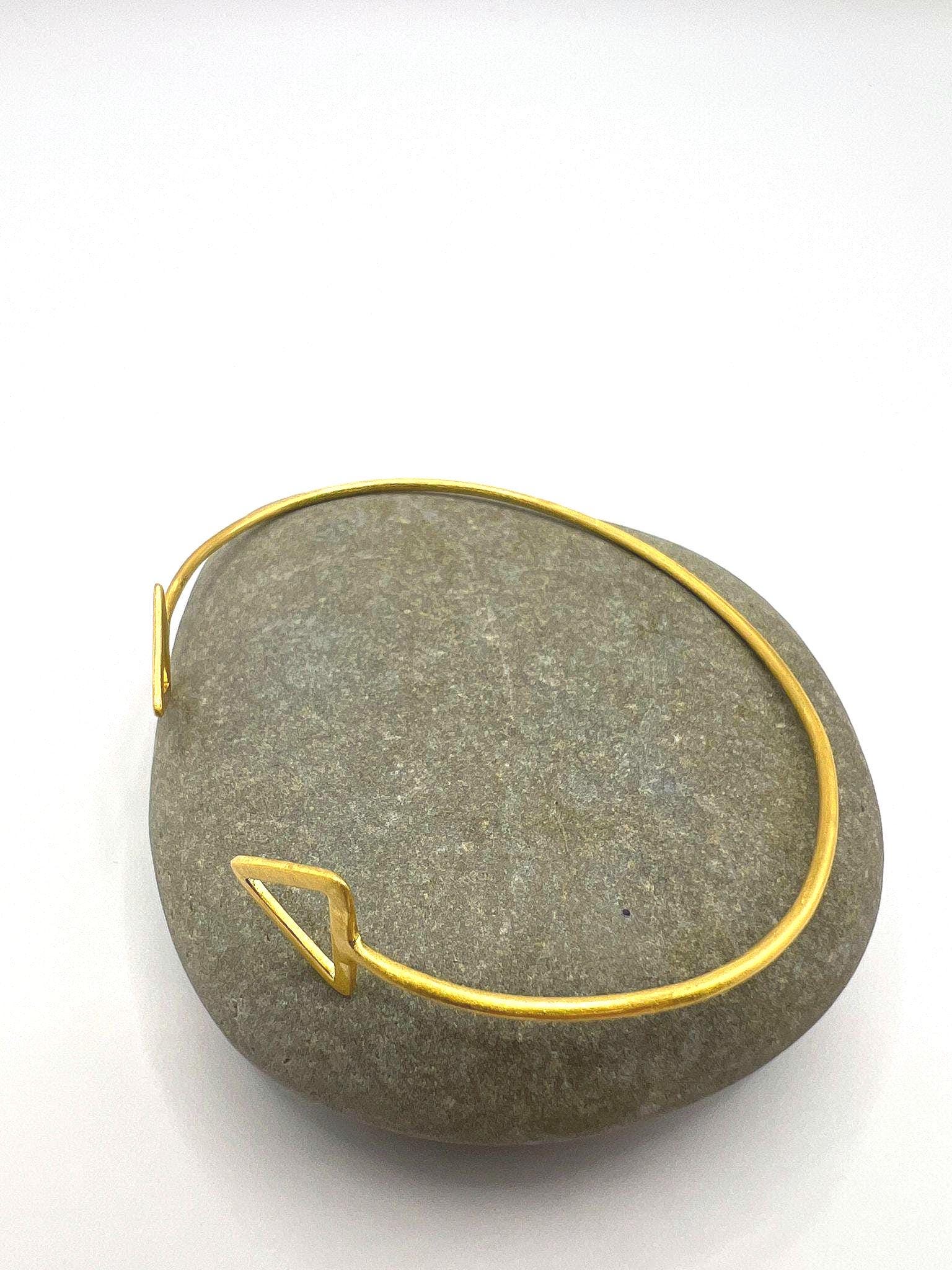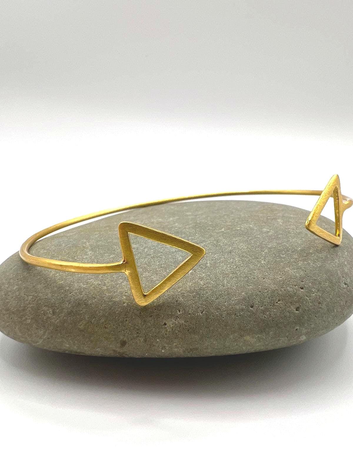 Elegant geometric cuff bracelet with triangle accents handcrafted from 925 sterling silver with luxurious 18K gold plating and matte finish. Perfect present for any age and gender.