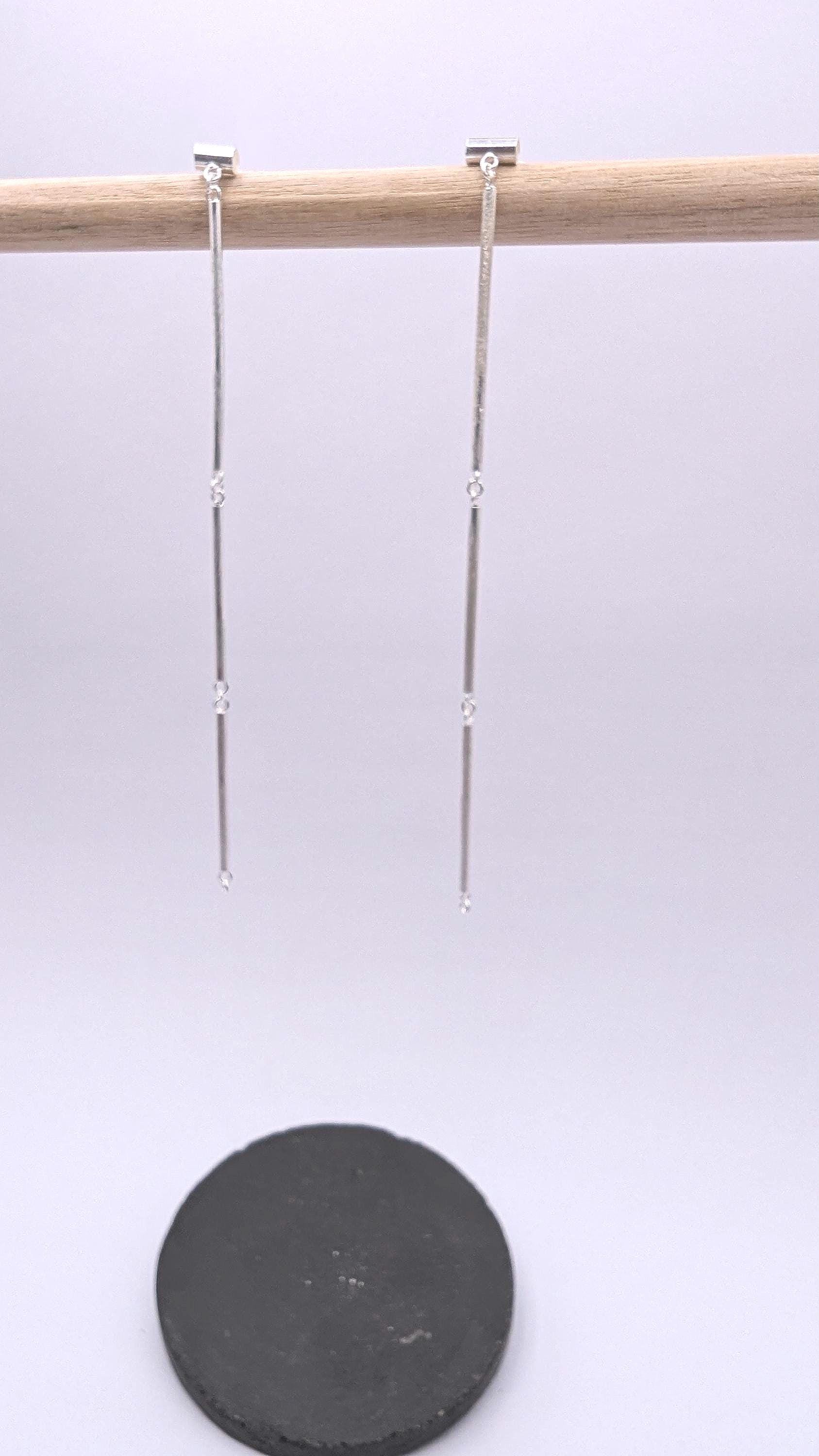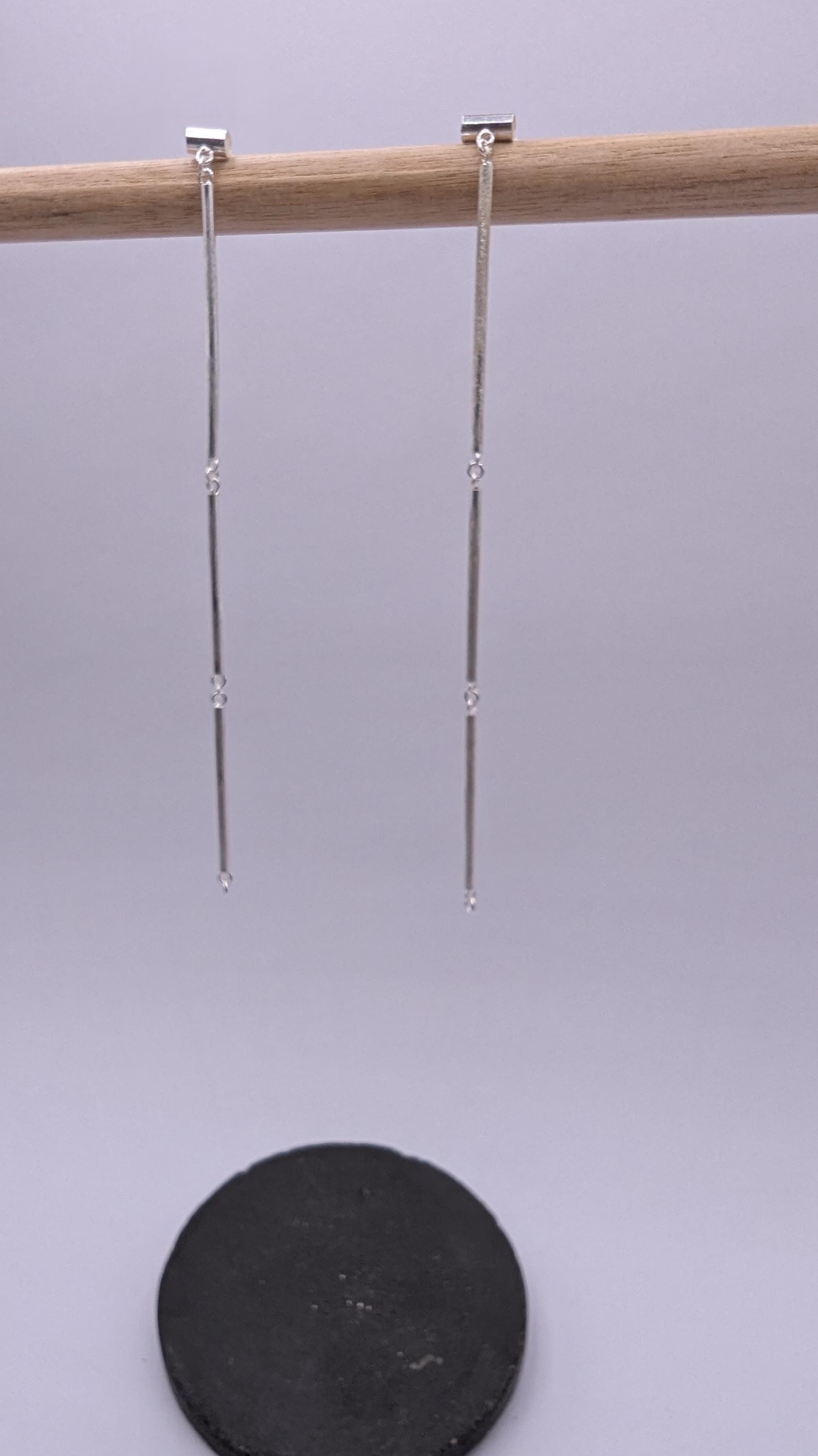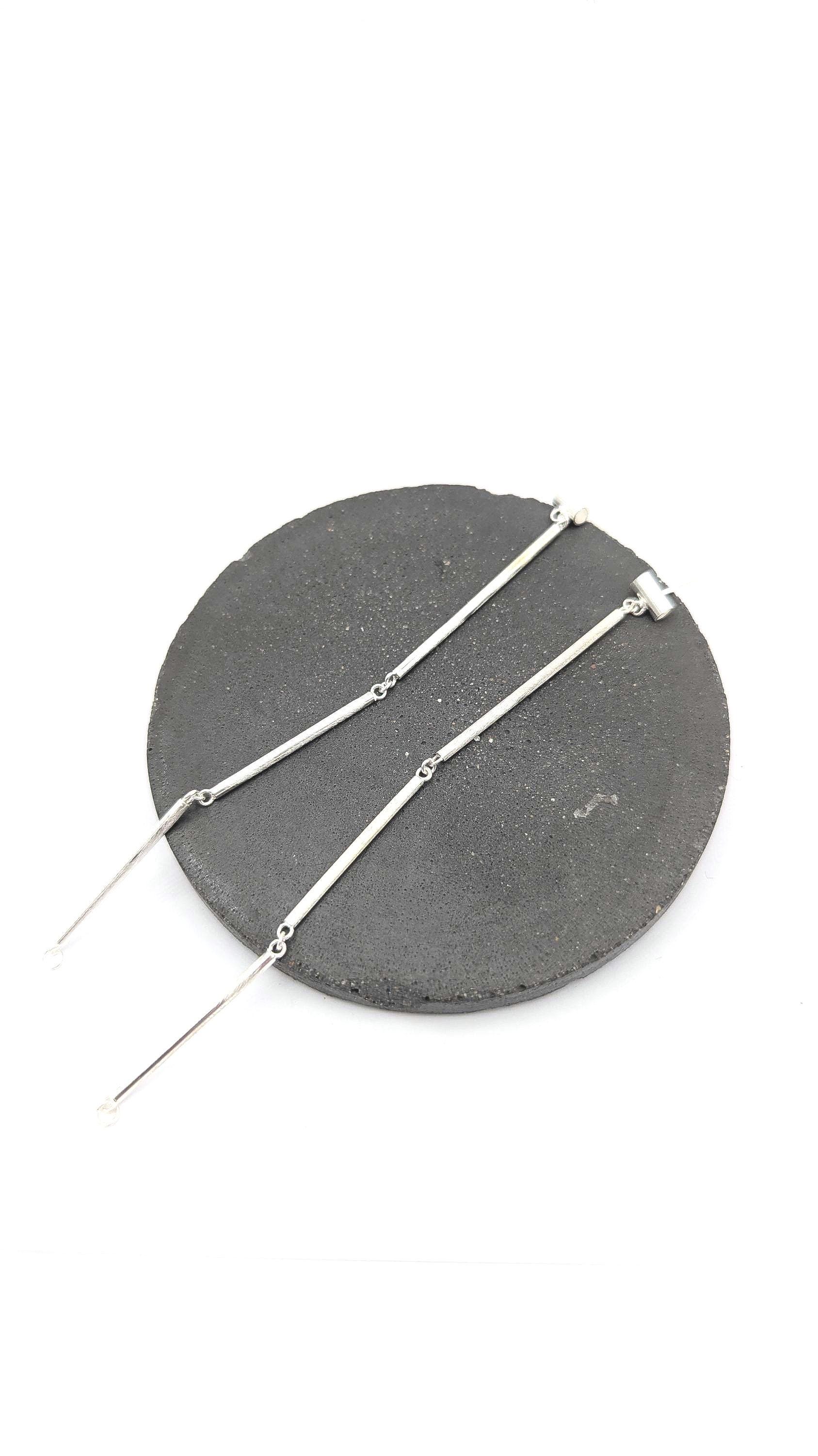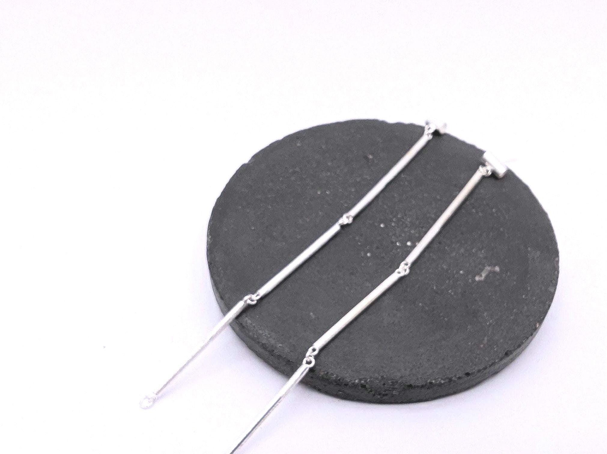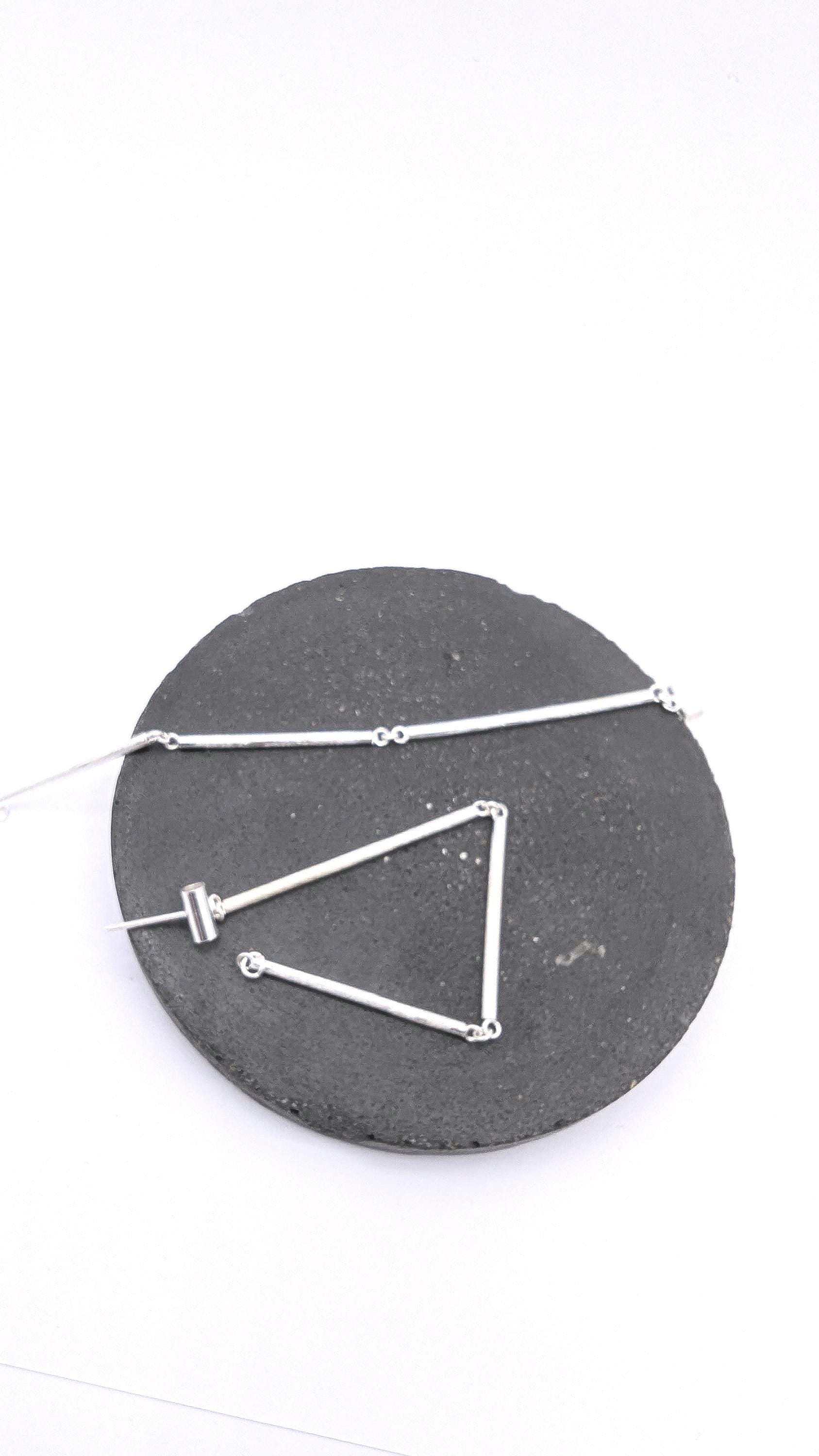 Versatile convertible geometric earrings made of 925 sterling silver with a matte finish. It can be worn as either a simple bar stud or configured into a triangle shape. Perfect present for any age and gender.