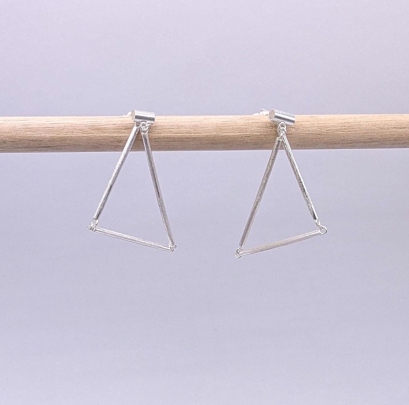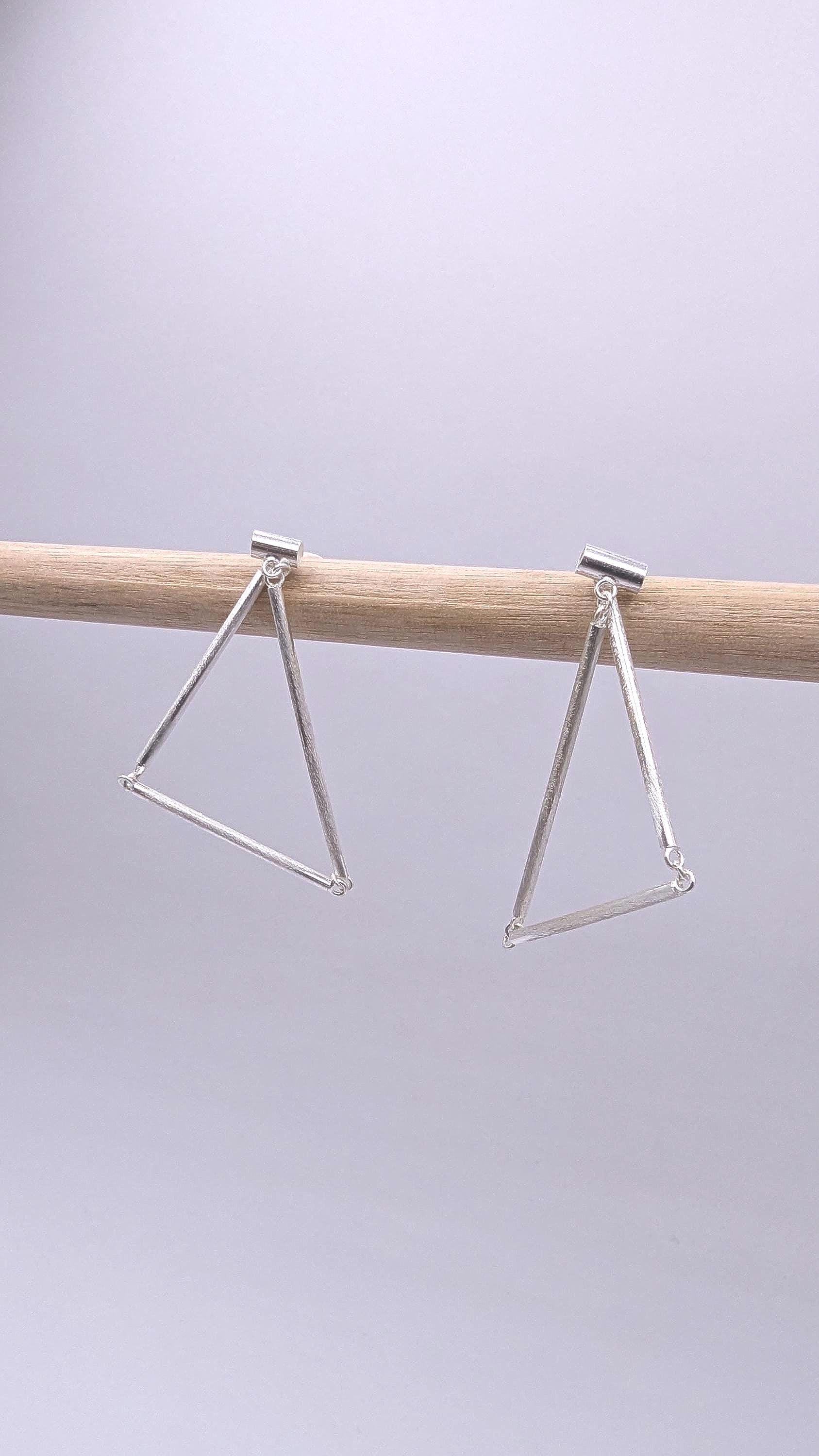 The triangle symbolises strength, balance, and harmony, while the bar represents simplicity and modern elegance. The sophisticated matte finish enhances the sculptural quality of these pieces. Each earring is carefully crafted with precision-engineered connections that allow for easy transformation between styles, giving you two distinct looks in one piece of jewellery. This versatility makes them perfect for travel or anyone who loves adaptable, multi-functional design.