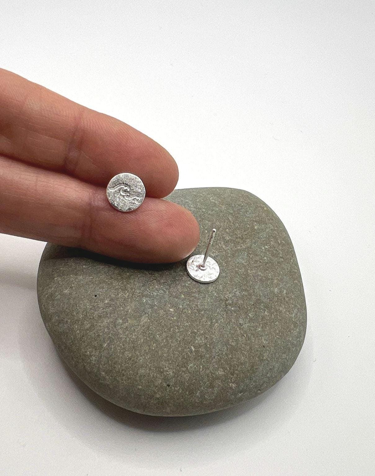 Matte 925 silver stud earrings featuring a subtle wave motif. A lightweight, minimalist design that brings a touch of the ocean wherever you go. Perfect for everyday wear, beach lovers, surfers, and anyone who loves clean, organic shapes.