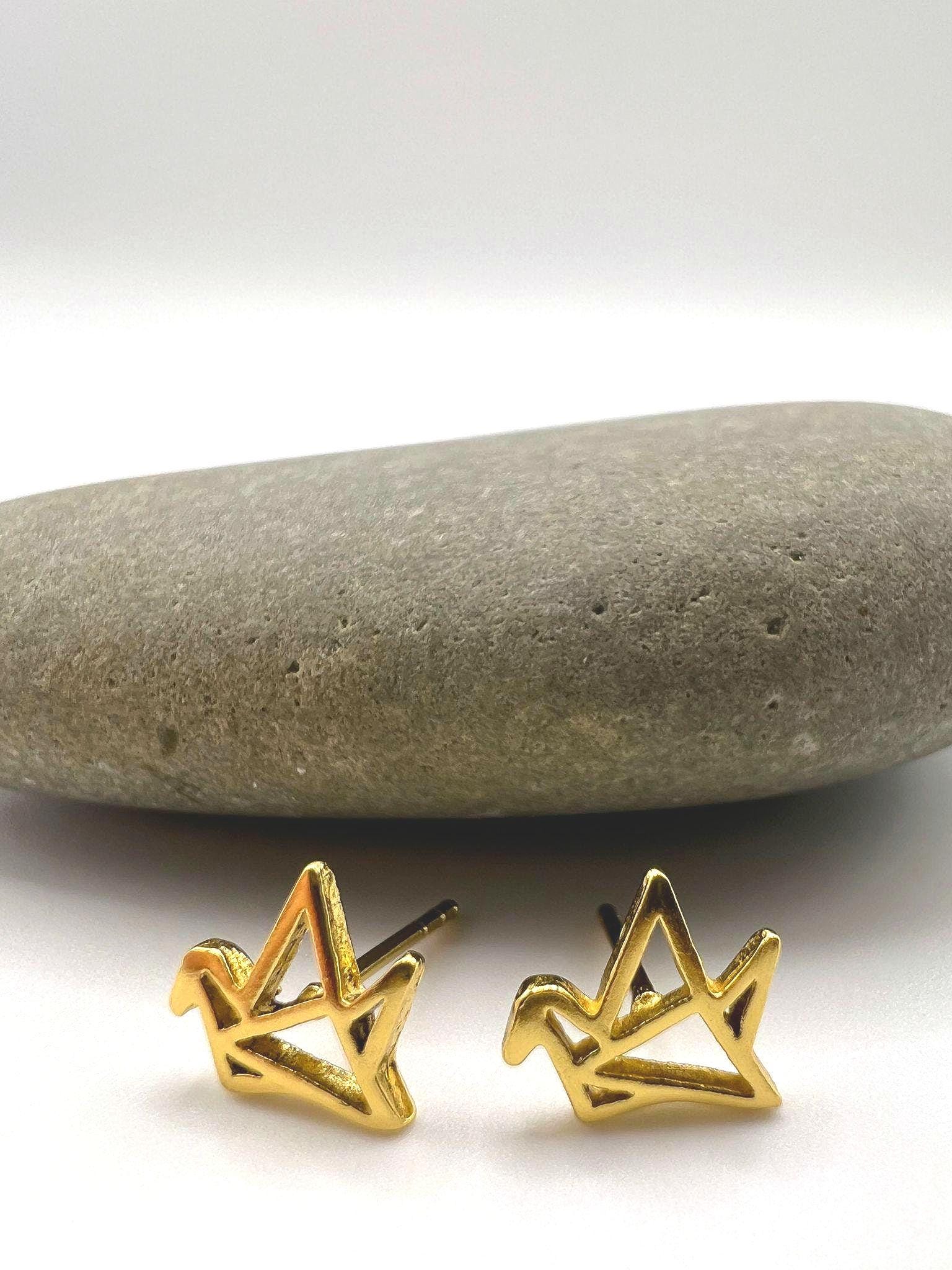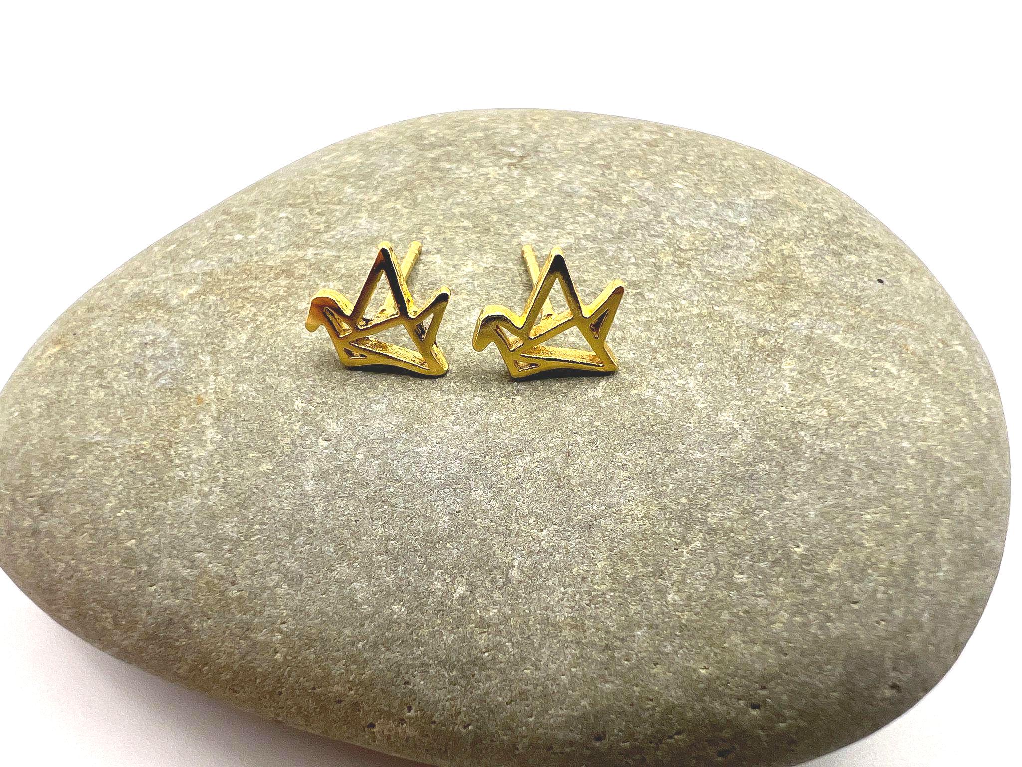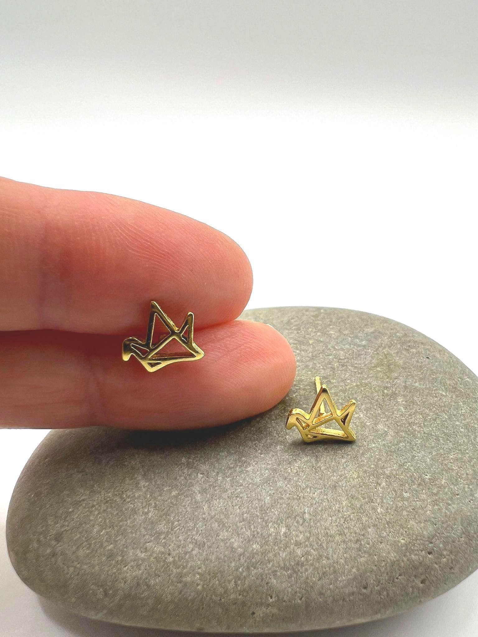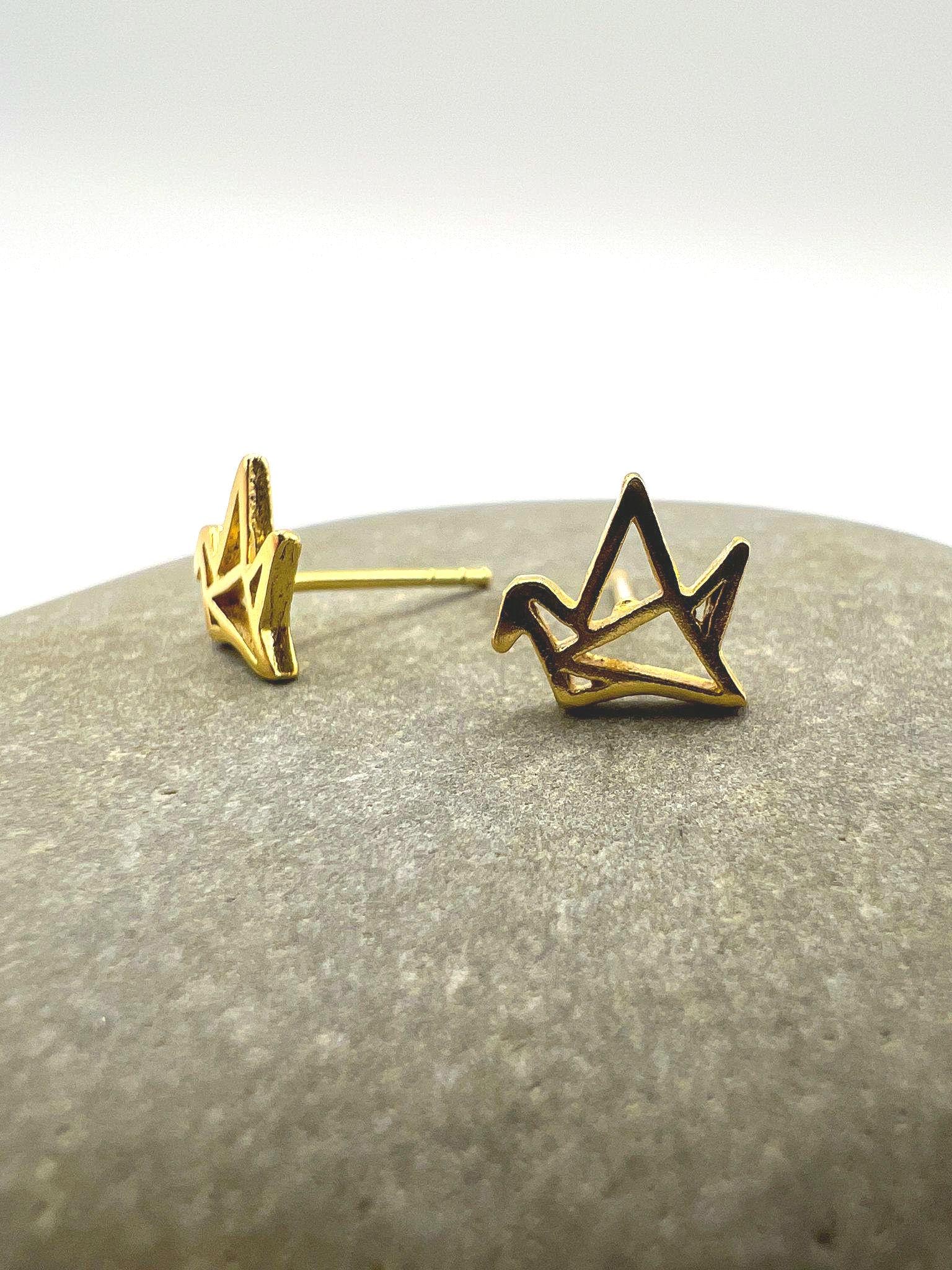 Delicate, lightweight and full of character, these small geometric origami bird studs bring a playful yet minimalist touch to your everyday style.