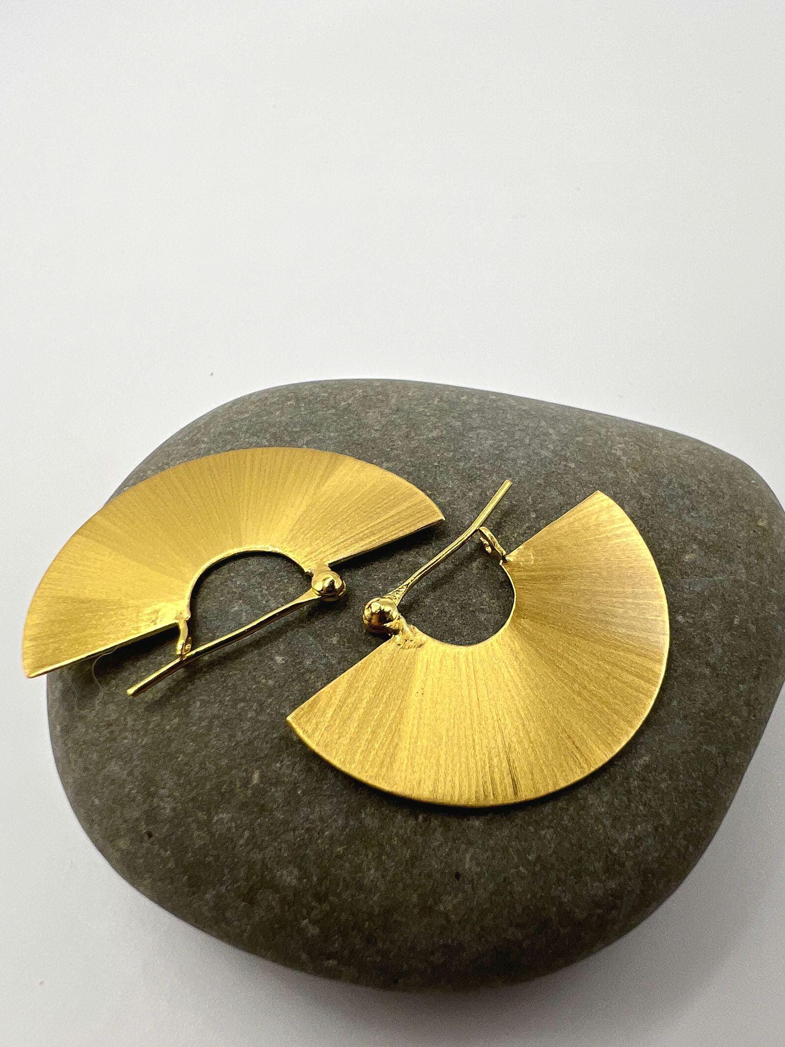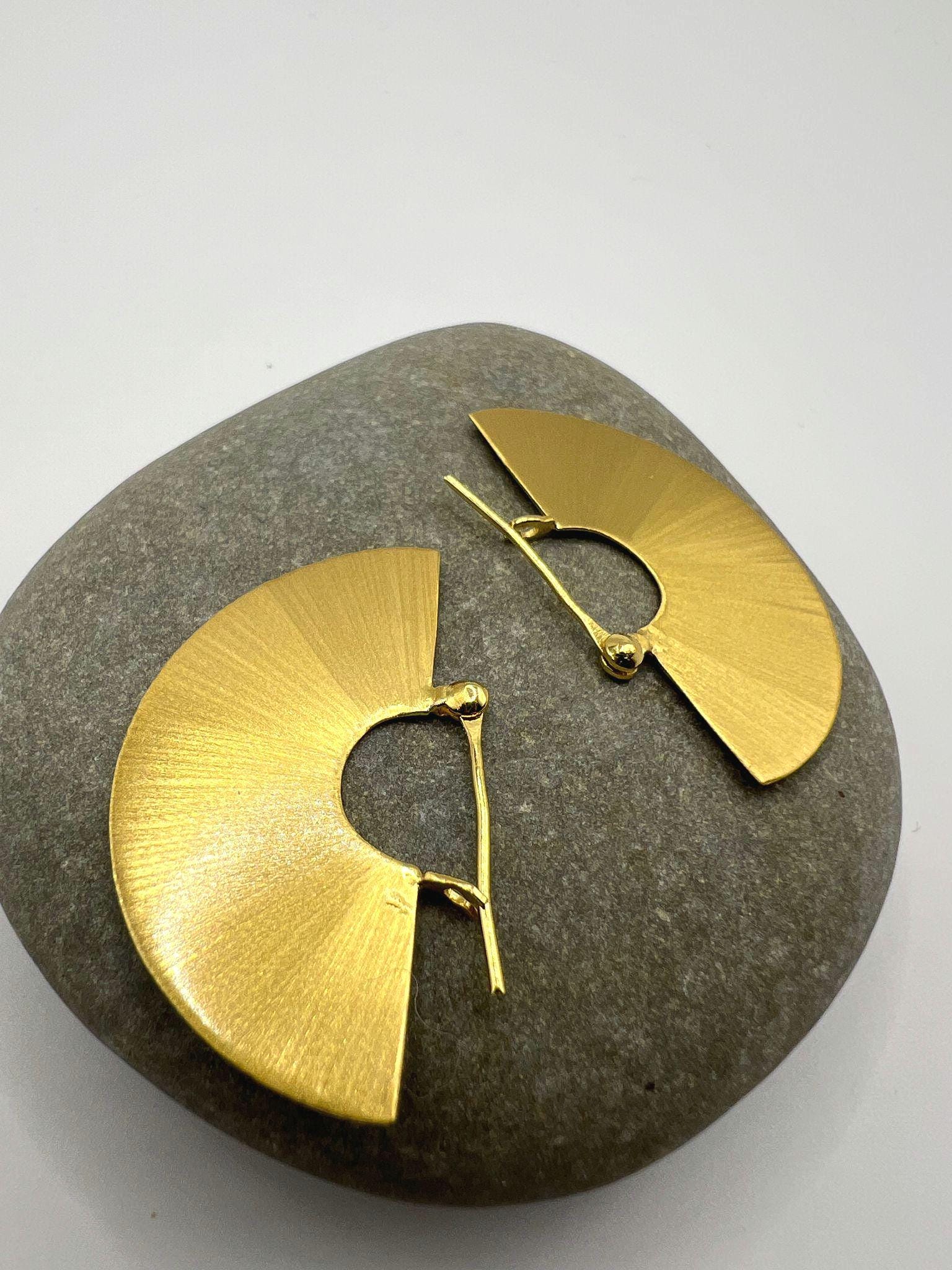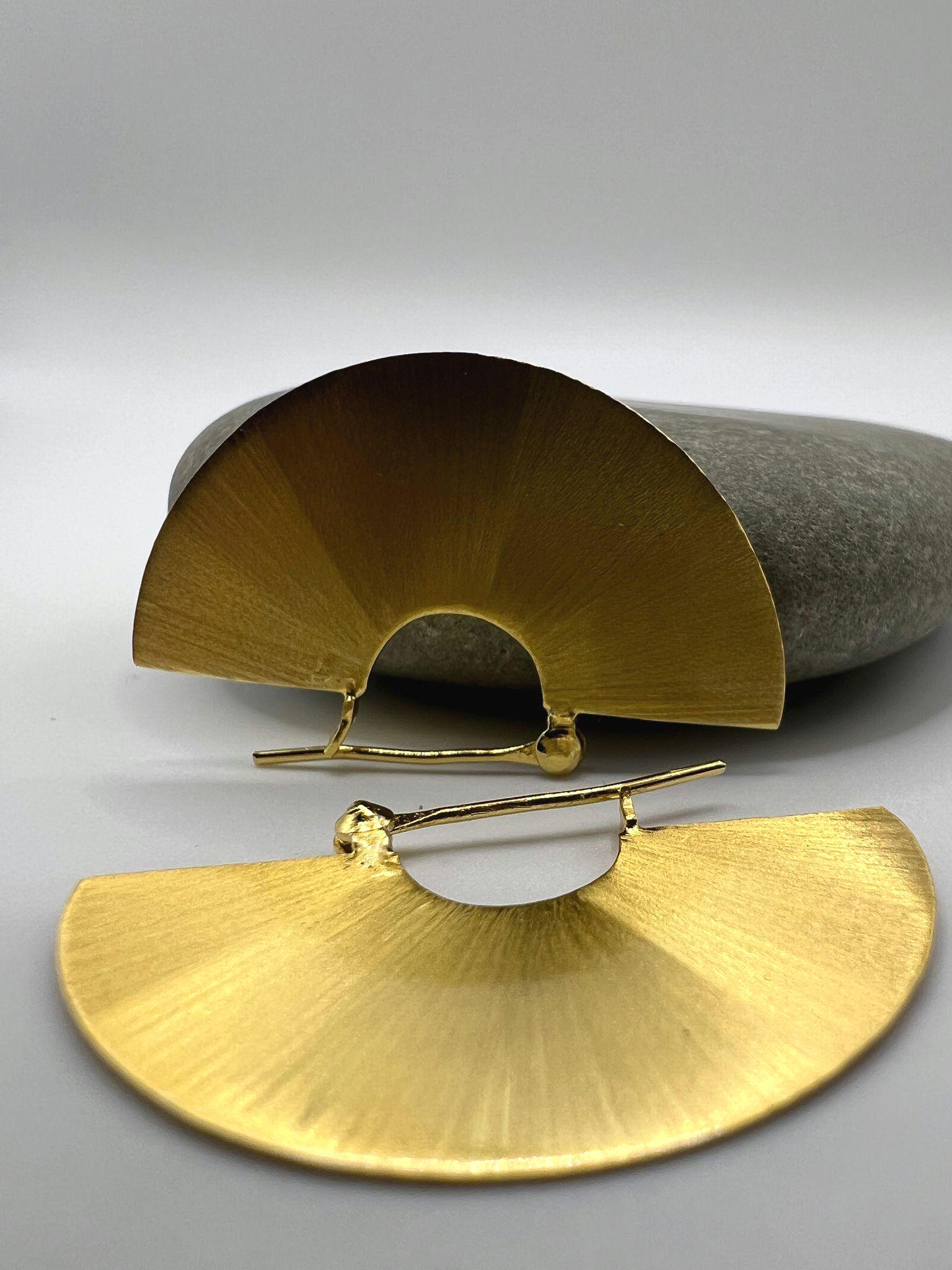 These elegant fan-shaped statement earrings are crafted in 18k gold-plated 925 silver with a beautiful matte finish.