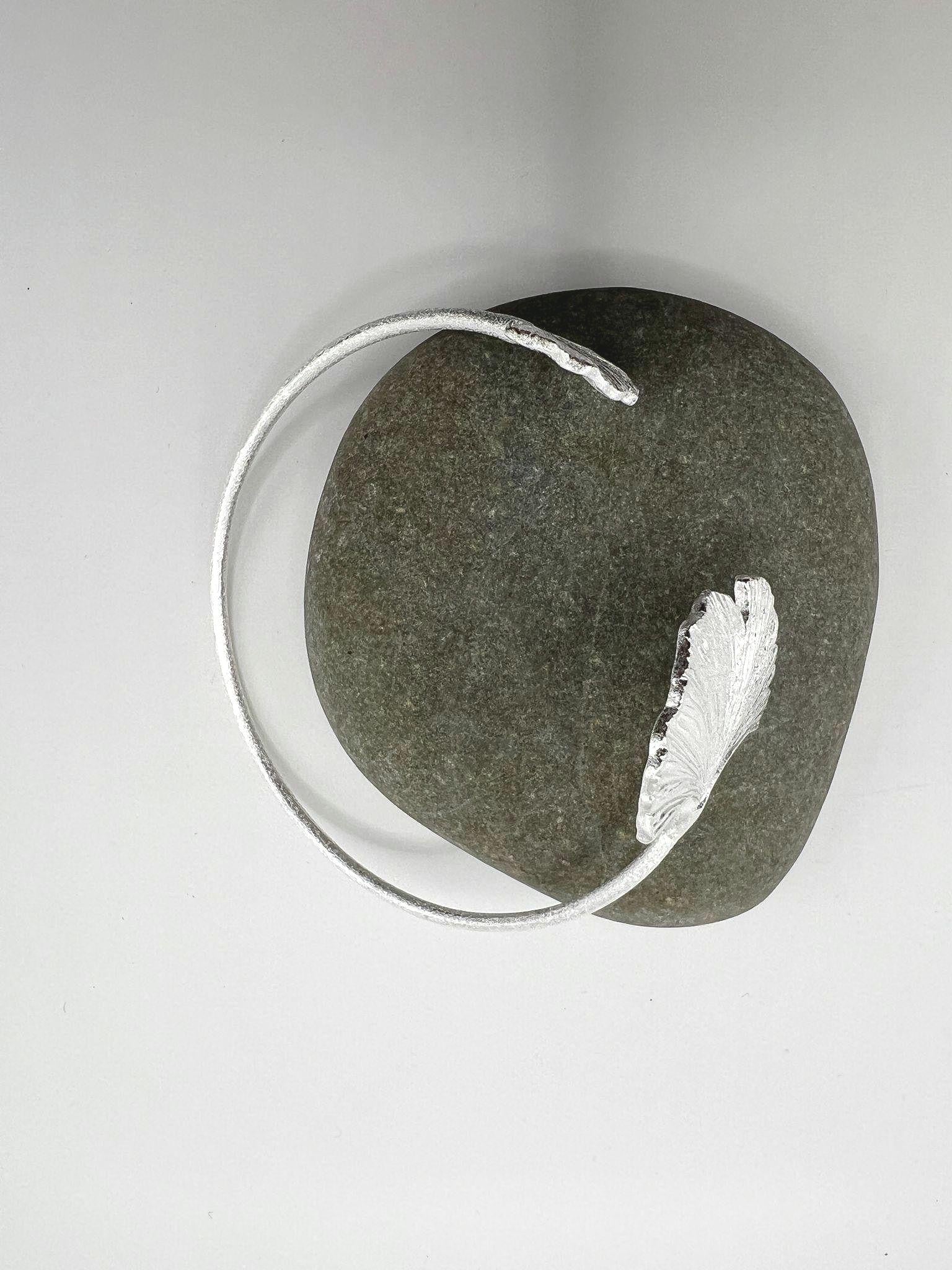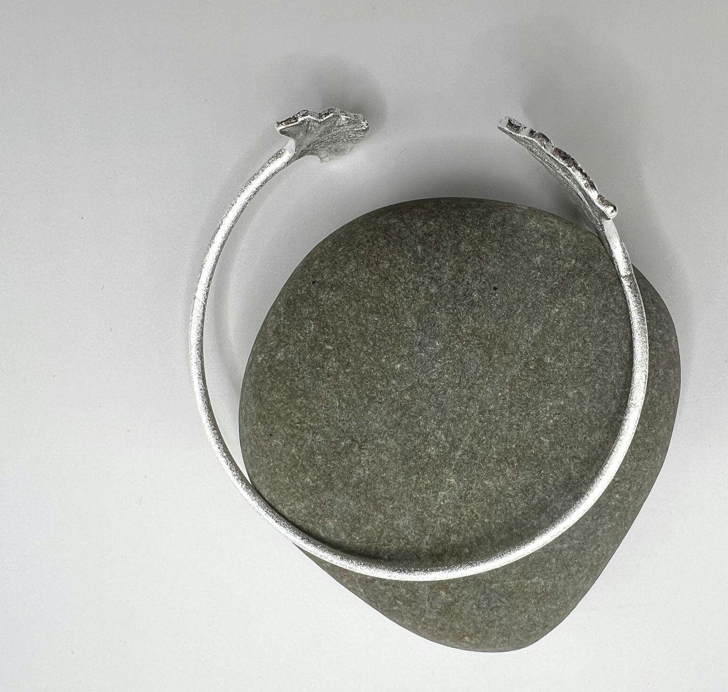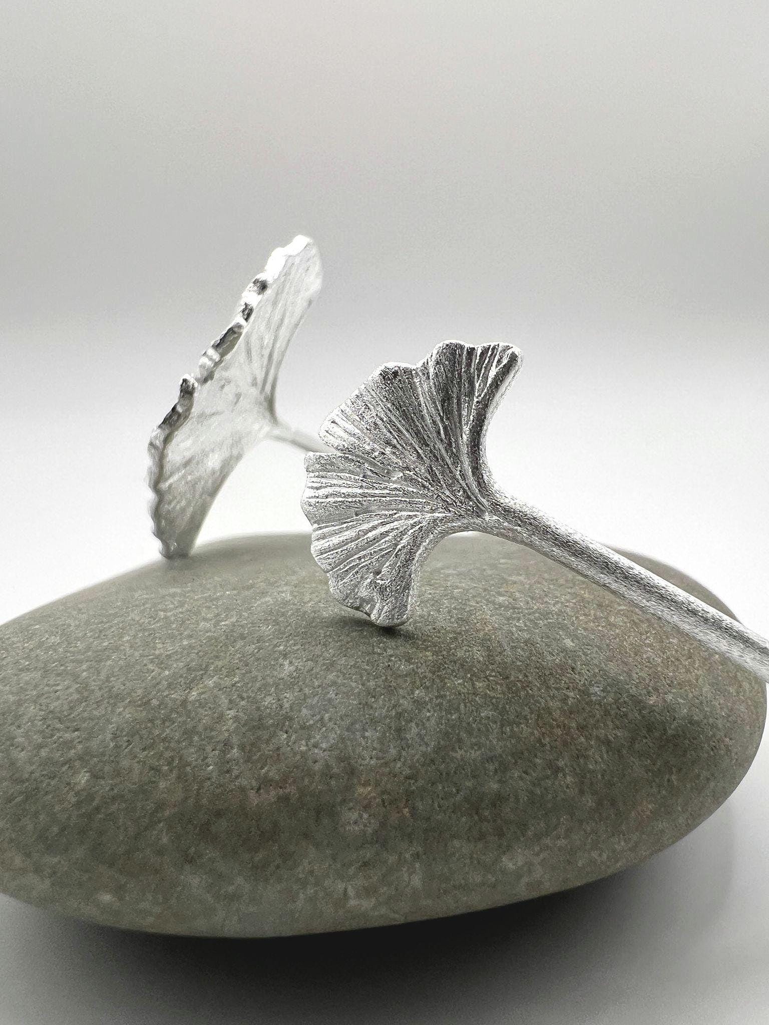 A beautifully crafted open cuff inspired by the iconic ginkgo leaf, symbol of long life, resilience, and natural harmony. Hand-cast in solid 925 silver with a soft matte texture, this statement bracelet balances organic elegance with minimalist design.