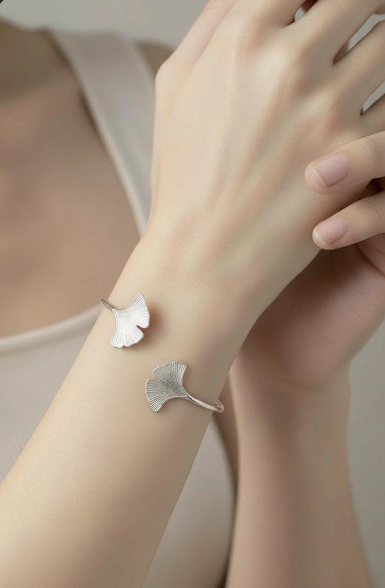 Ginkgo Leaf Bracelet in 925 Sterling Silver – Matte Finish