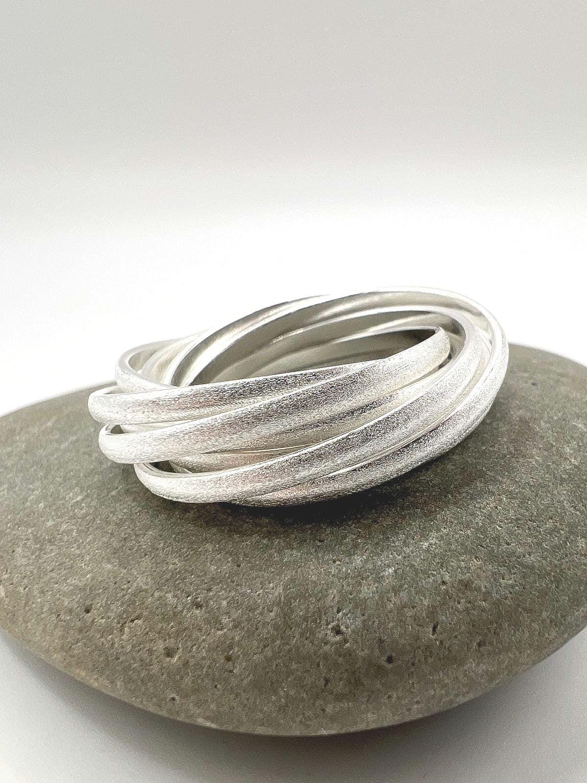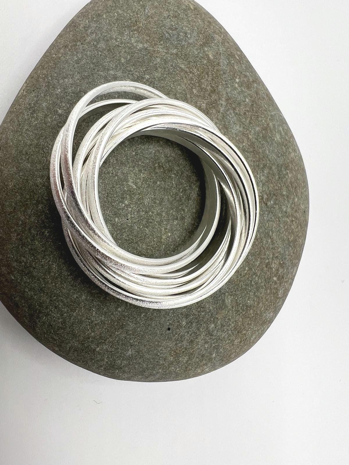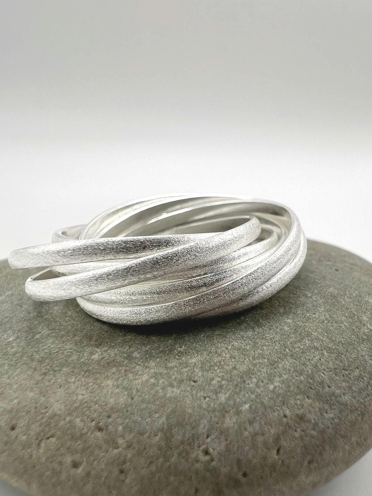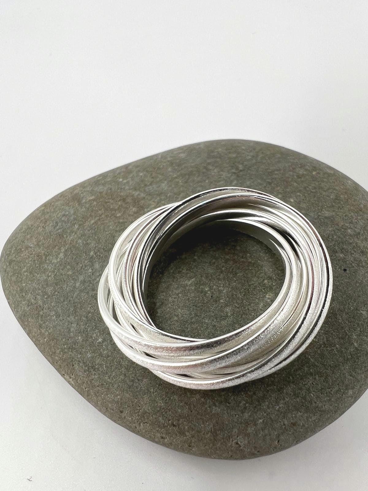 A beautifully handcrafted 9-band rolling ring in solid 925 sterling silver with a soft matte finish.