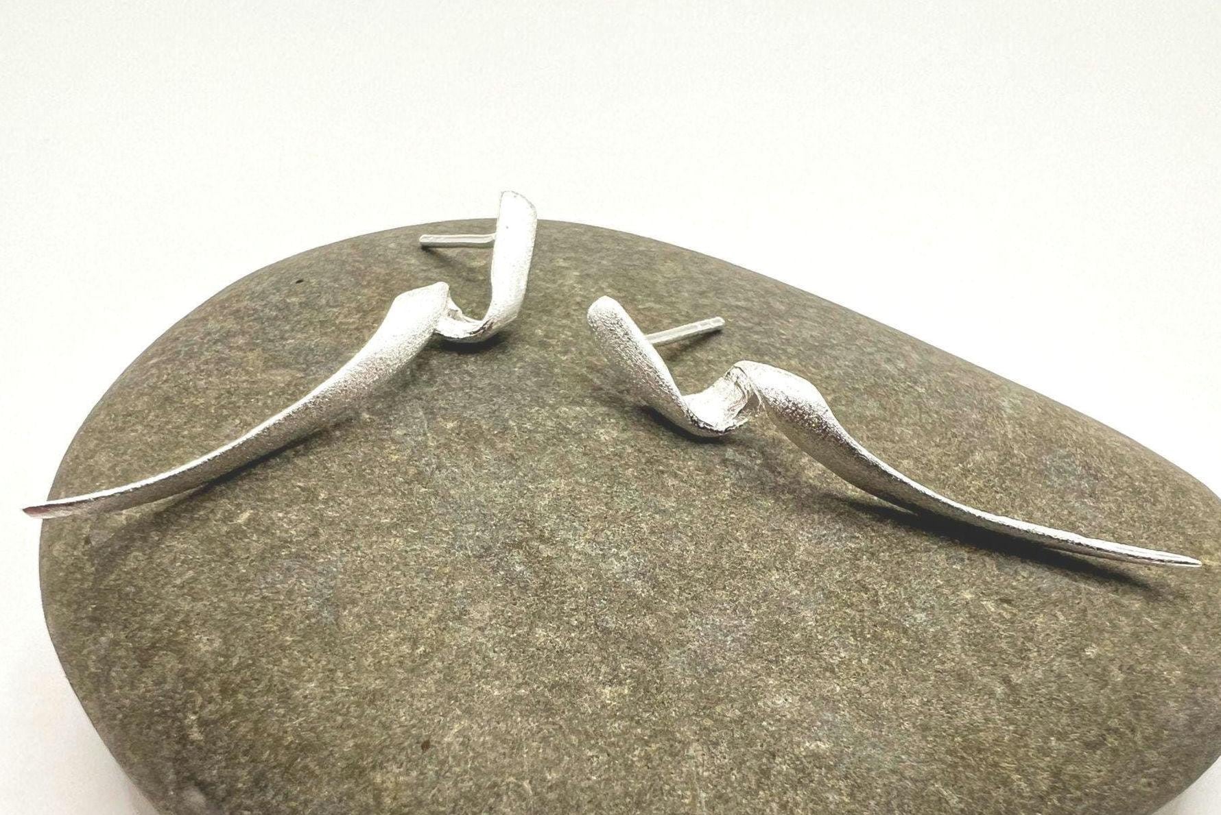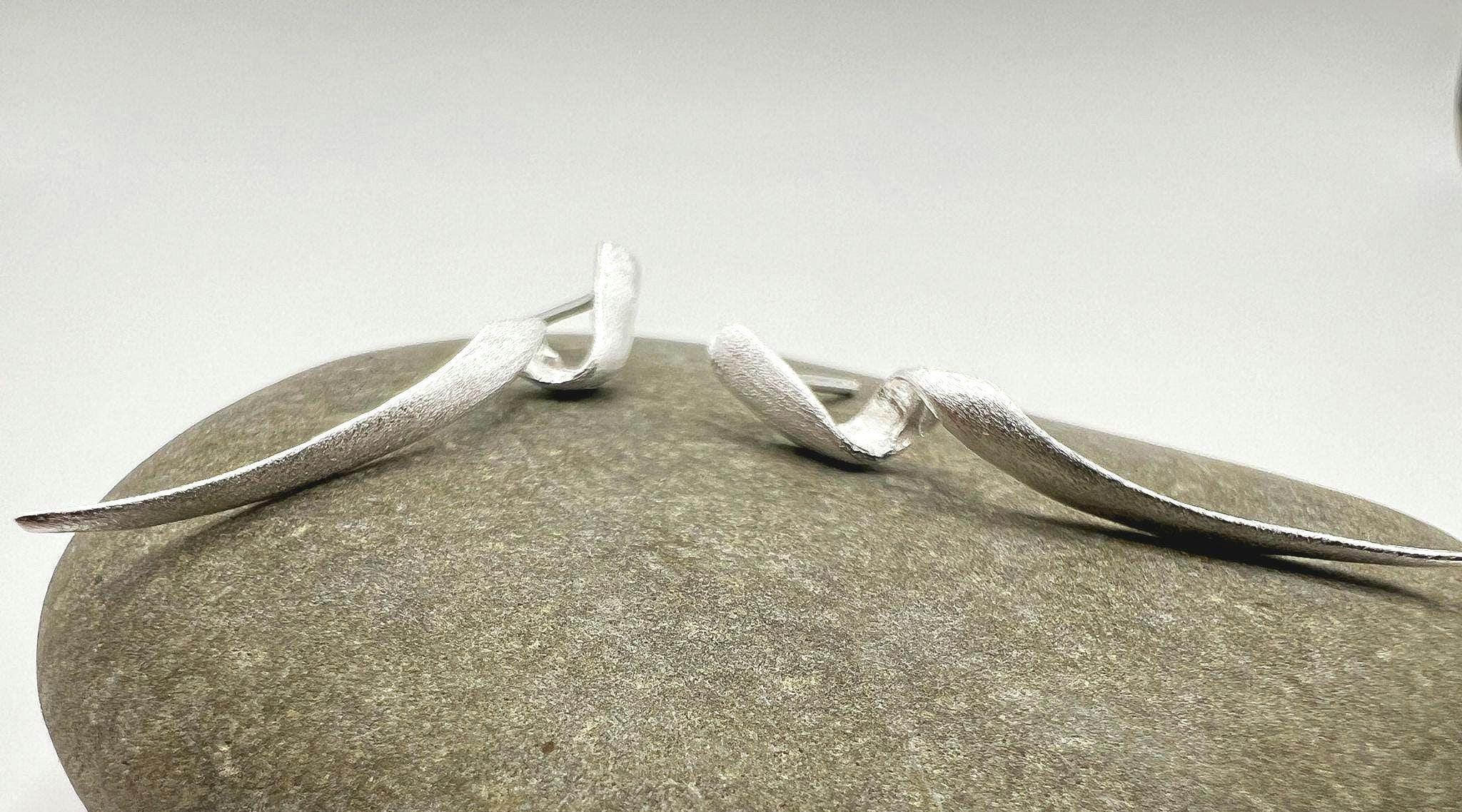 These modern long twist earrings are handcrafted from 925 sterling silver and finished with a beautiful matte texture. Their sculptural, elongated spiral form creates an elegant “ear climber” look—lightweight, artistic and perfect for everyday wear or a refined minimalist statement.