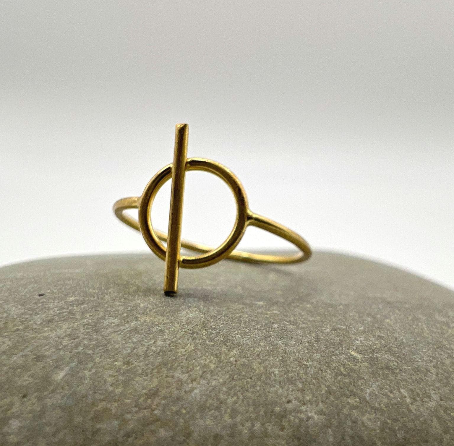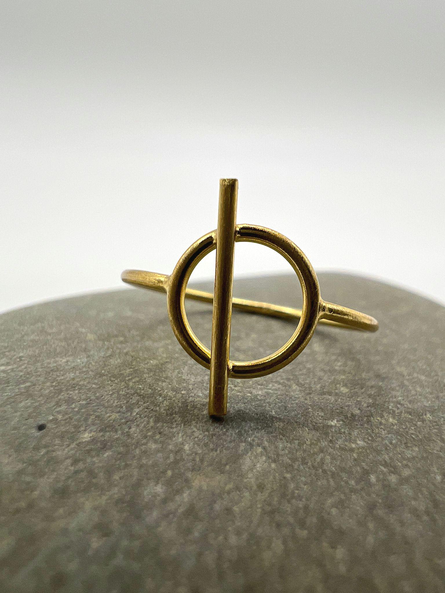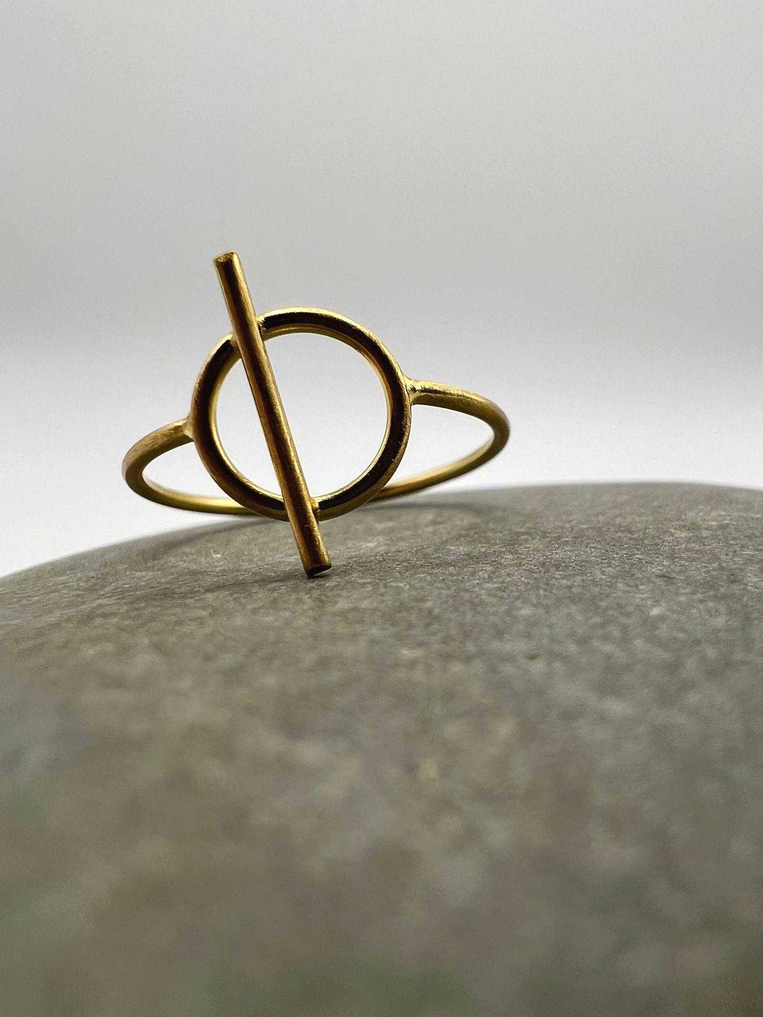 Minimalist Circle + Bar Ring — 18K Gold Plated 925 Silver (Matte Finish)