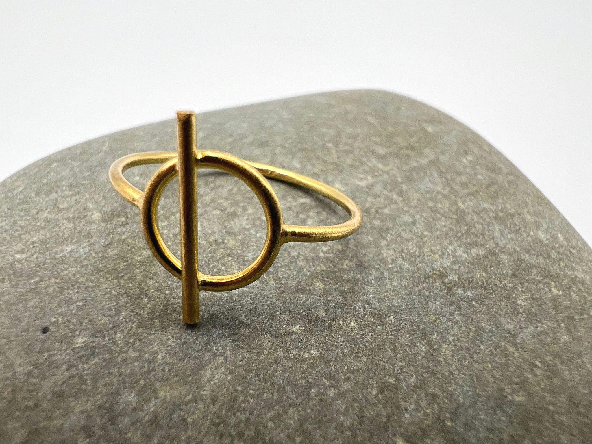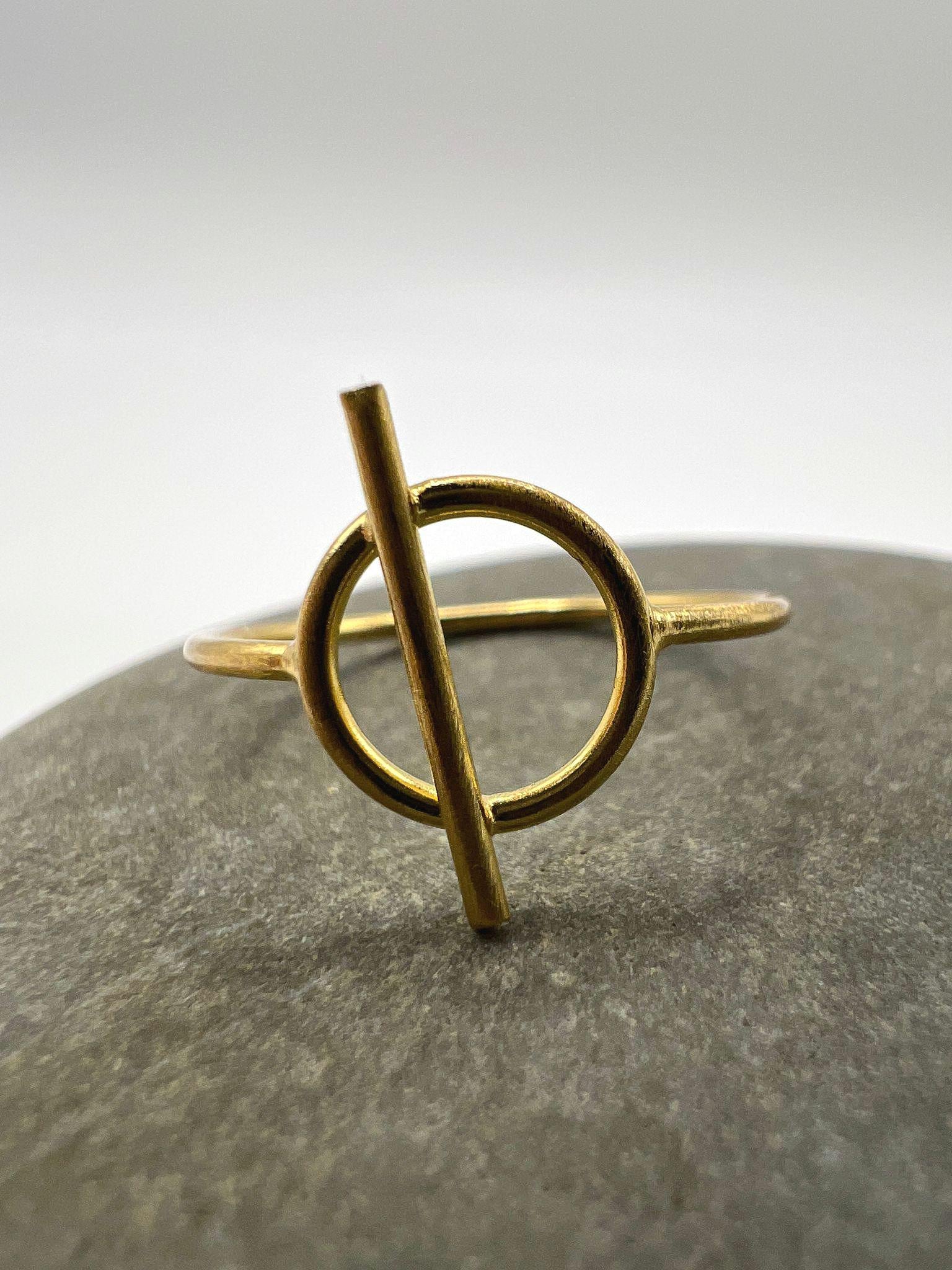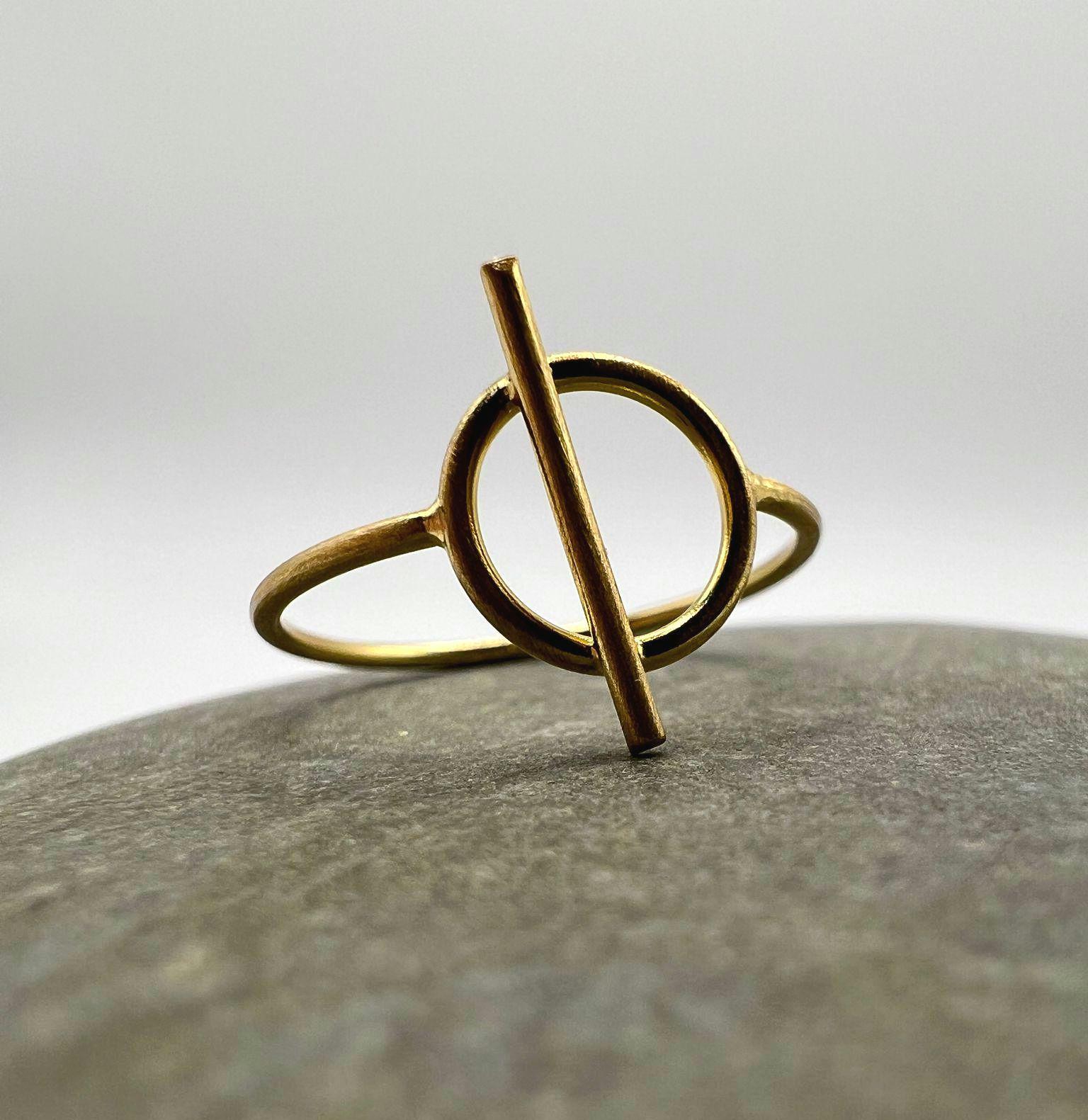 Minimalist Circle + Bar Ring — 18K Gold Plated 925 Silver (Matte Finish)