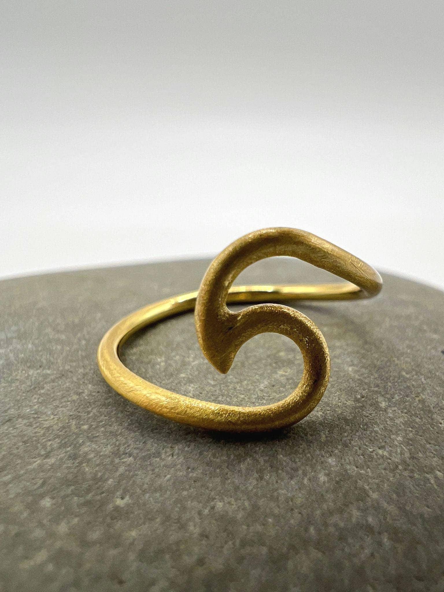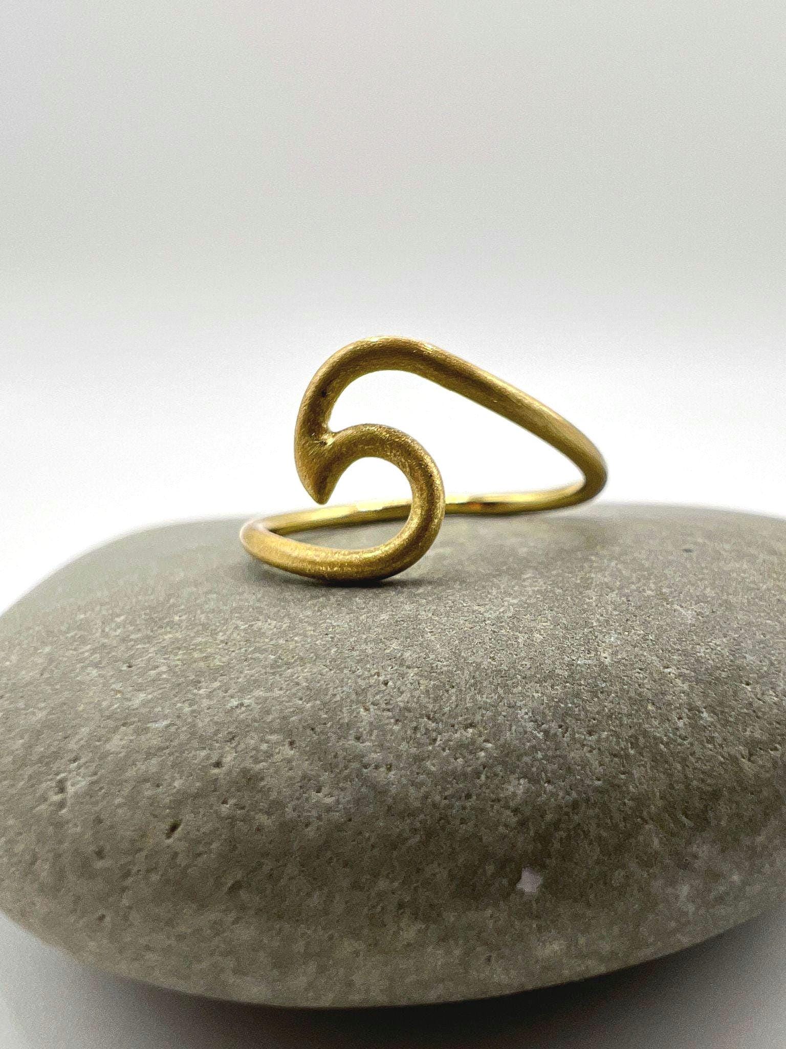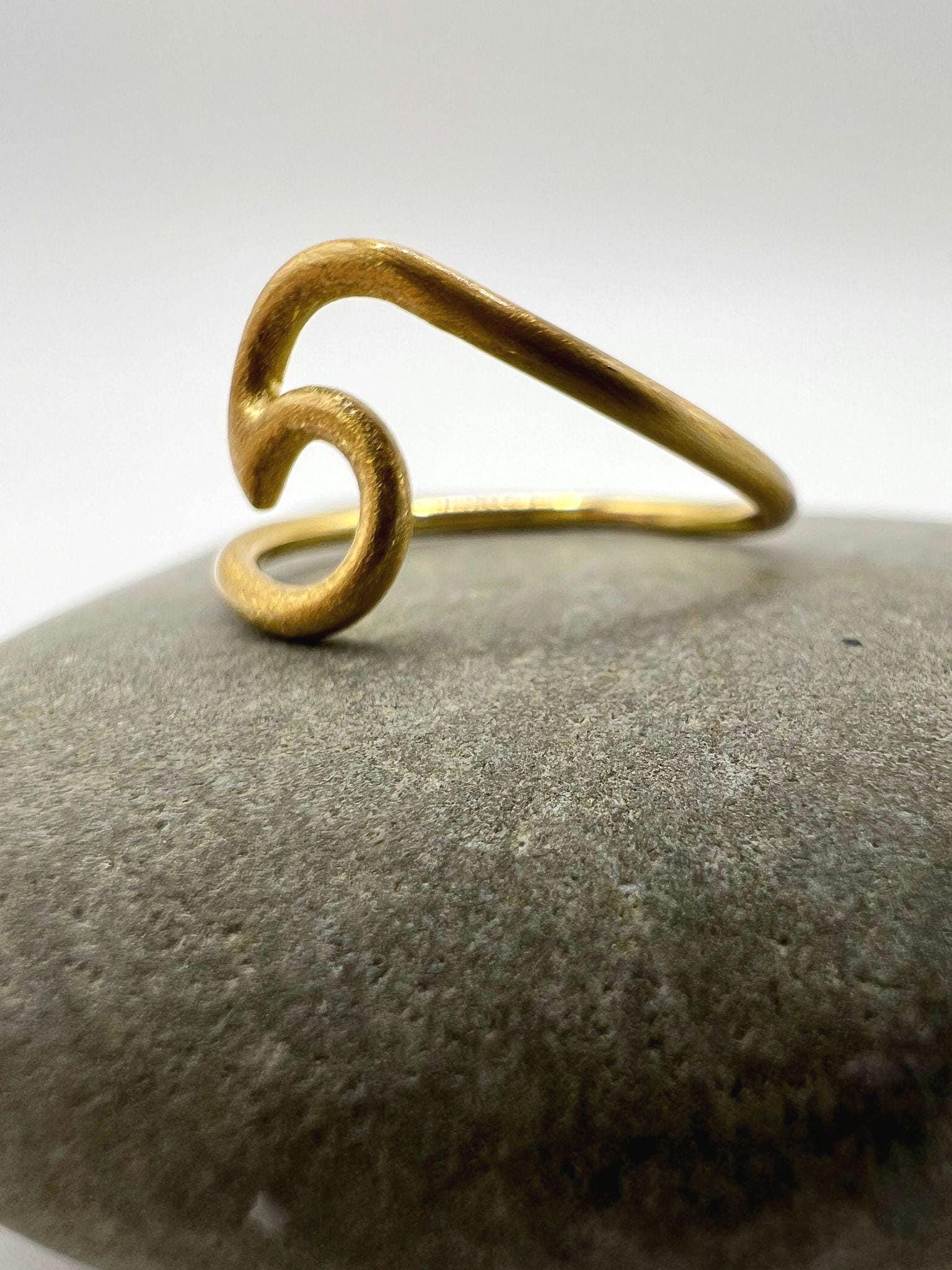 A beautifully simple wave-inspired ring, crafted in solid 925 silver and finished with a warm, matte 18k gold plating. Its fluid, organic curve makes it perfect for ocean lovers, travellers, surfers and anyone who connects deeply with water symbolism.