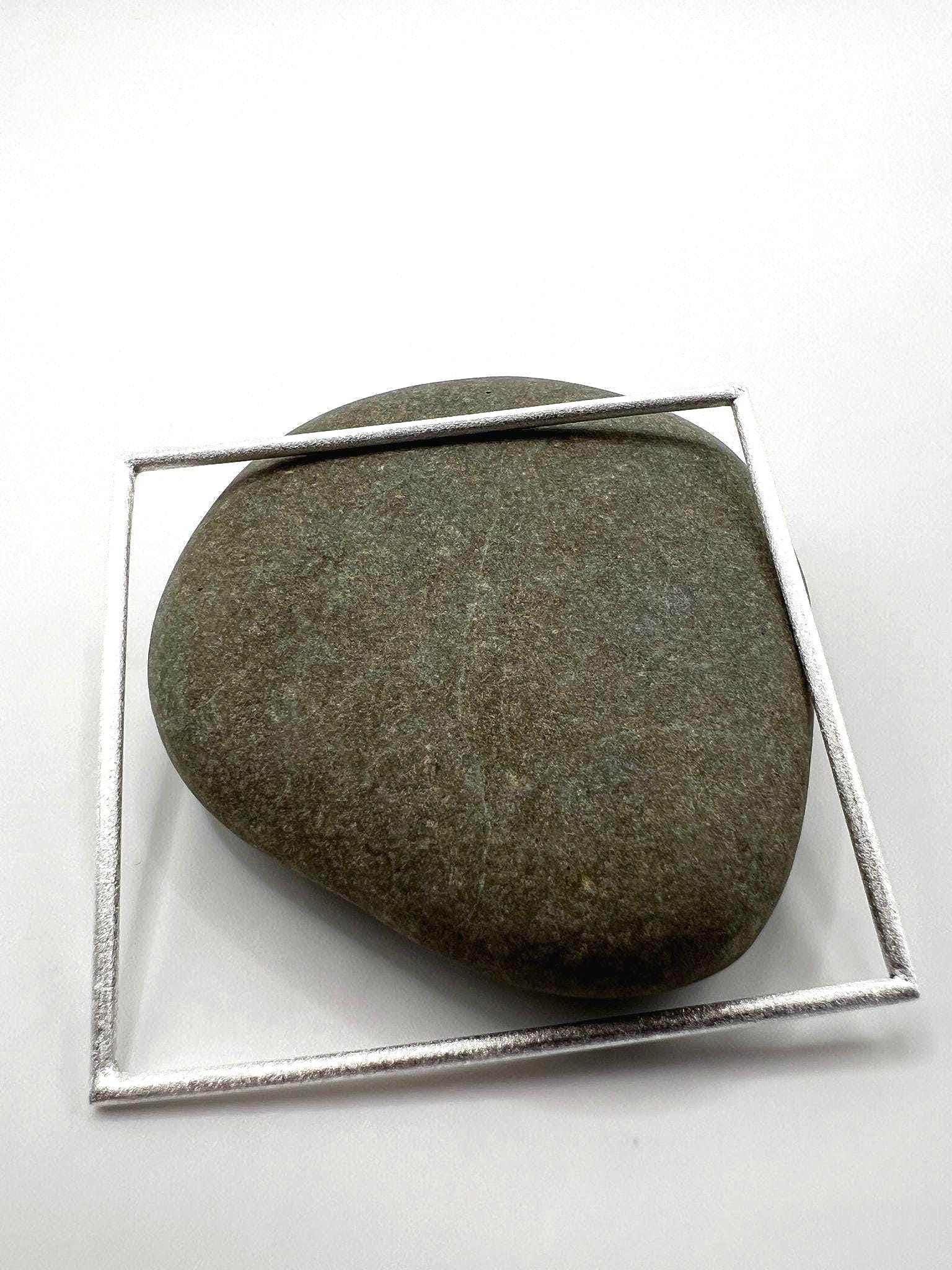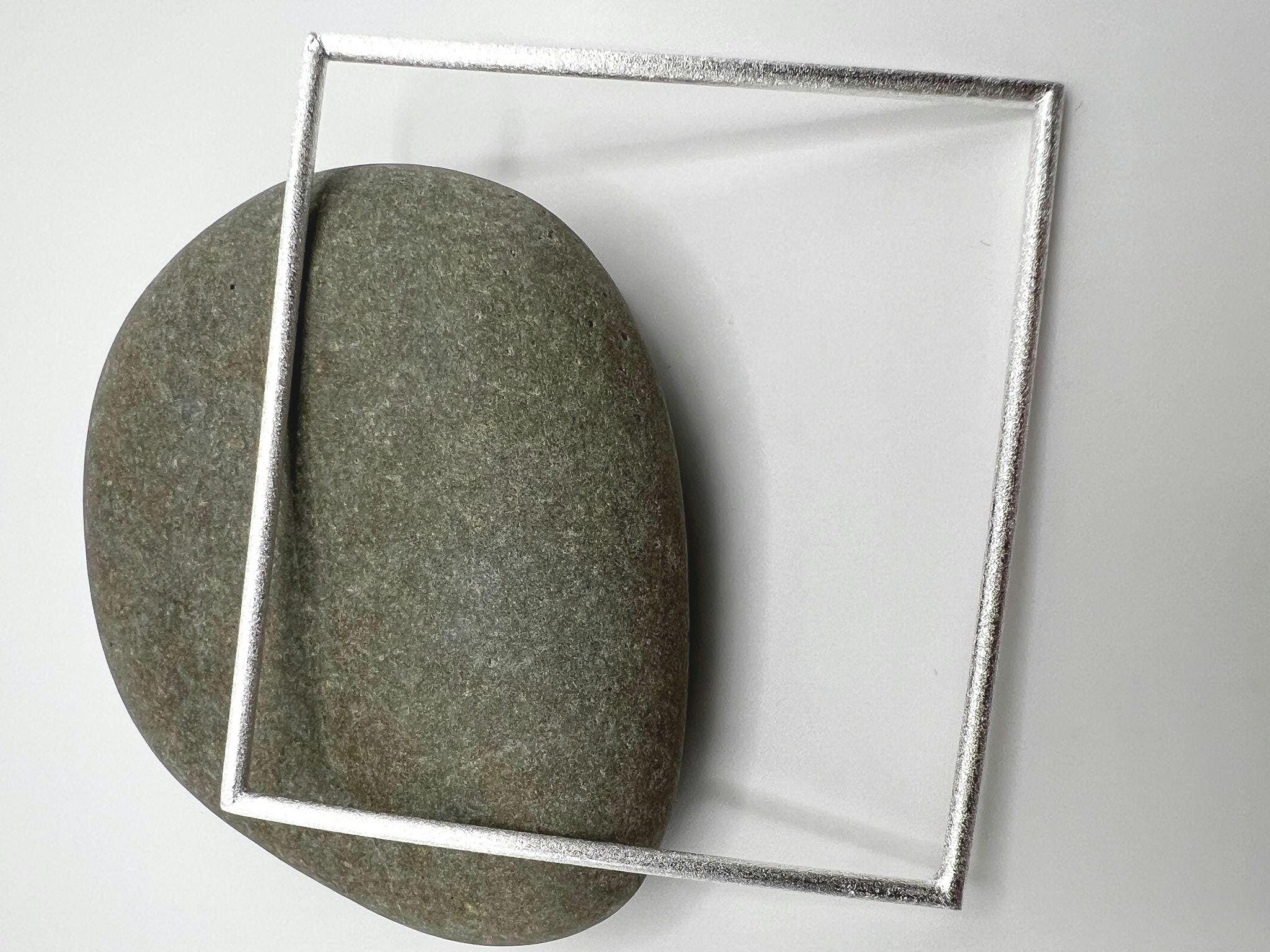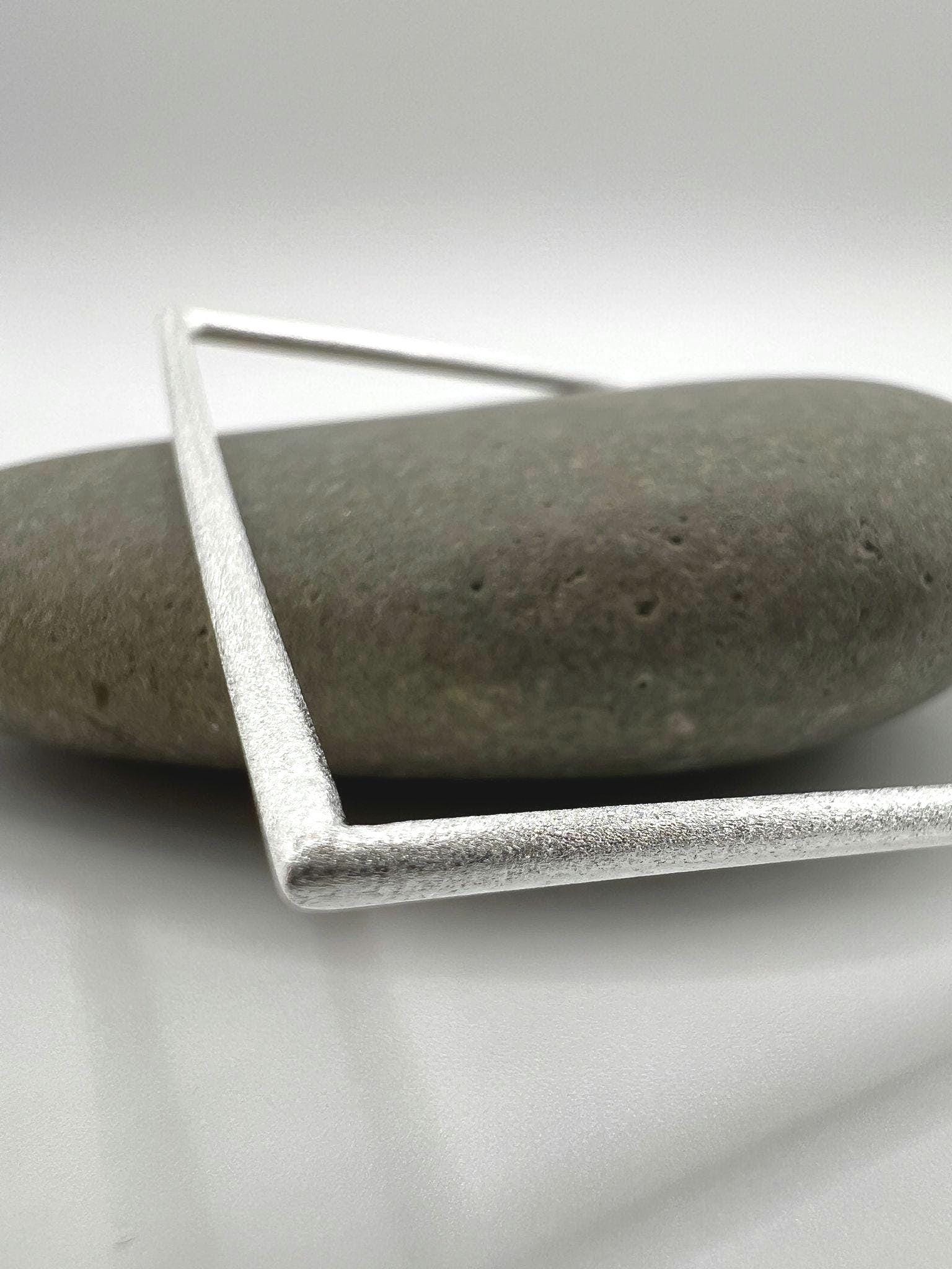 silver square bangle, geometric silver bracelet, matte silver bangle, solid silver cuff, modern minimalist jewelry