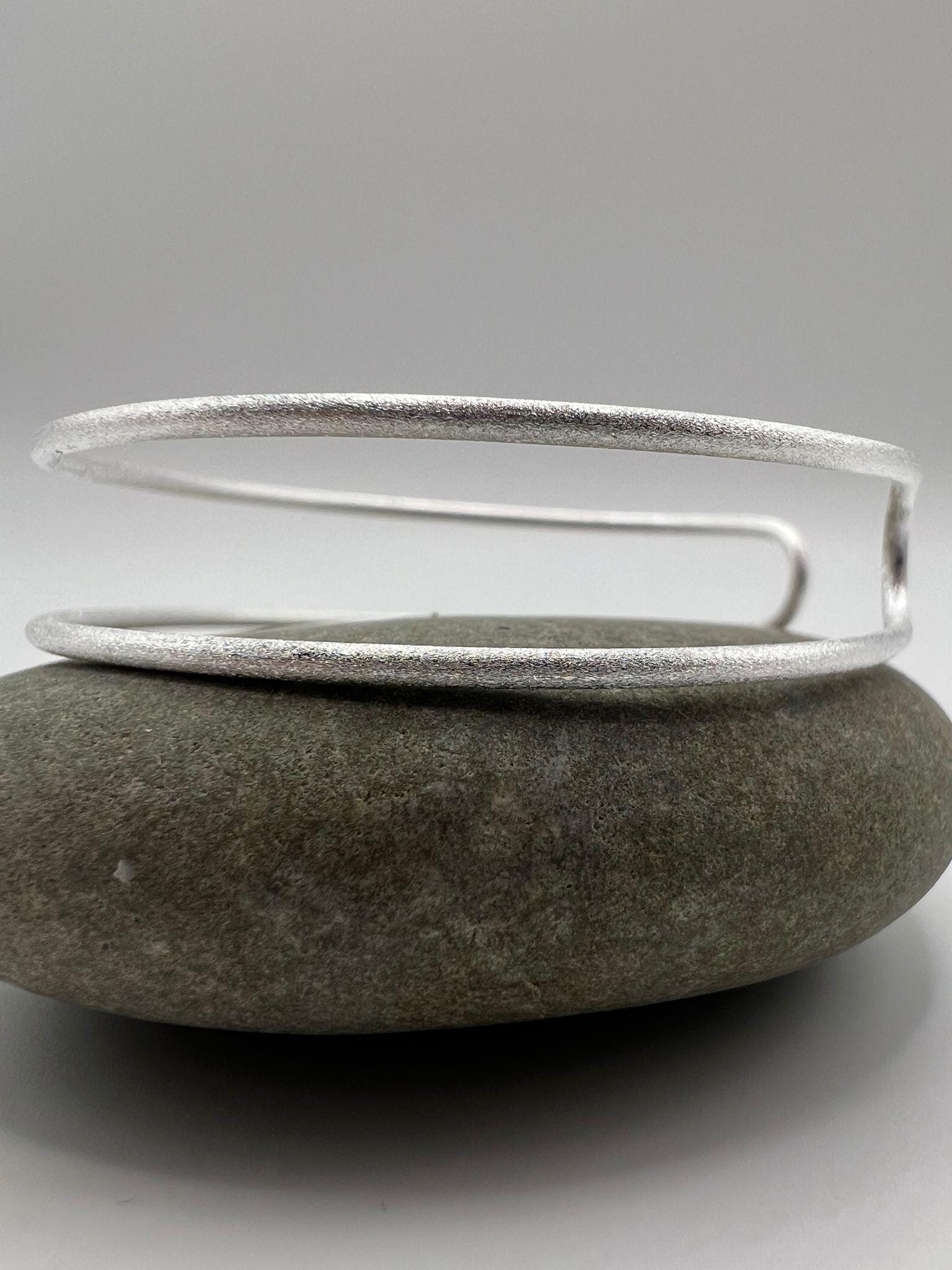 A sleek and modern cuff bracelet handmade from solid 925 silver with a refined matte texture. Designed as a lightweight, minimalist accessory, this double-band shape works perfectly as an unisex everyday piece — elegant, understated, and comfortable to wear.
