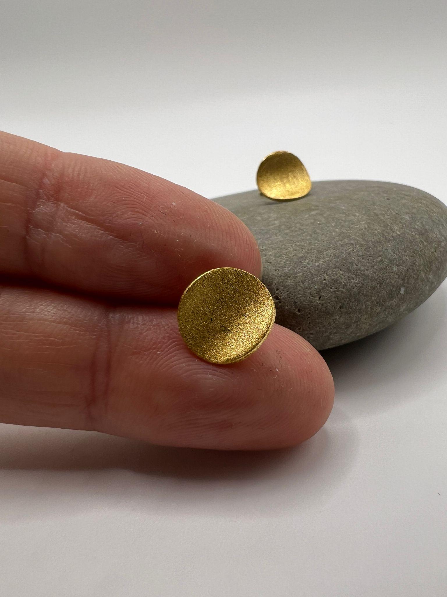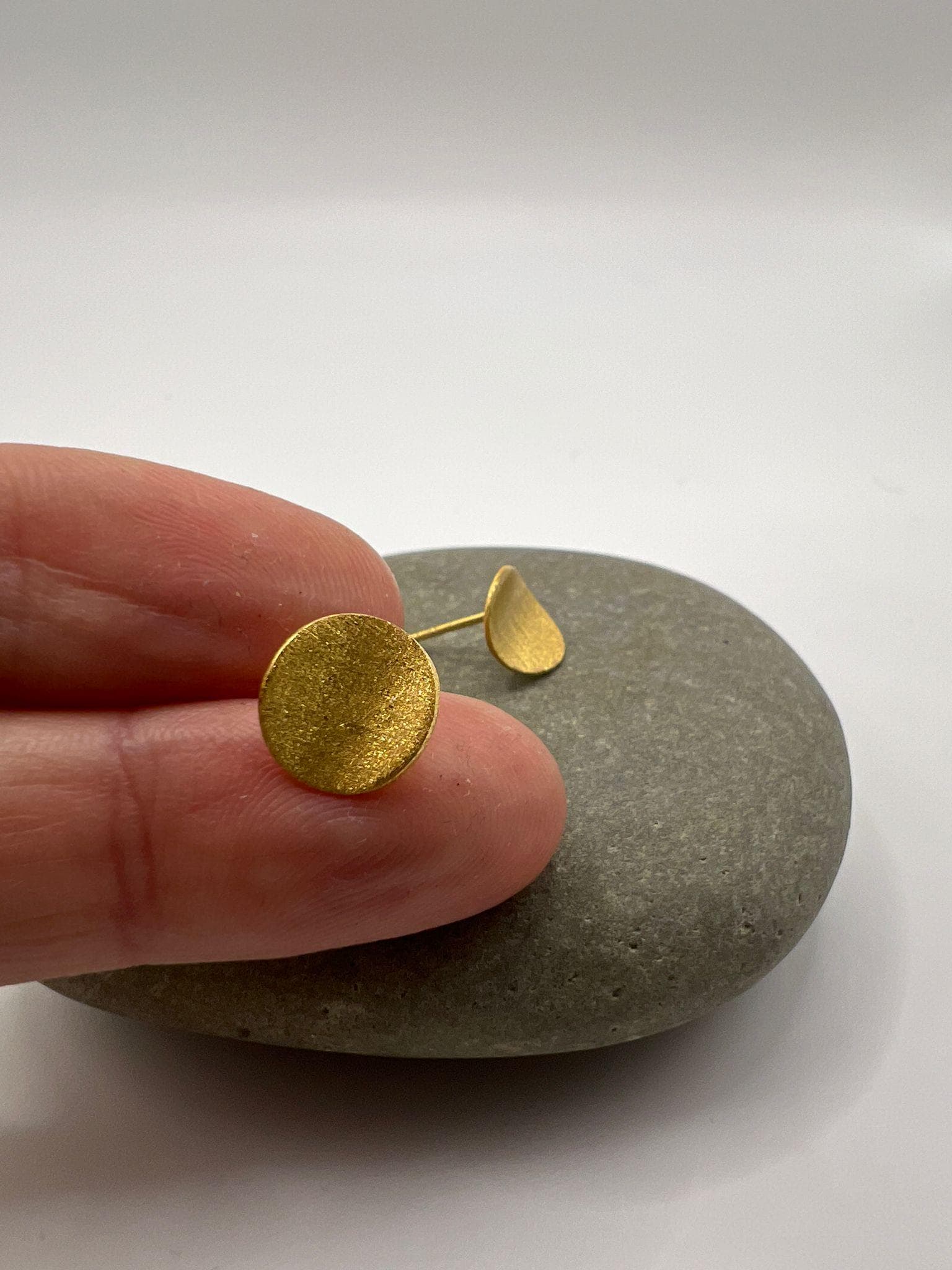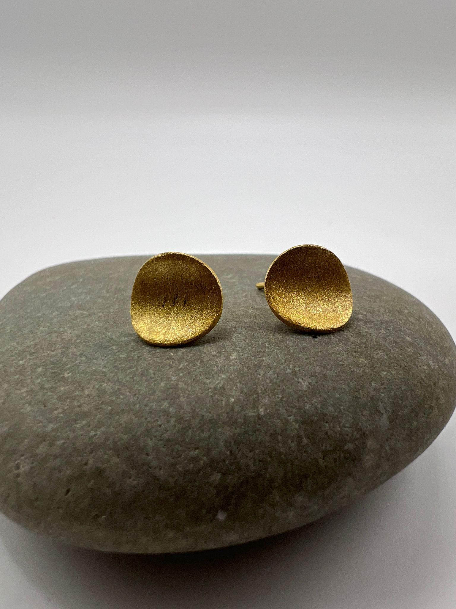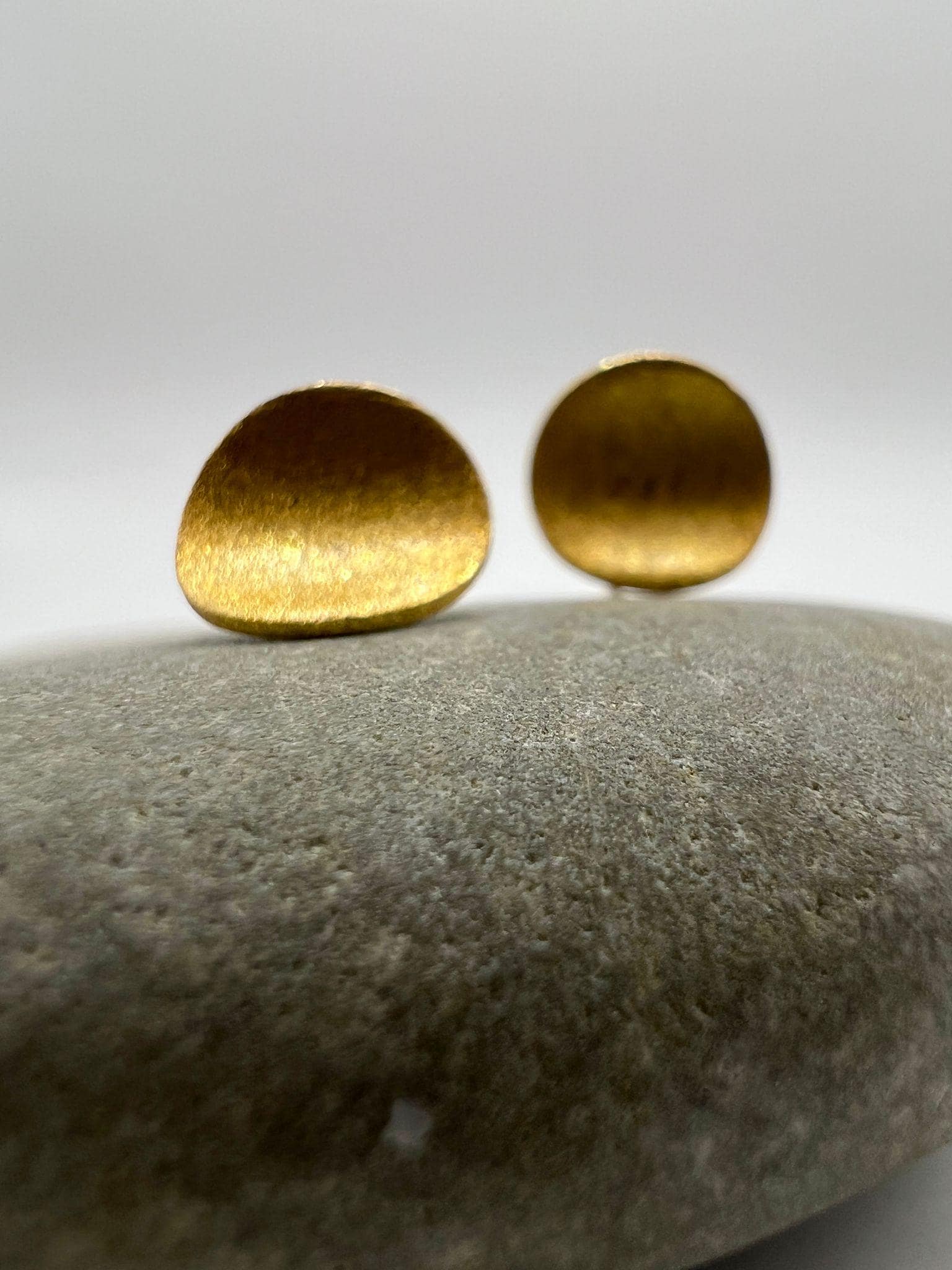 Minimalist stud earrings made of 18K gold-plated 925 sterling silver, finished with a soft matte texture and gently curved oval silhouettes for an elegant, sculptural look.