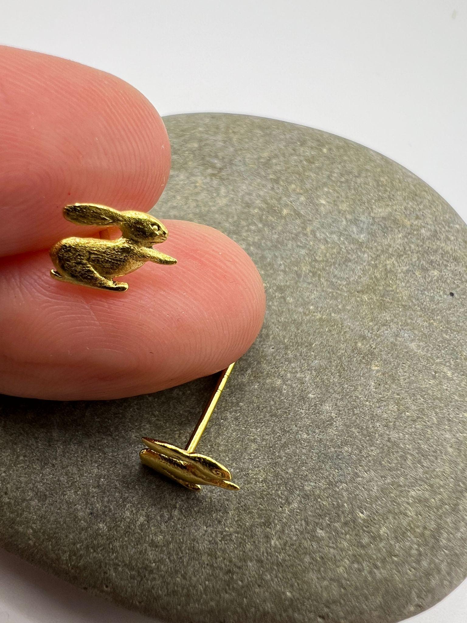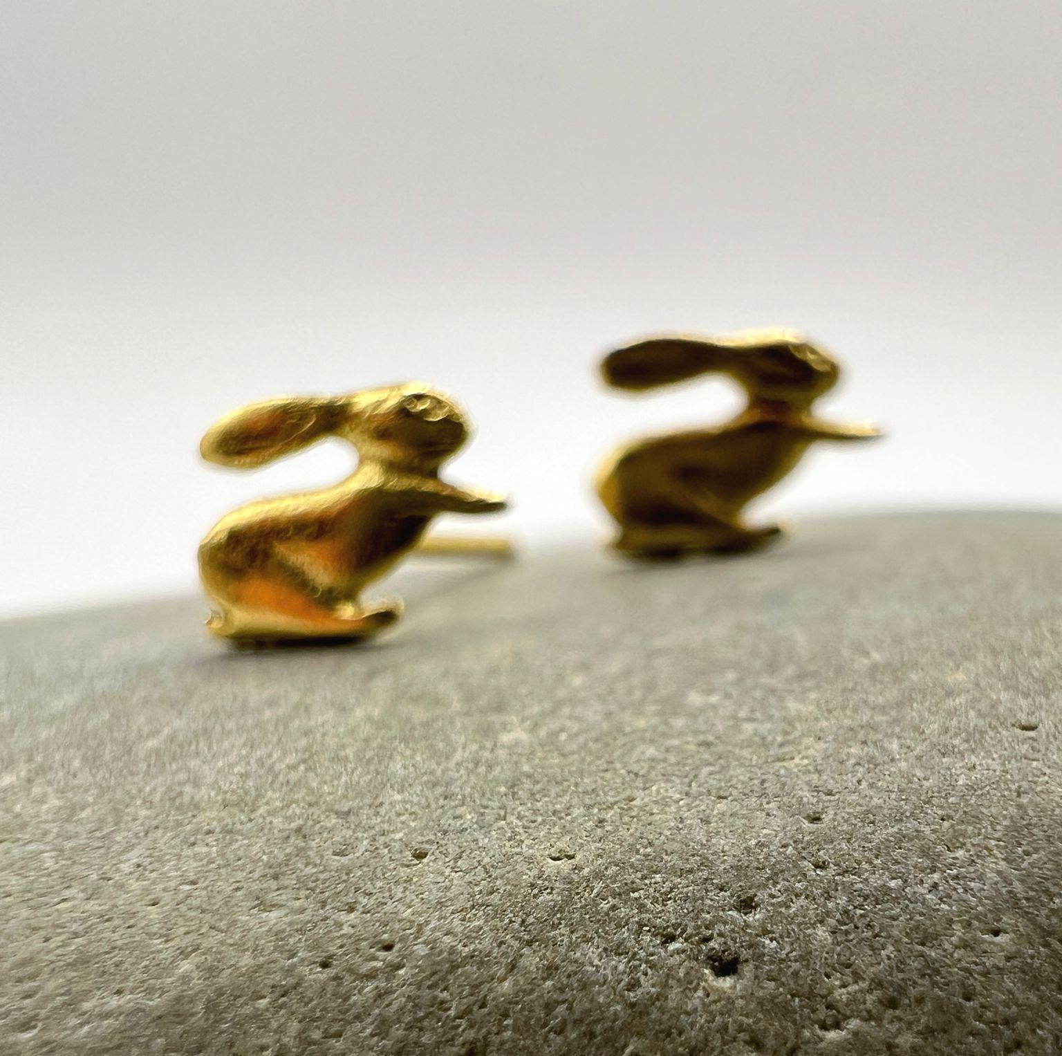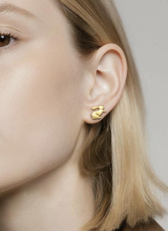 These tiny rabbit studs bring a playful, whimsical touch to your everyday style. Made from high-quality 925 sterling silver and finished with a warm 18K gold plating, they feature a soft matte texture that highlights every detail of the bunny silhouette. Lightweight, comfortable, and perfect for daily wear.