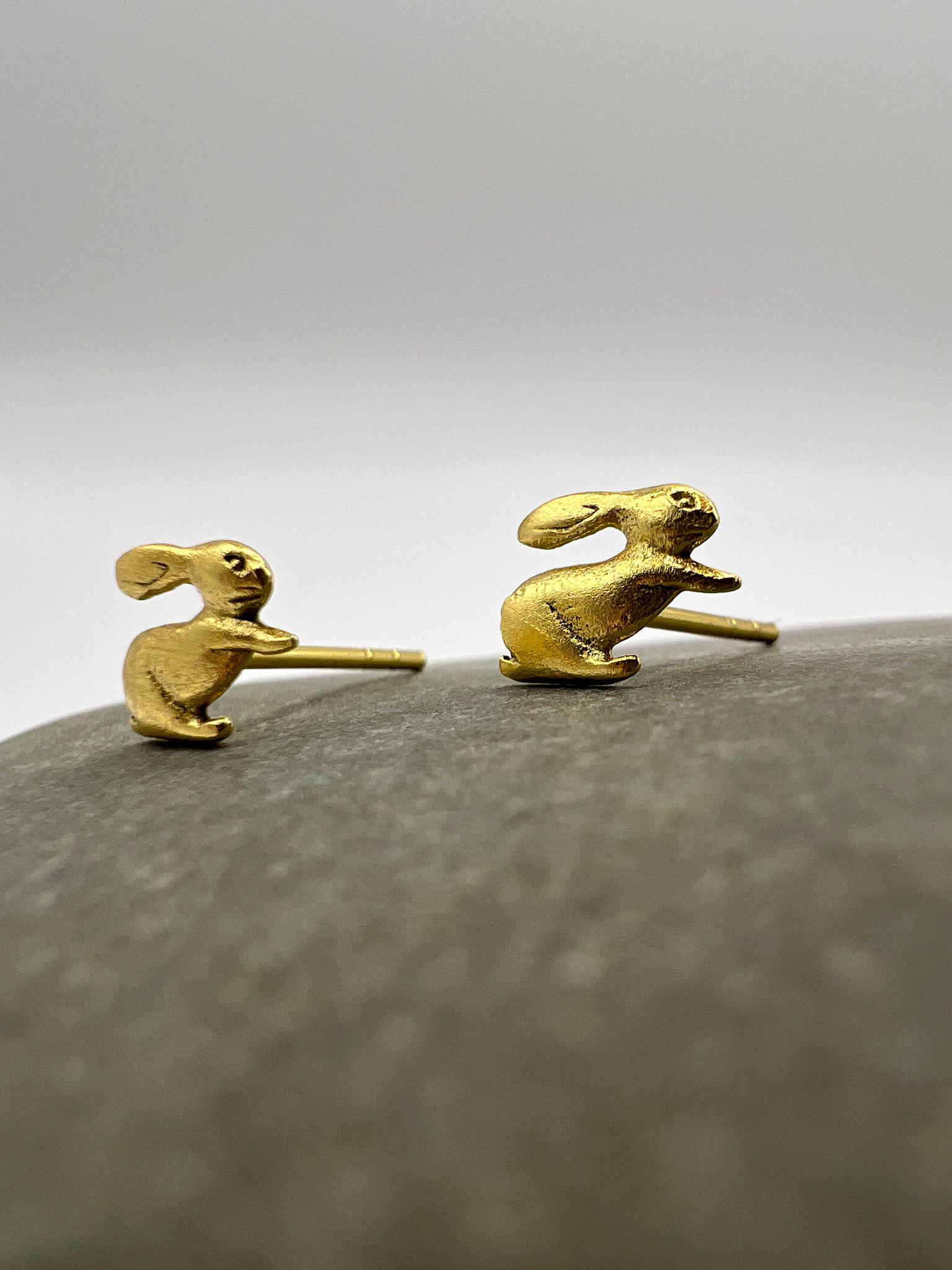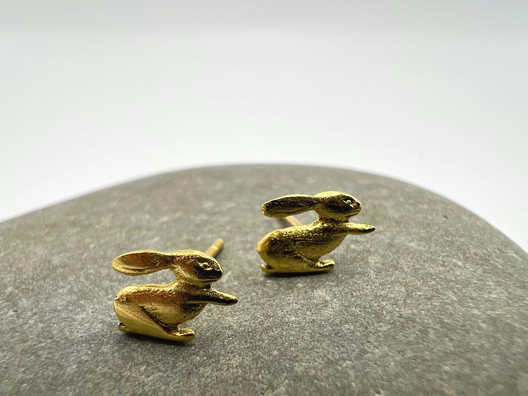 Cute Bunny Stud Earrings – 18K Gold Plated 925 Silver (Matte Finish)