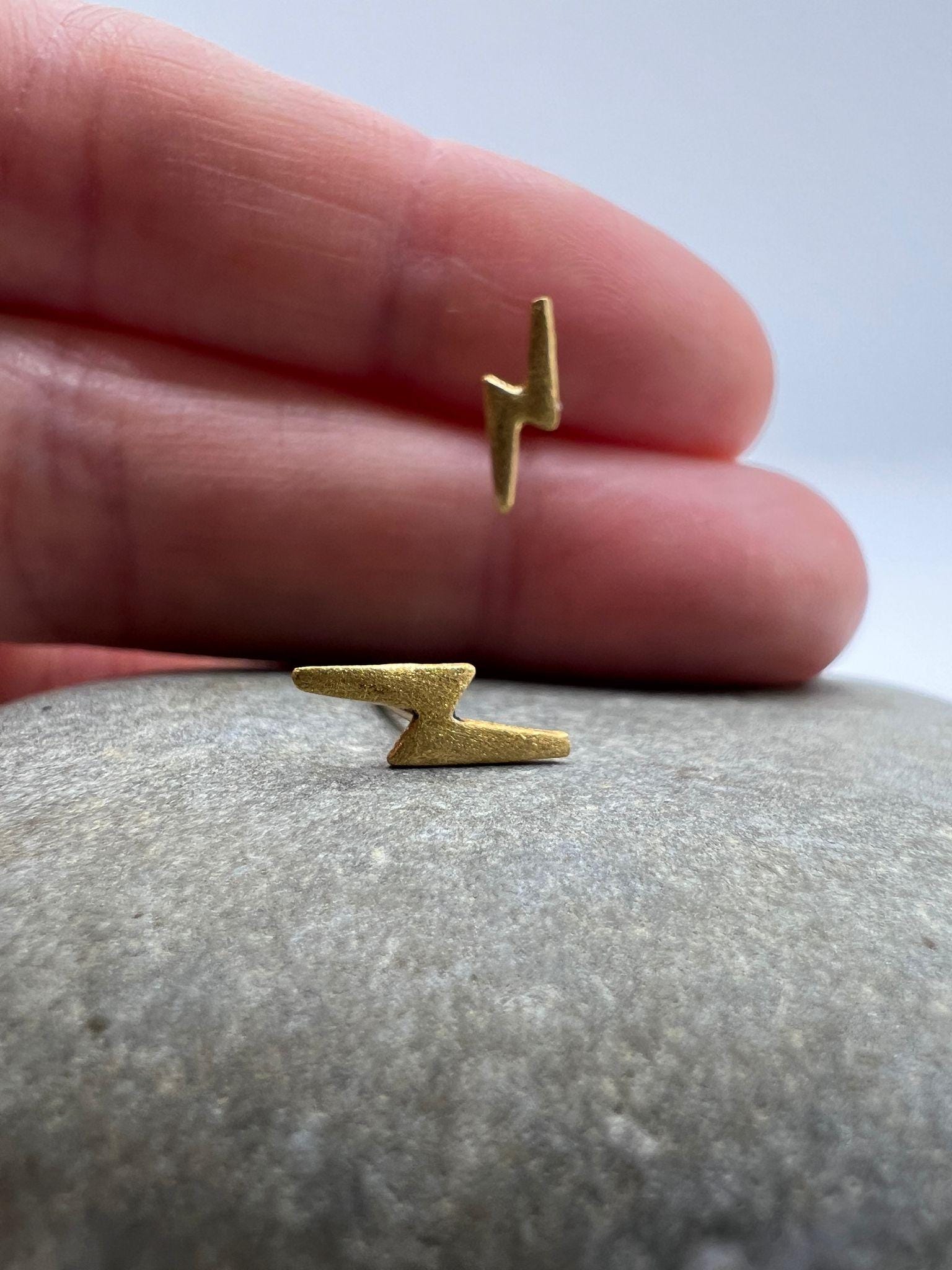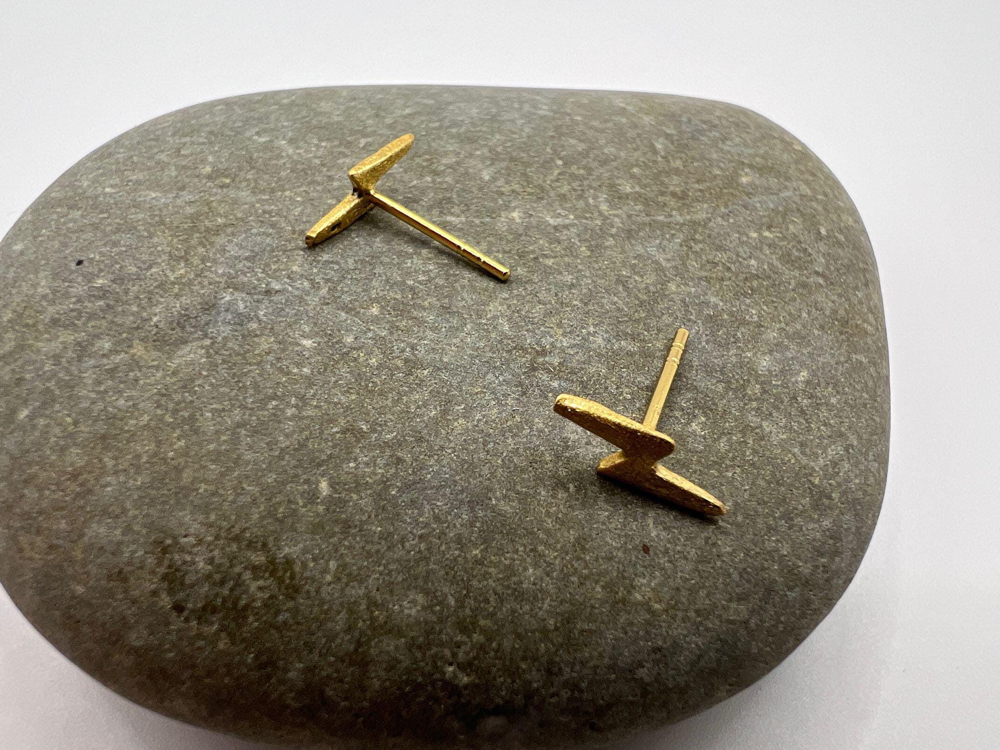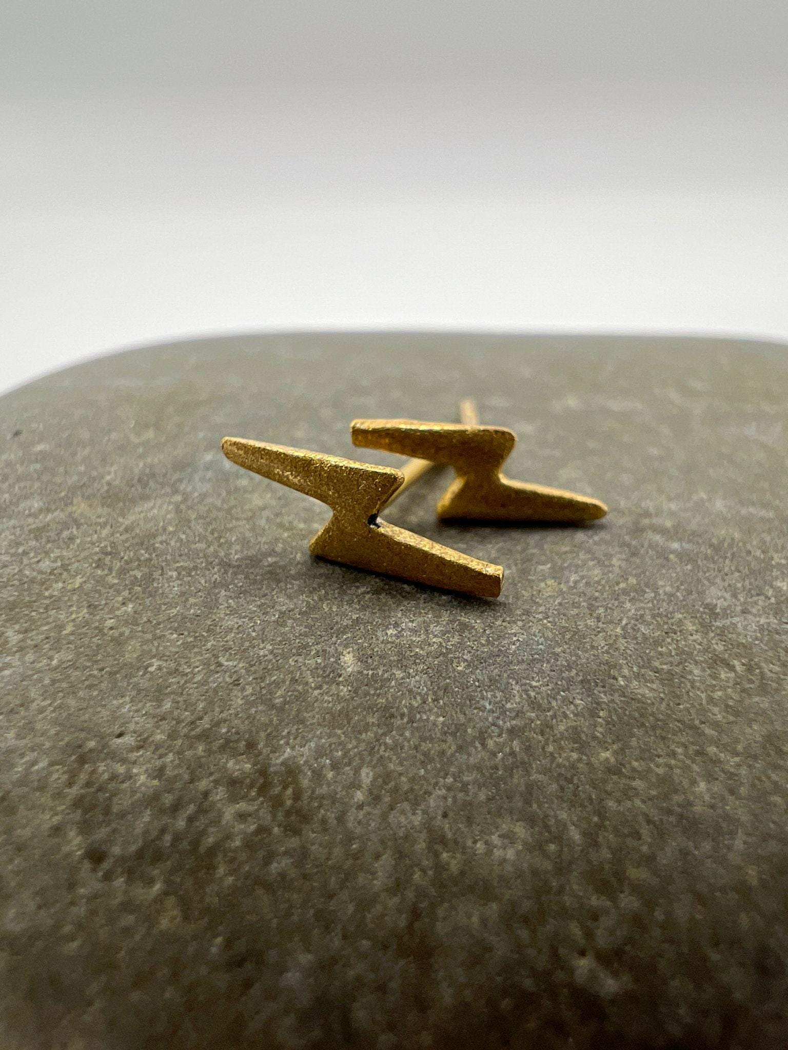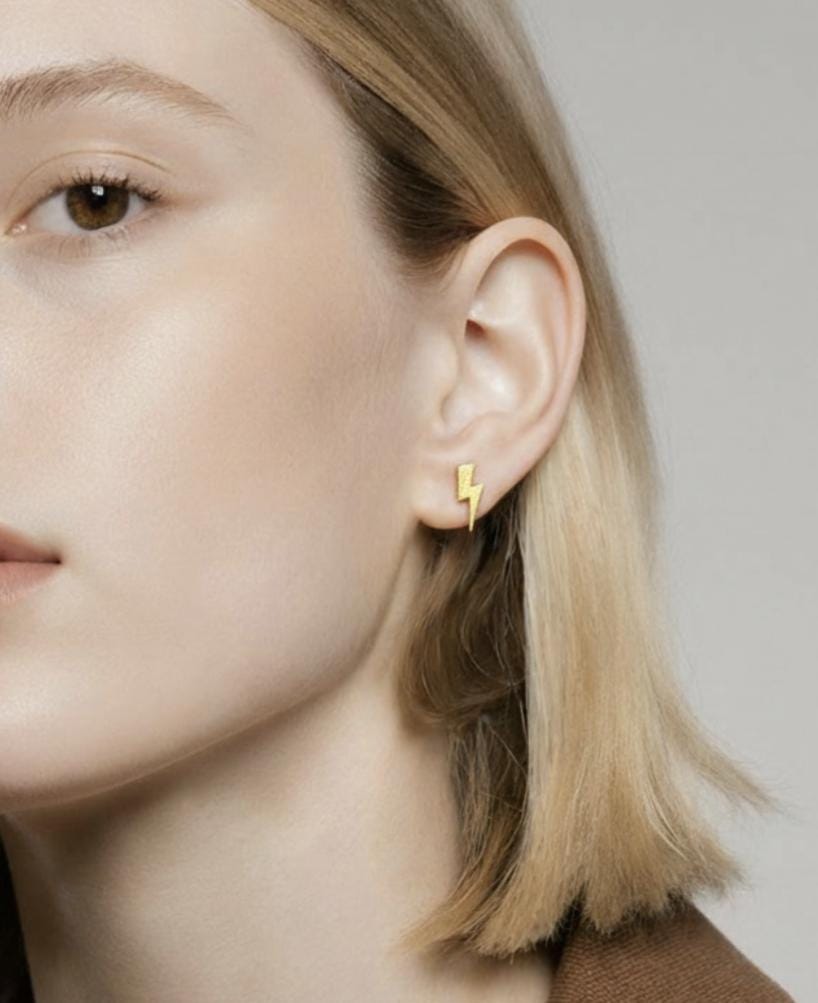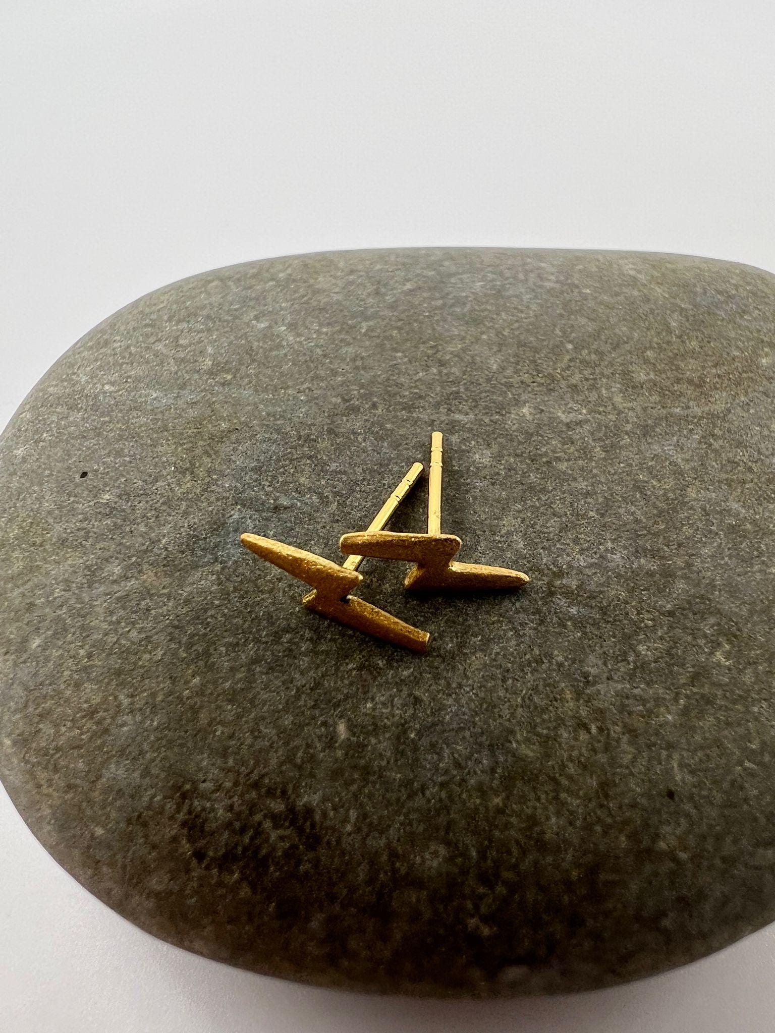 Small matte-finish lightning bolt studs crafted in 18k gold plated 925 silver. Clean, sharp lines create a bold tiny statement with a subtle Harry-Potter-inspired touch. Lightweight, minimal and playful — perfect for everyday wear or fandom lovers.
