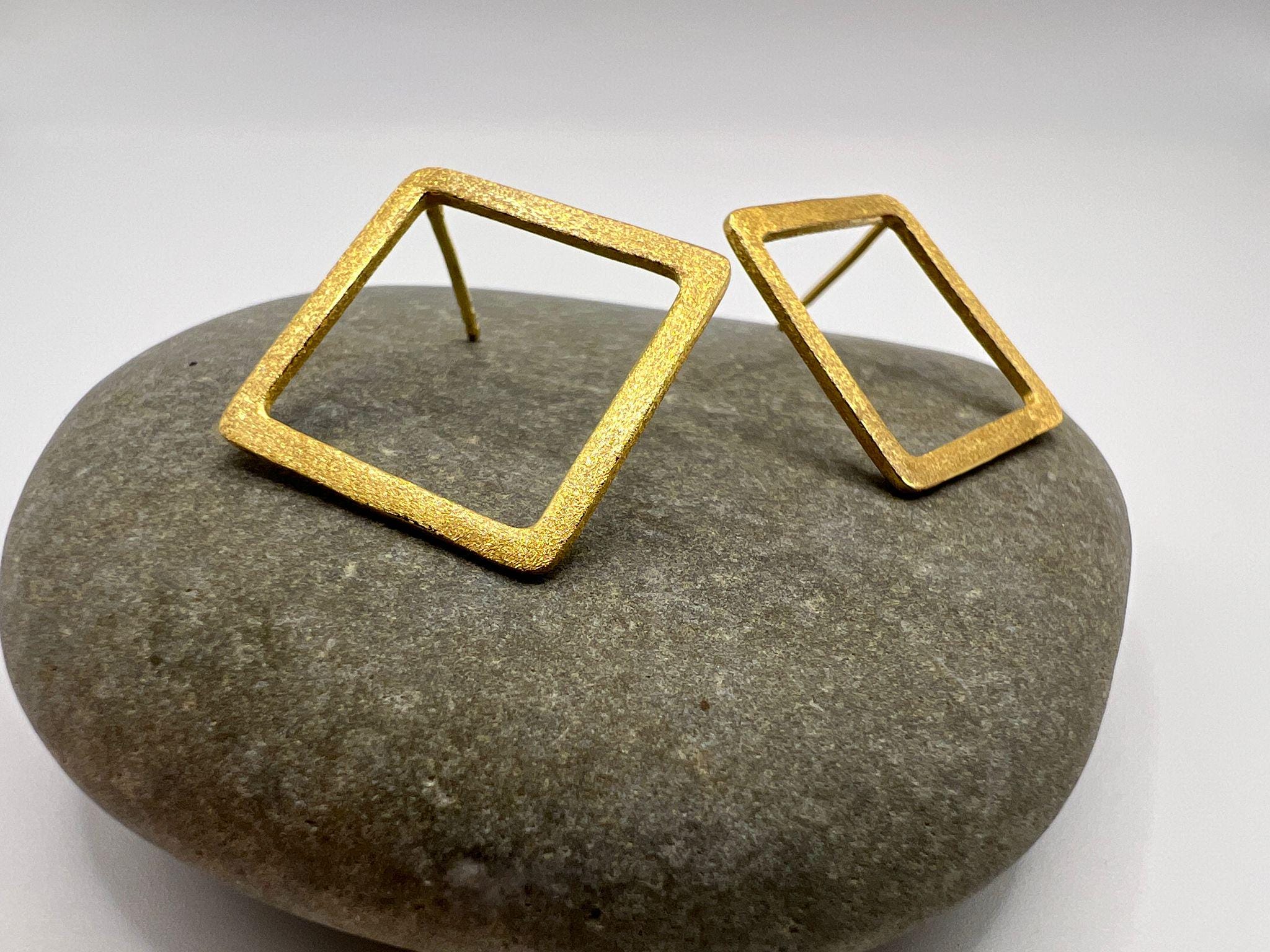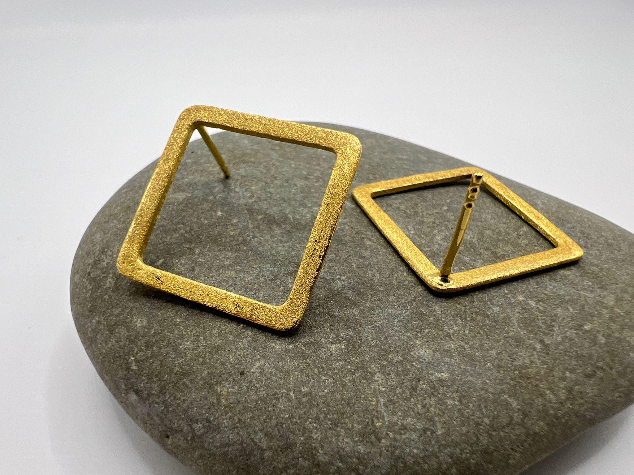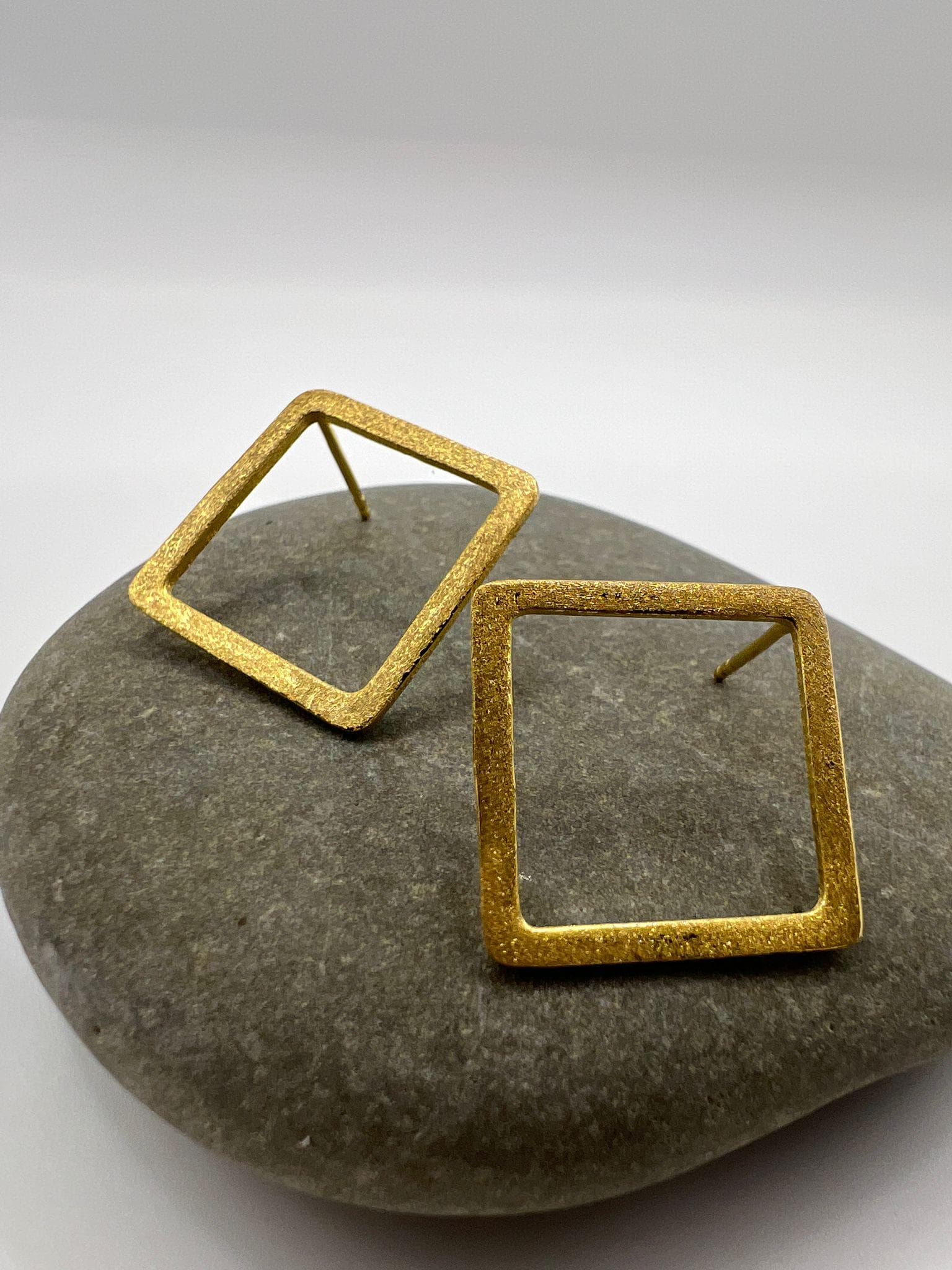 Minimalist square stud earrings made of 18k gold plated 925 silver.