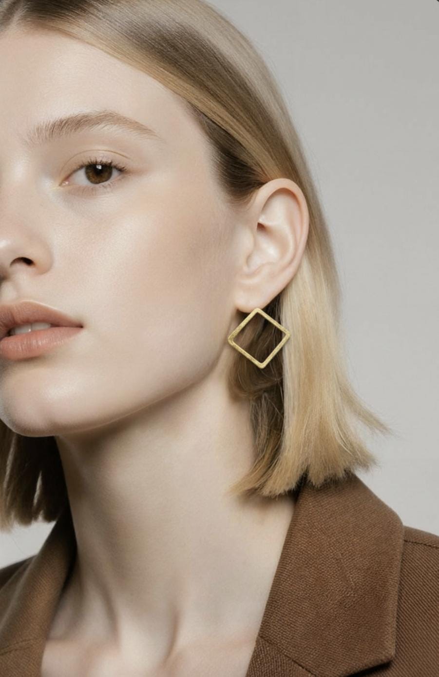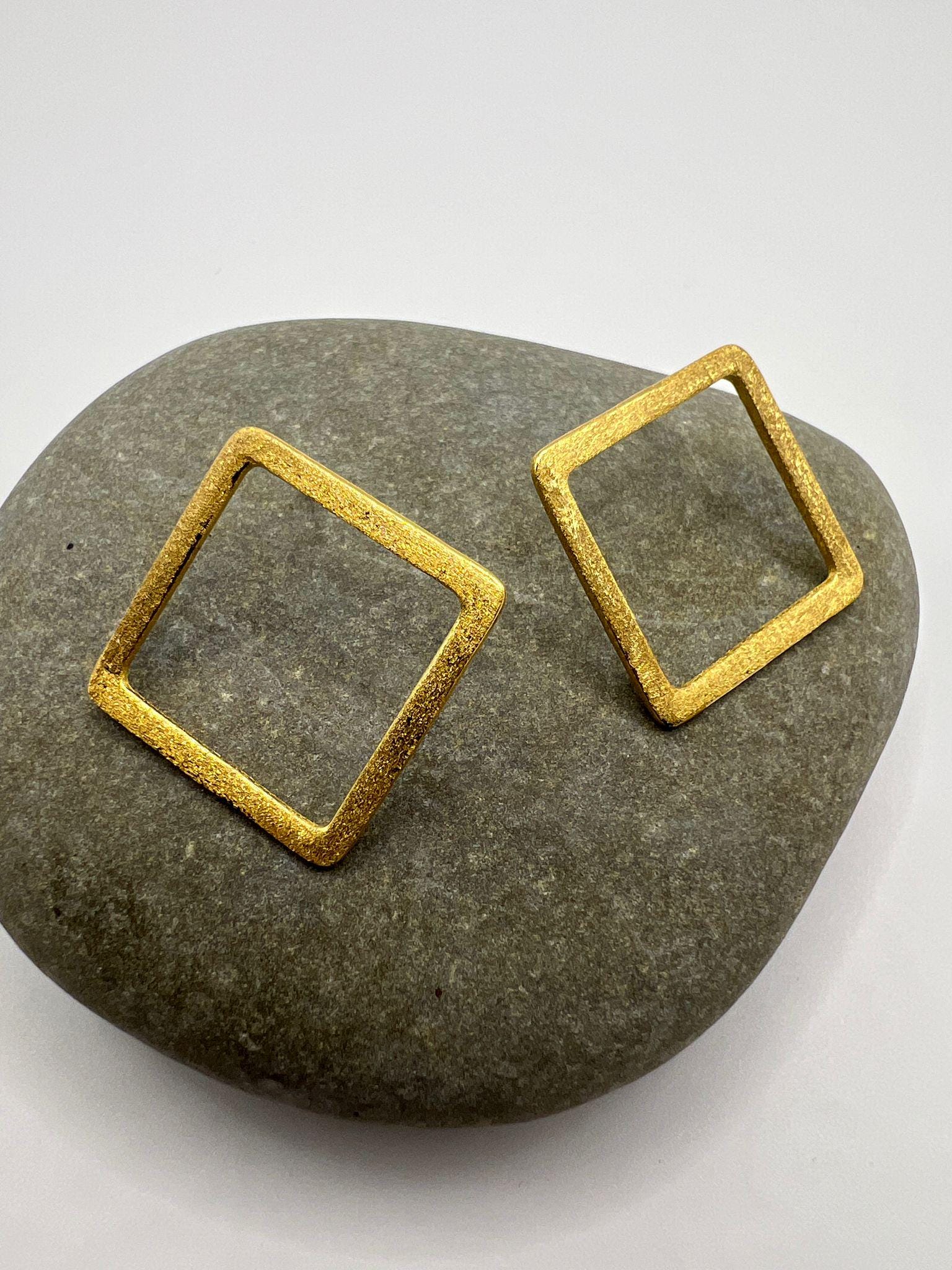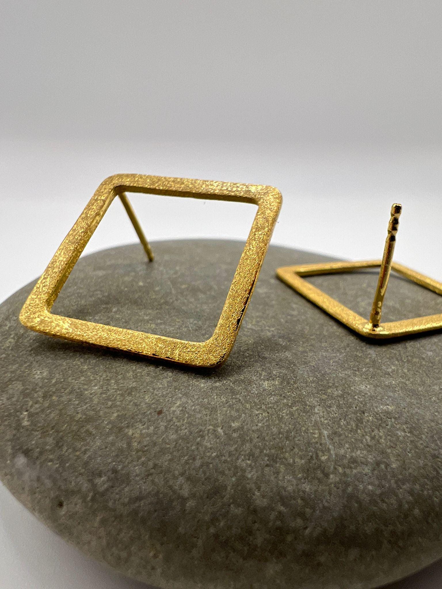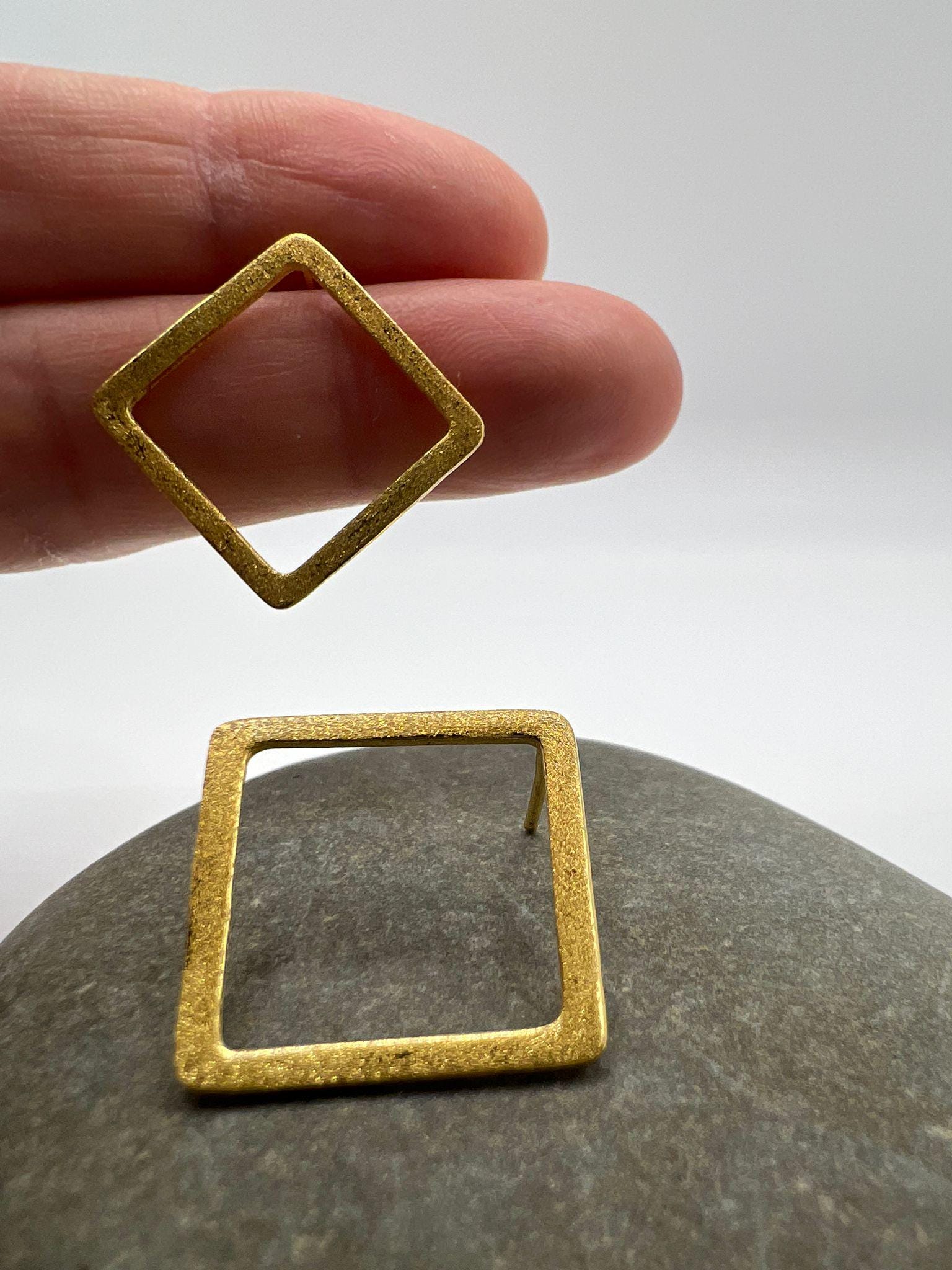 Minimalist square stud earrings made of 18k gold plated 925 silver.