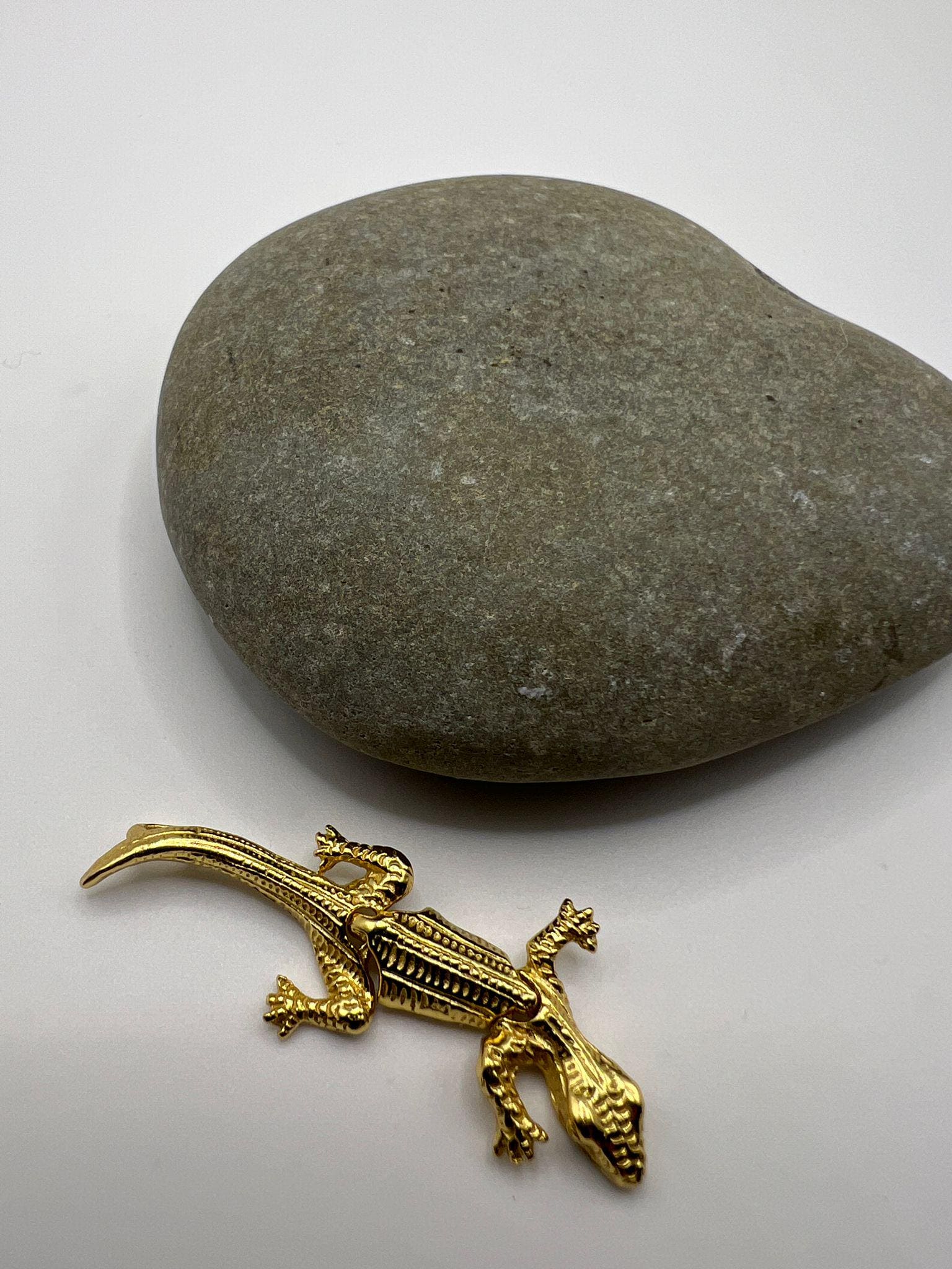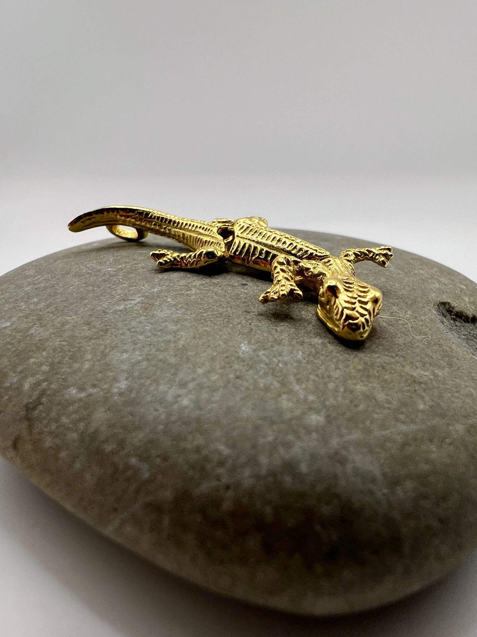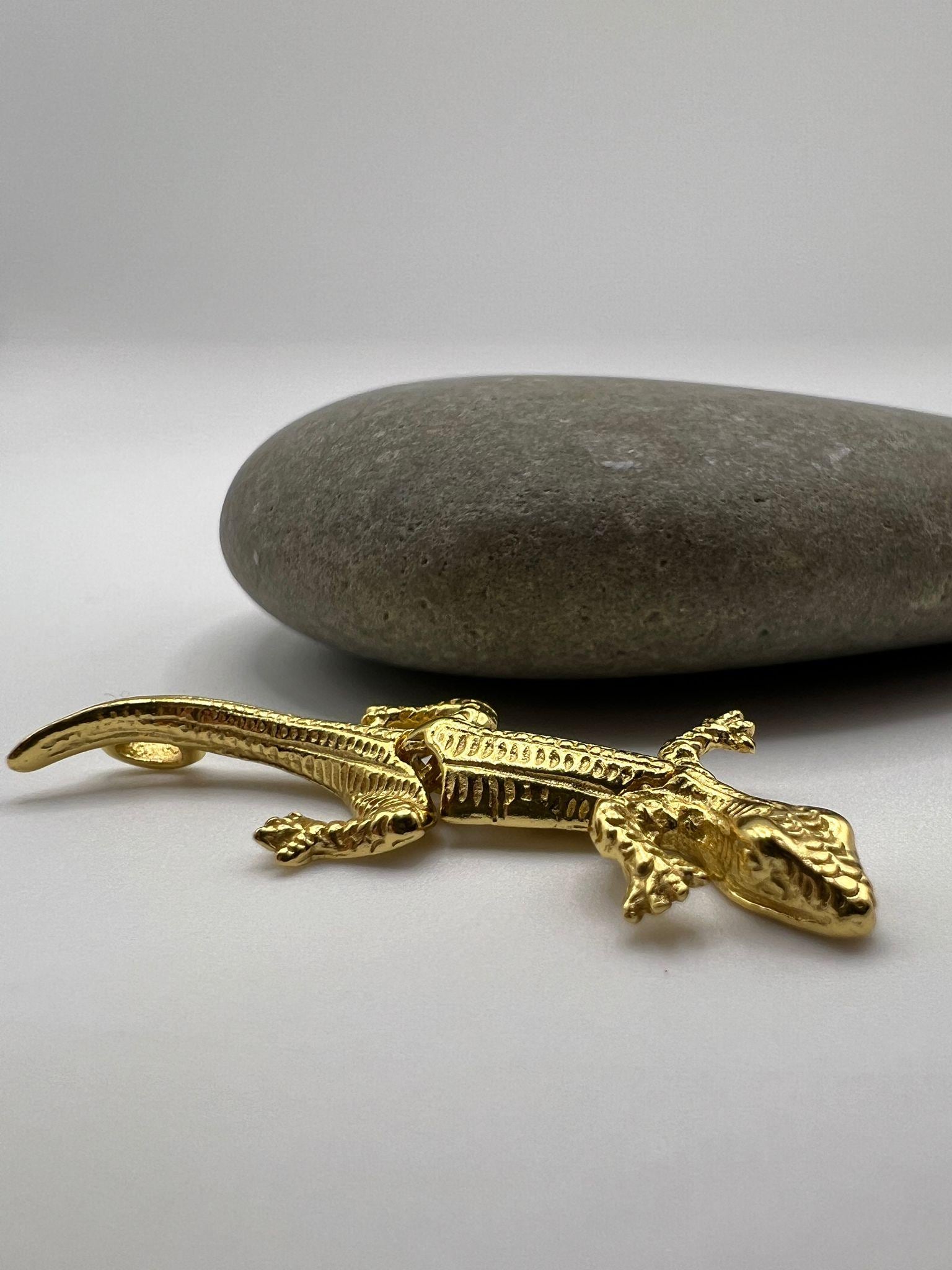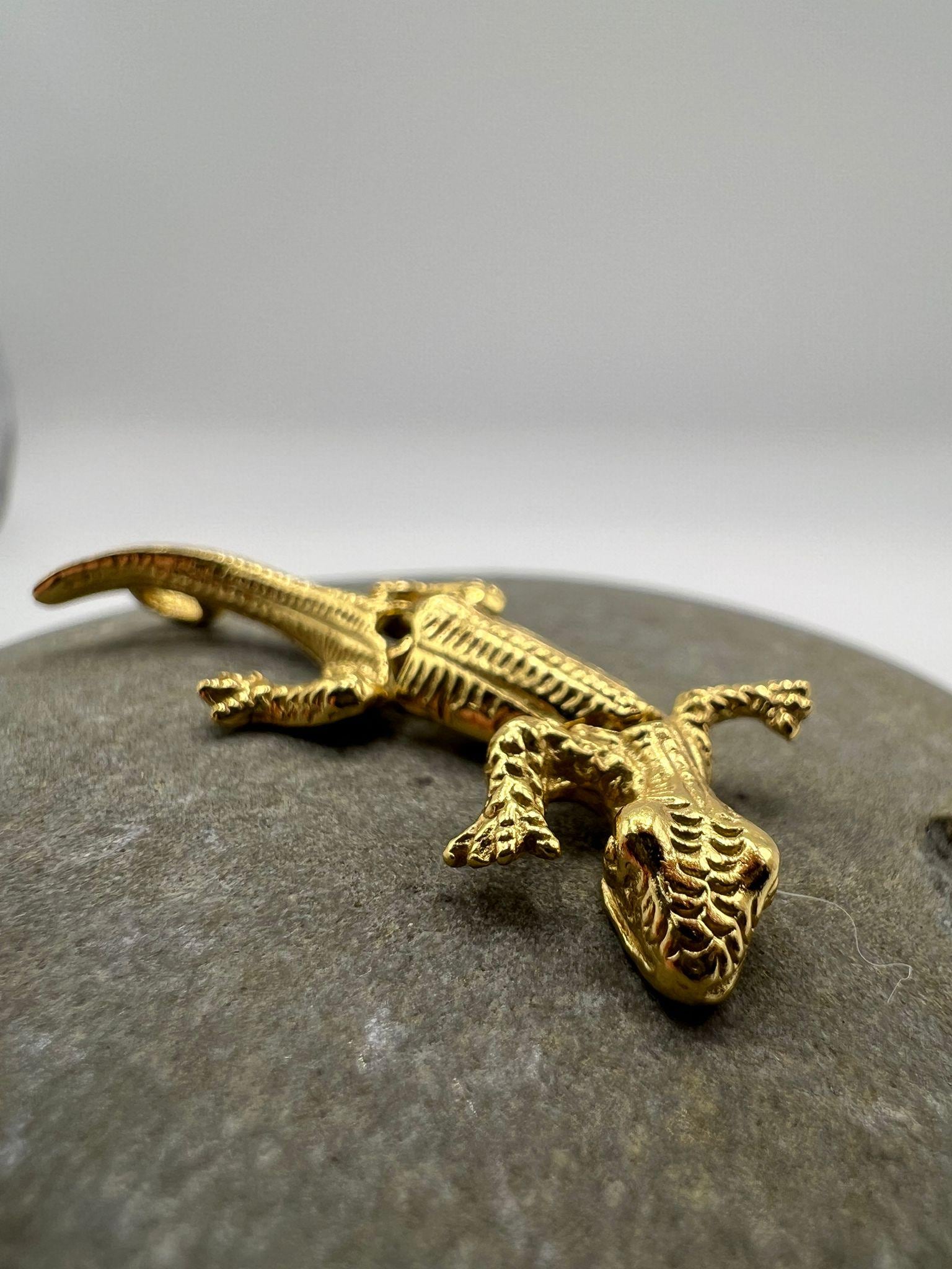 Detailed articulated lizard pendant crafted from 18k gold plated 925 silver, featuring two flexible joints for lifelike movement. A bold, textured reptile motif that stands out beautifully as a statement piece.