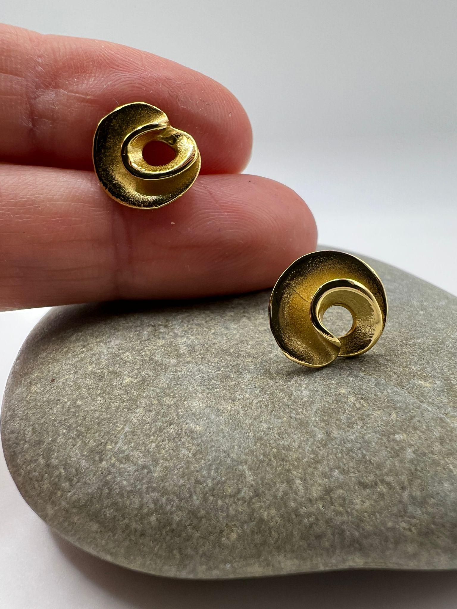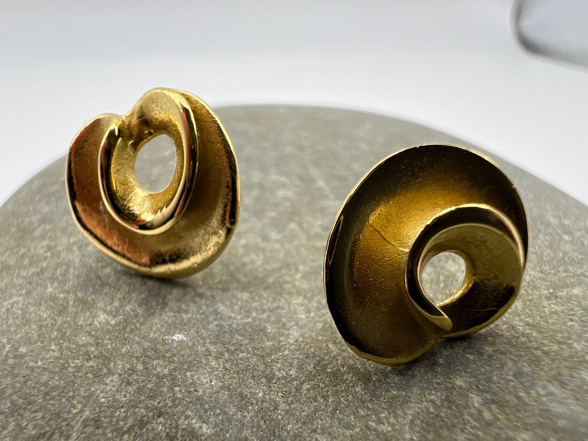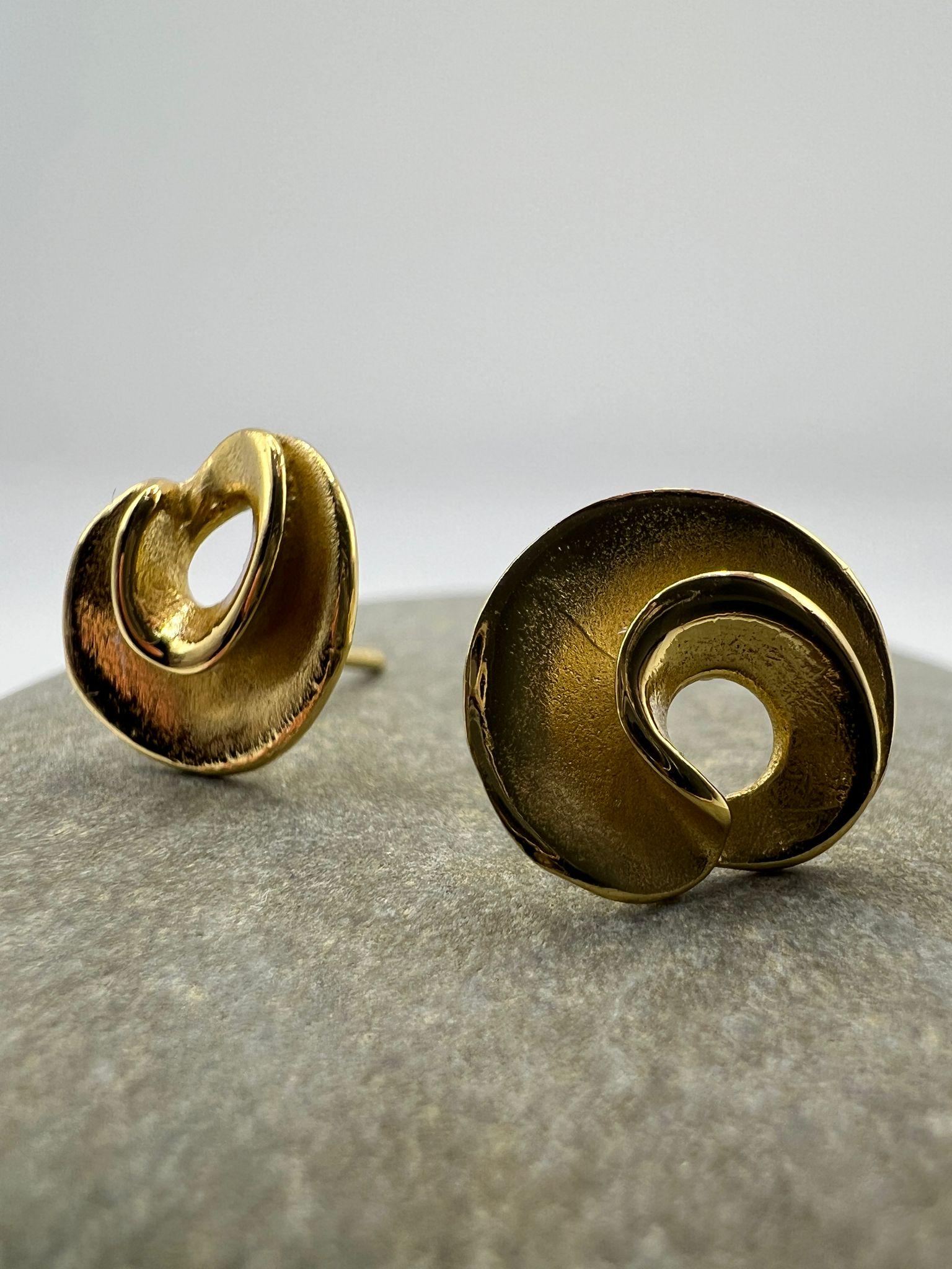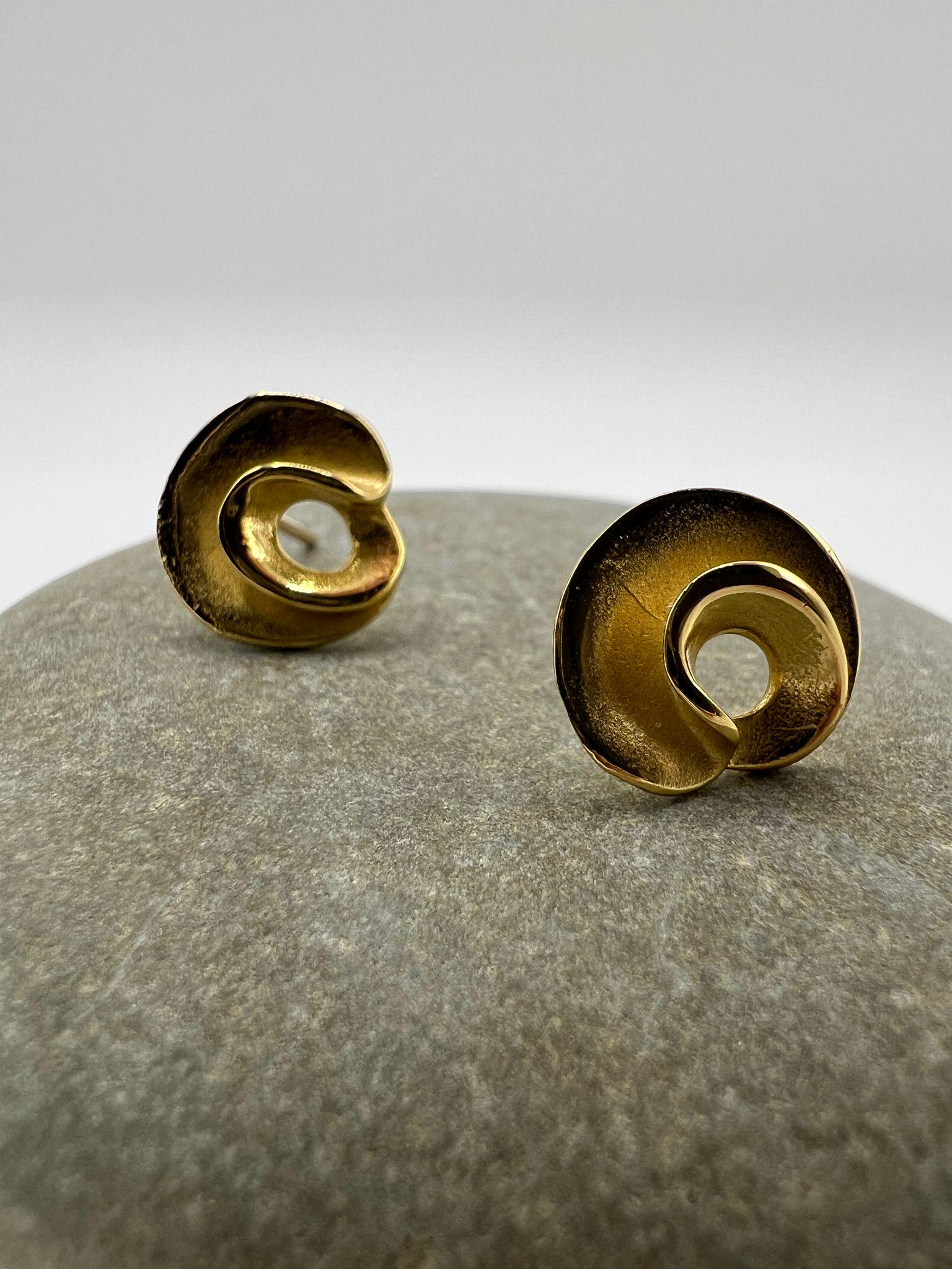A pair of sculptural spiral stud earrings in 18k gold plated 925 silver, finished with a soft matte texture.
