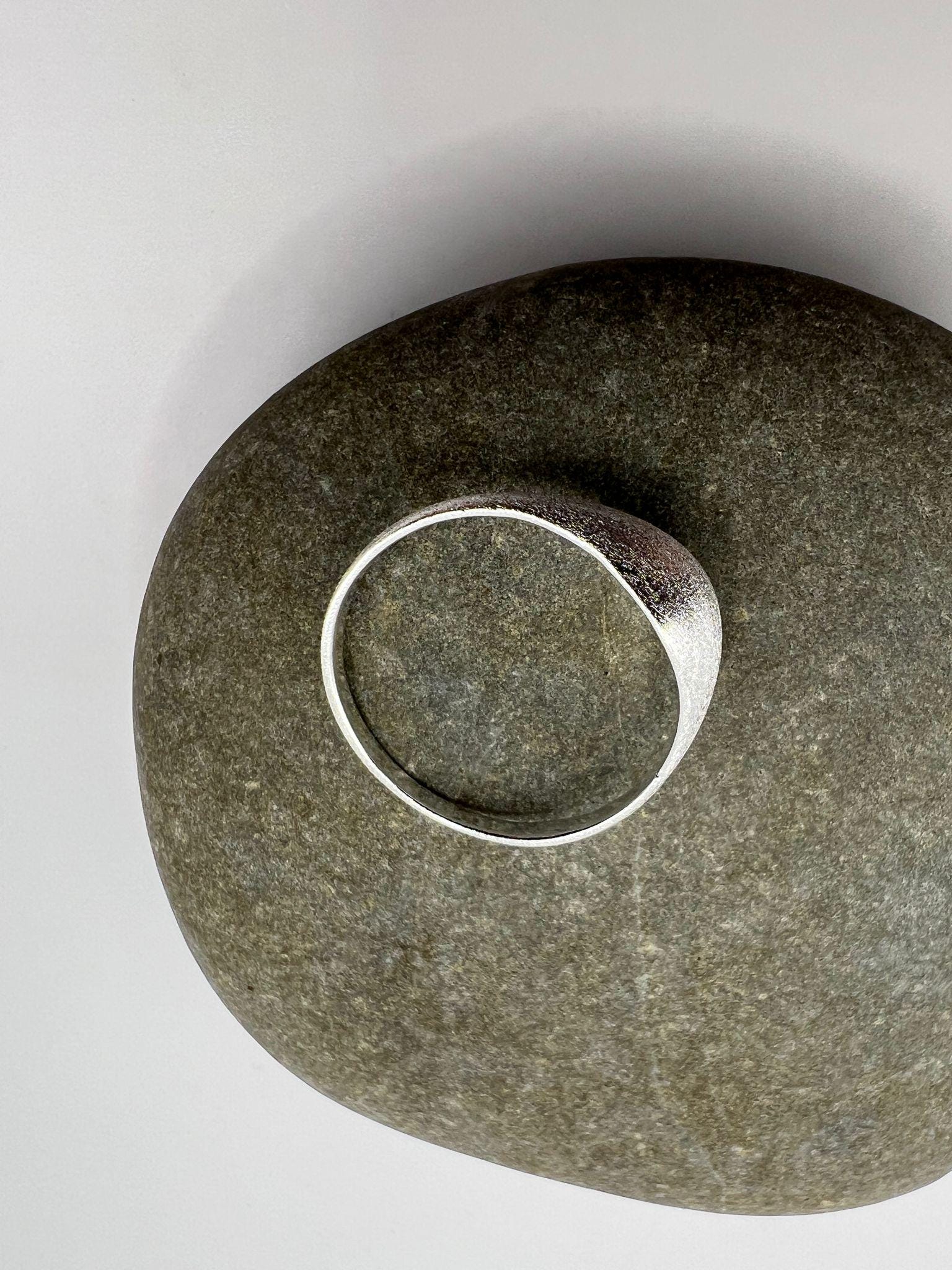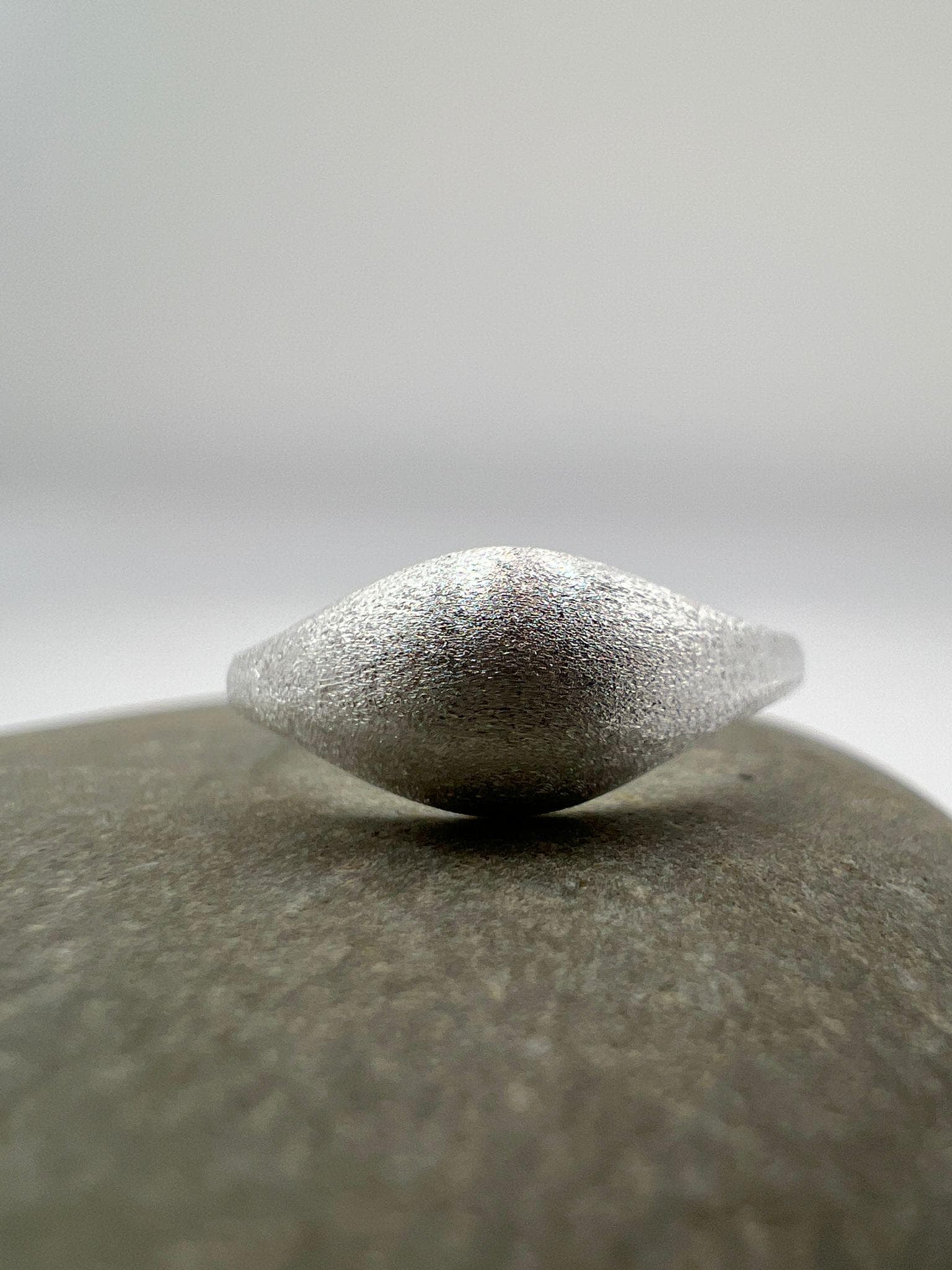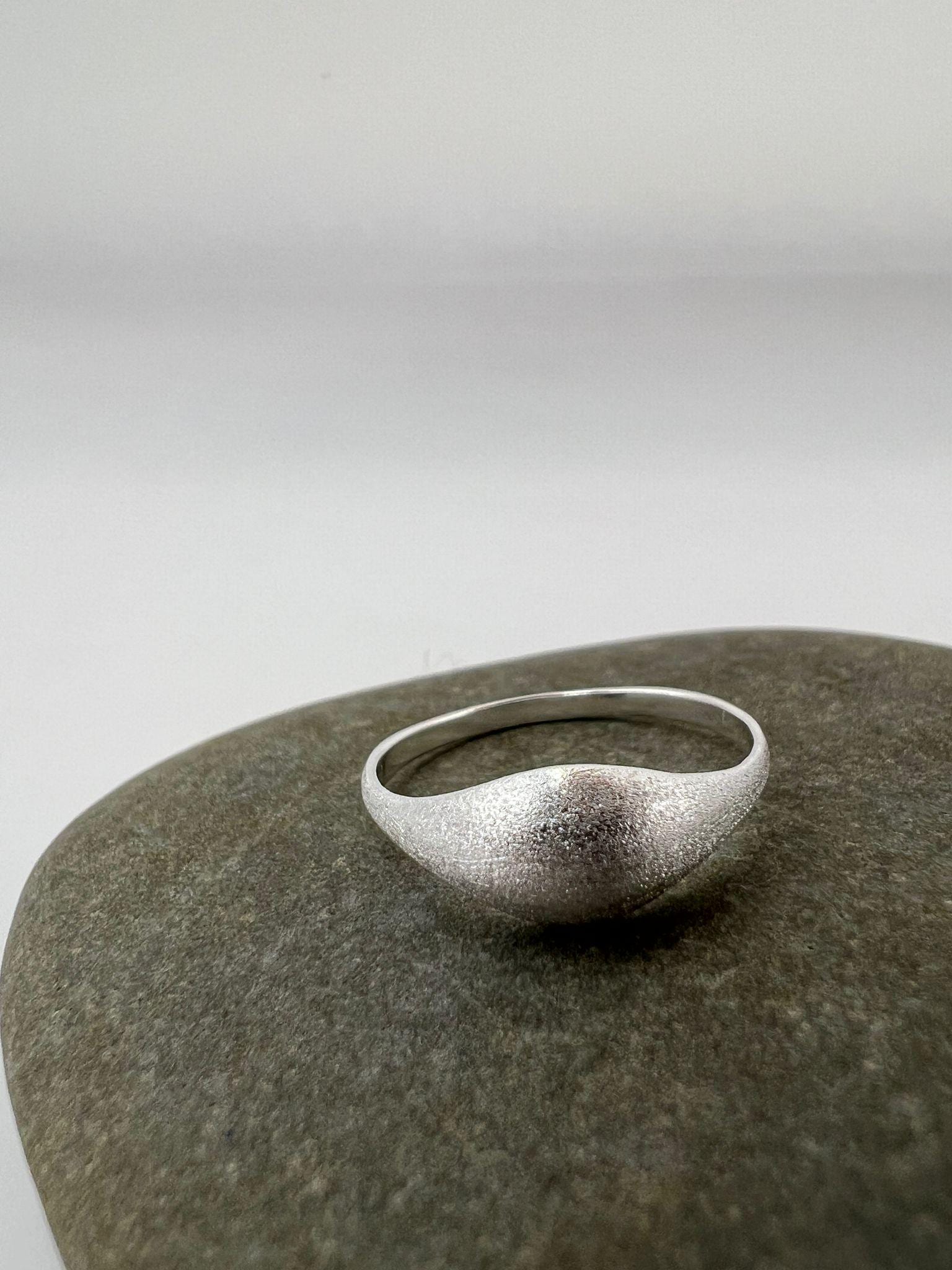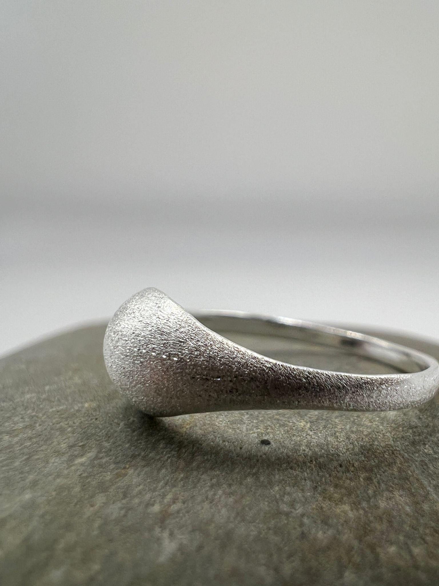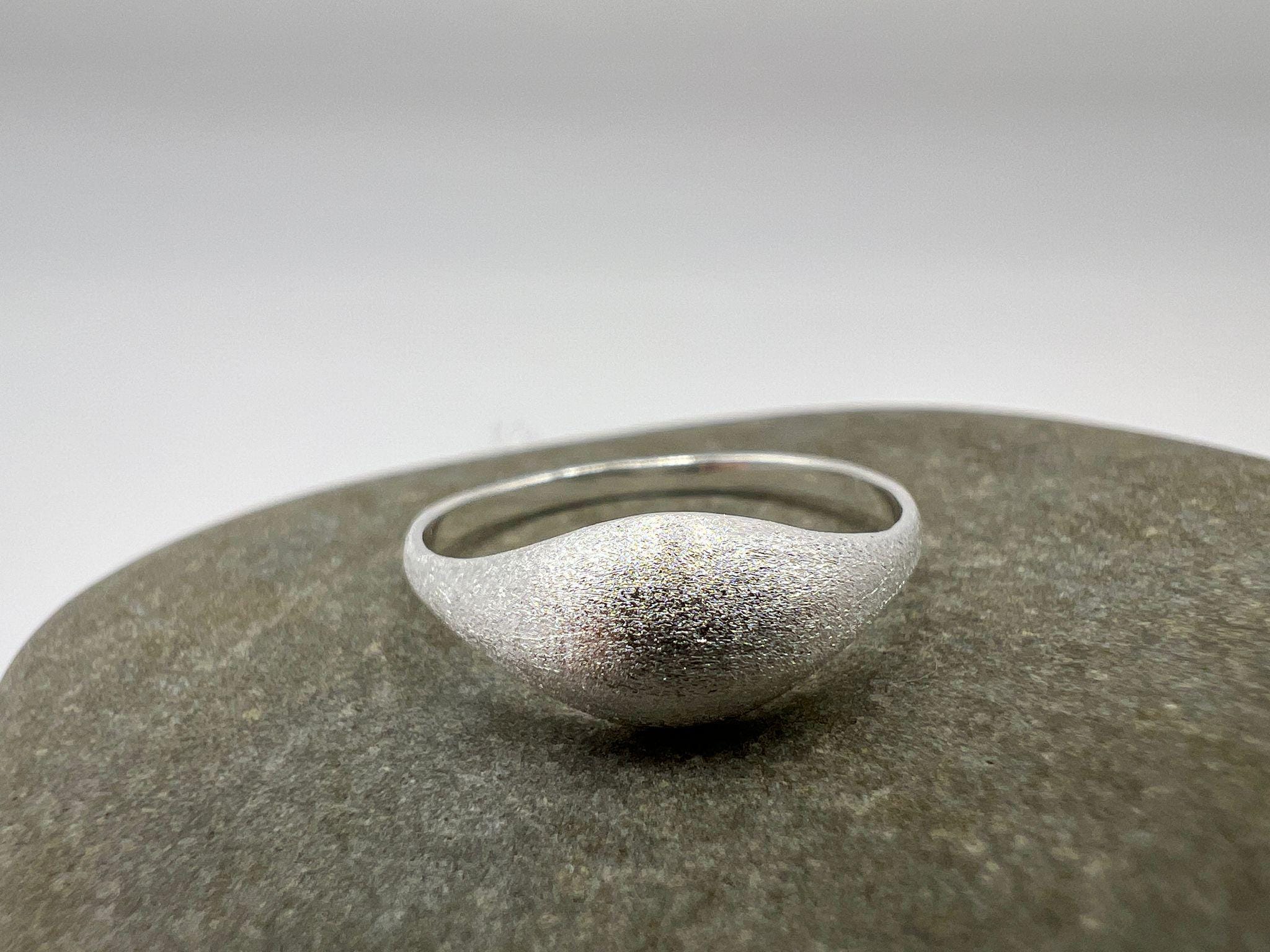 A smooth matte 925 silver dome ring with an organic rounded top and a clean, minimalist band. Subtle texture and soft curves make it an elegant unisex piece that works for everyday wear or as a modern statement ring.