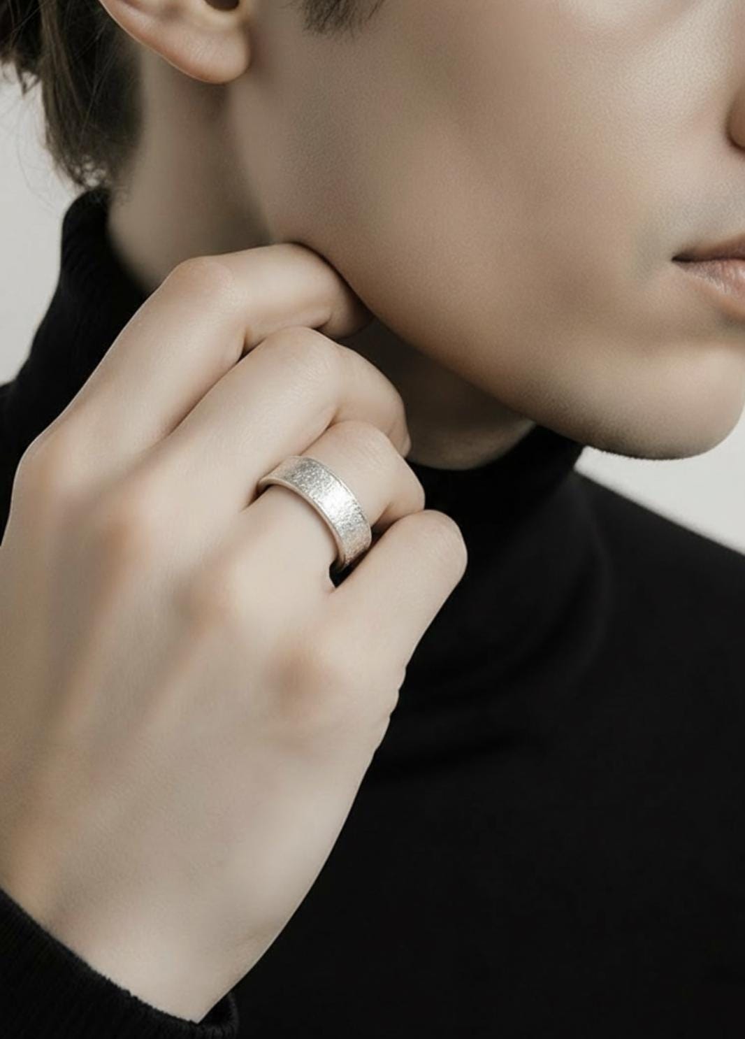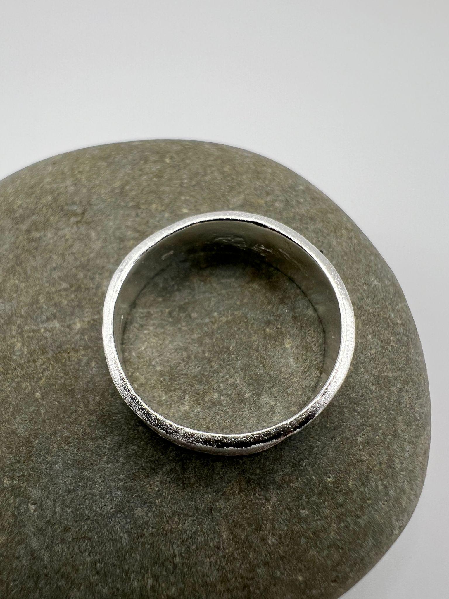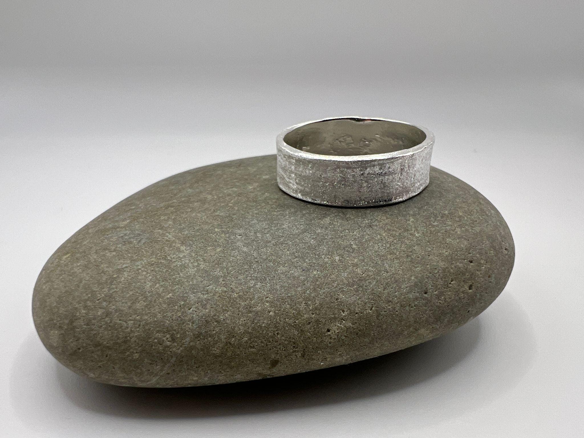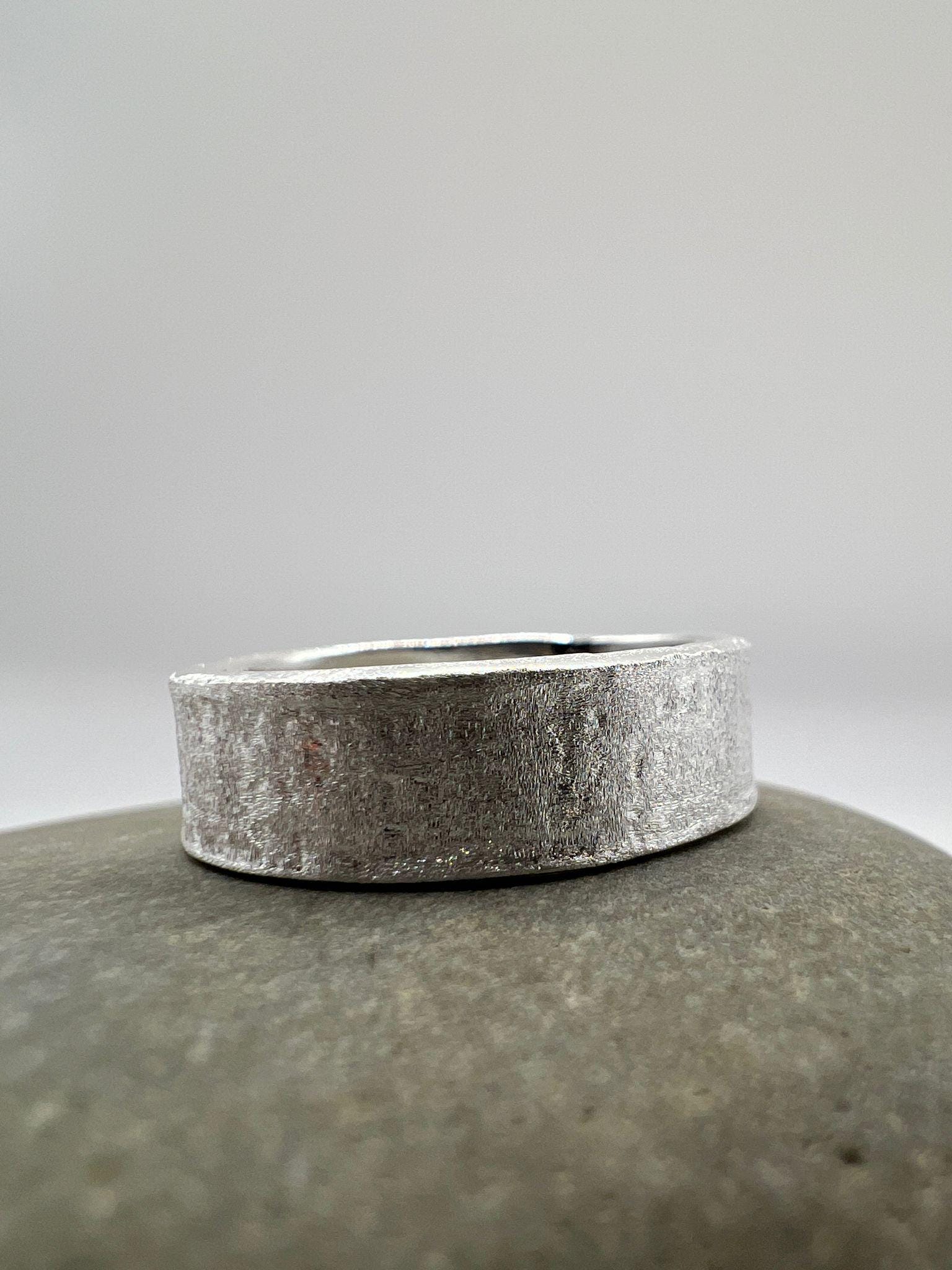 A bold and timeless wide band ring handcrafted in solid 925 silver with a matte, textured finish. Its clean, sculptural shape makes it a strong everyday piece and a perfect unisex option—great for both minimal wearers and those who love quiet statement jewelry. Can also be worn as a wedding band in both larger and smaller sizes.