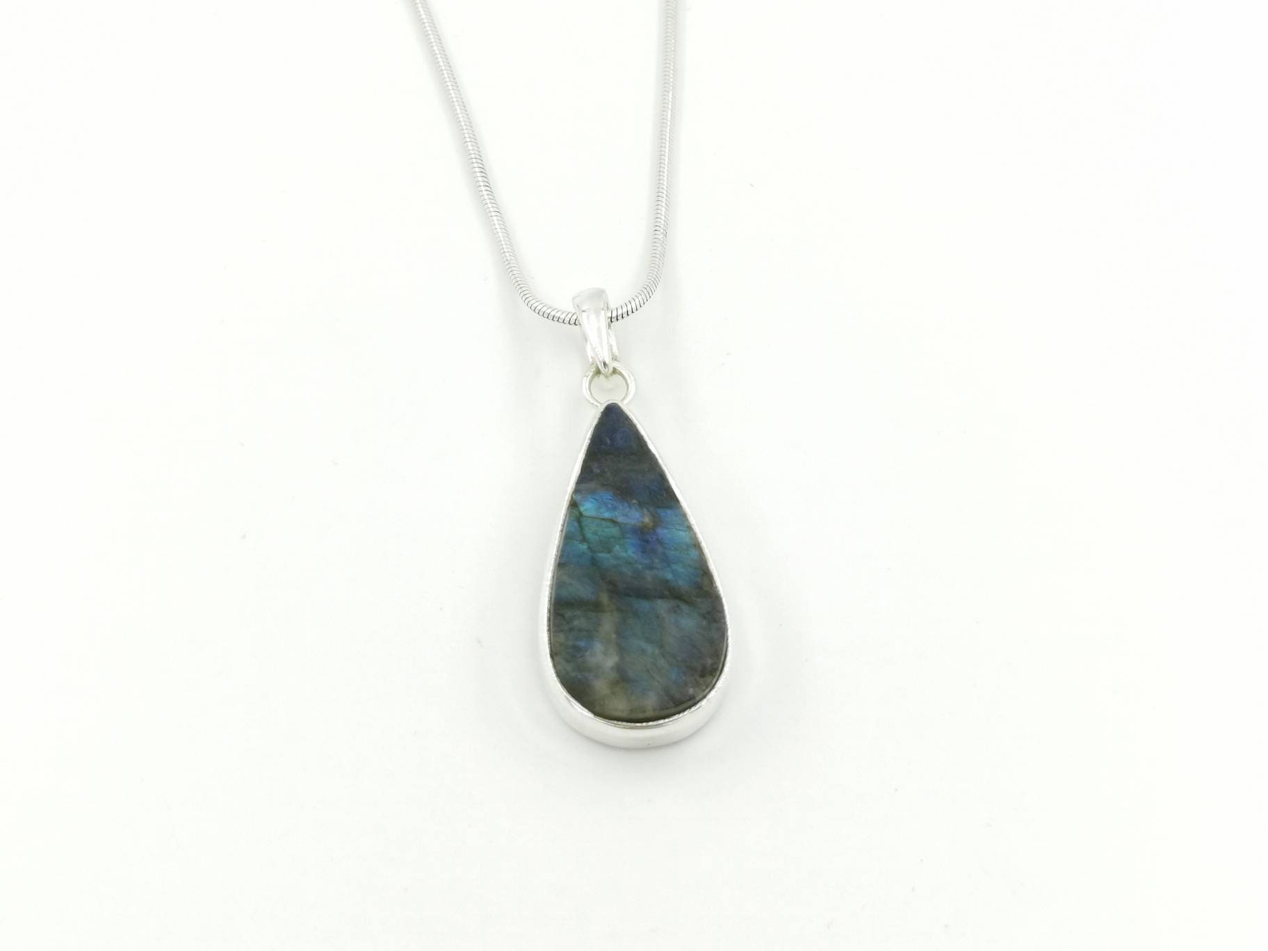 Natural raw labradorite pendant with blue fire in 925 silver.